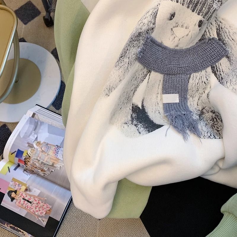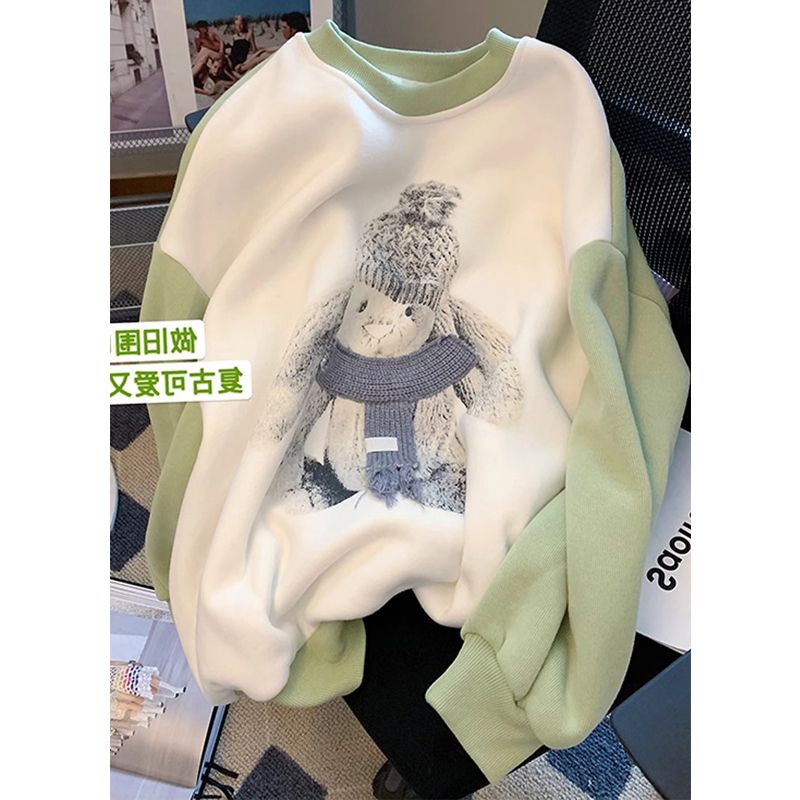 MY14613# 大码高街潮牌撞色圆领卫衣设计感拼接上衣女裝貨源服裝批發