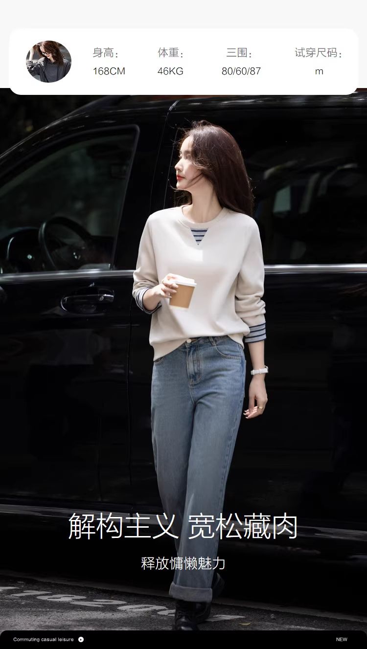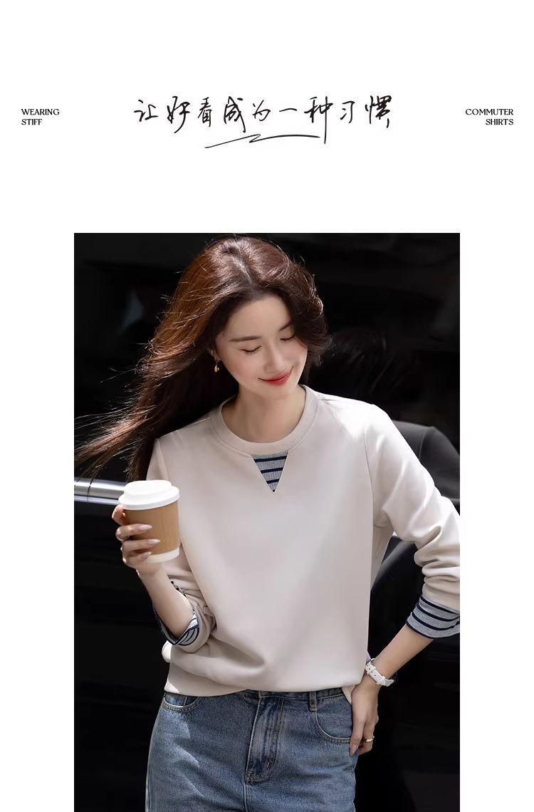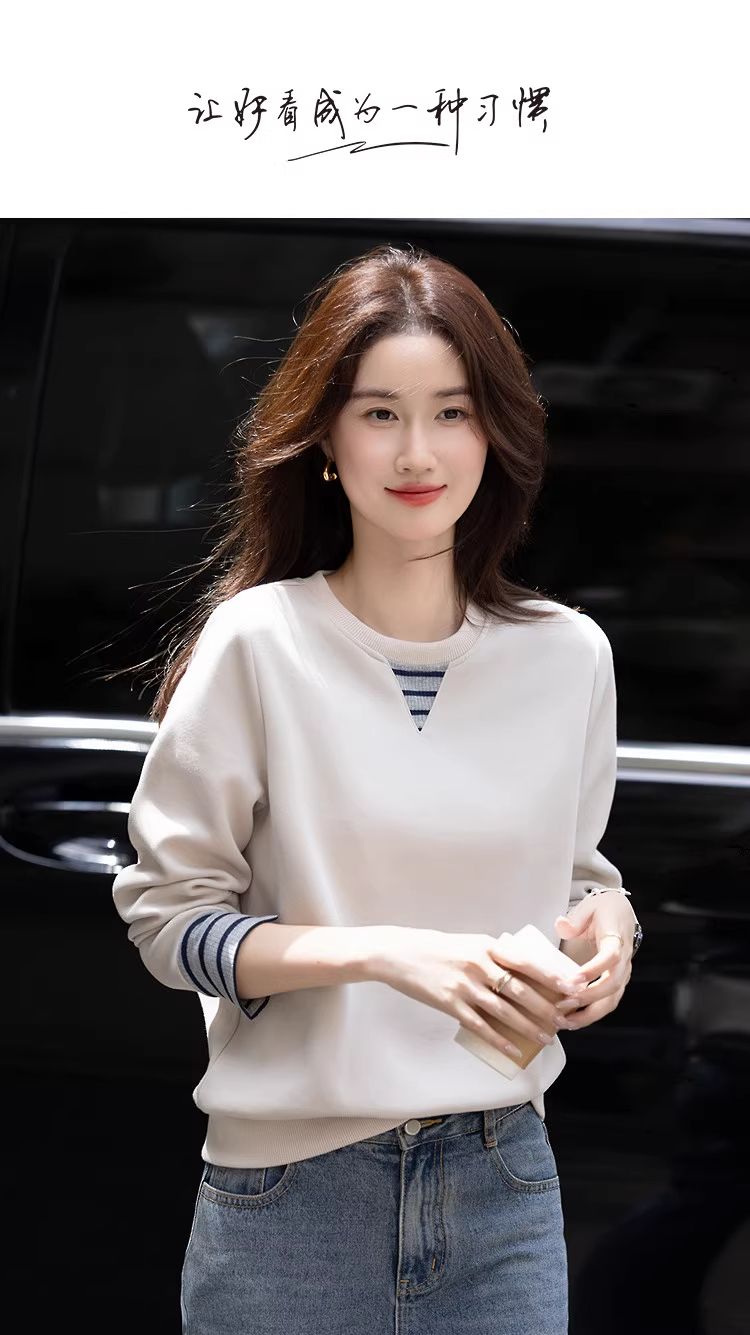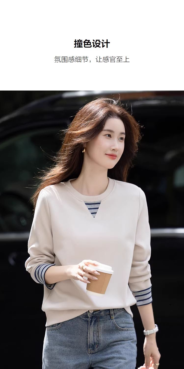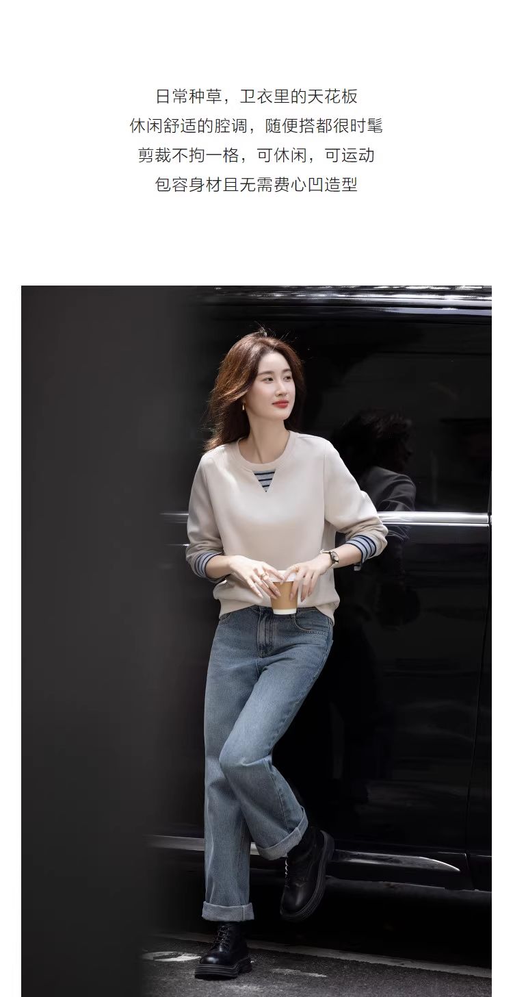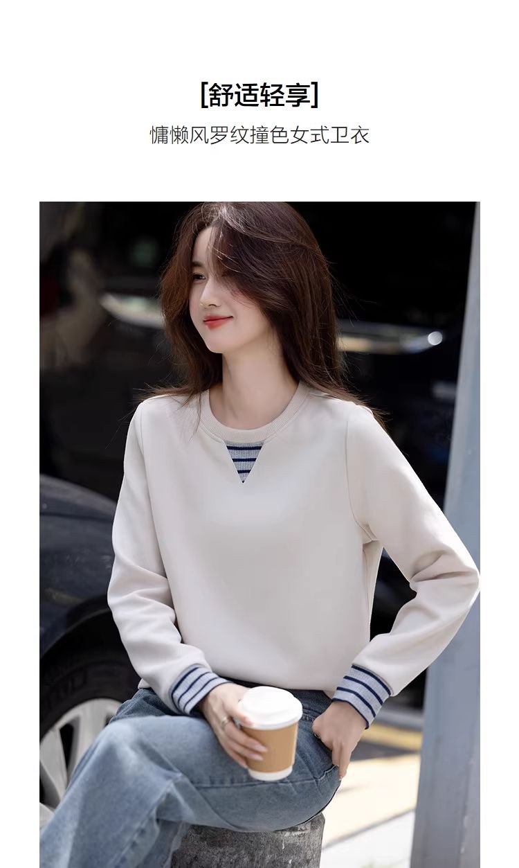 MY14614# 慵懒风宽松藏肉舒适上衣时髦罗纹撞色袖口卫衣女女裝貨源服裝批發