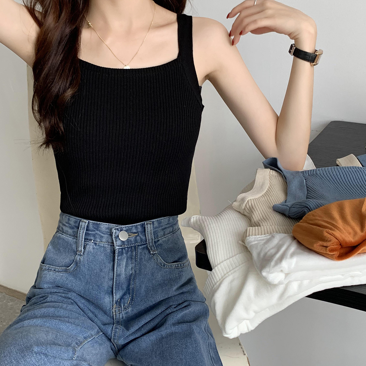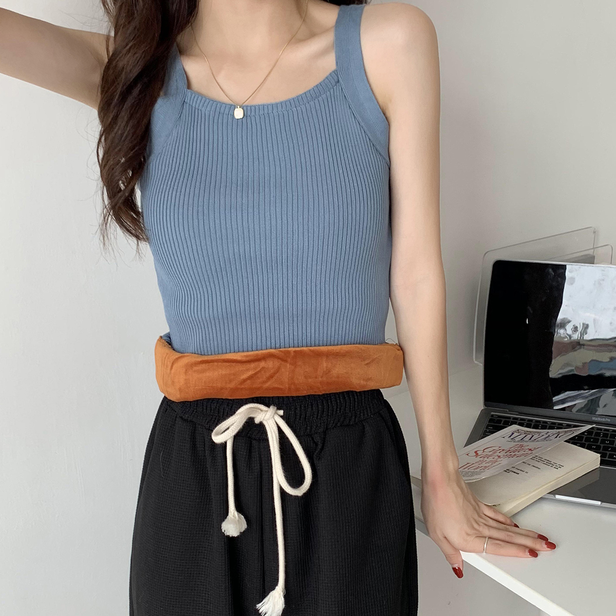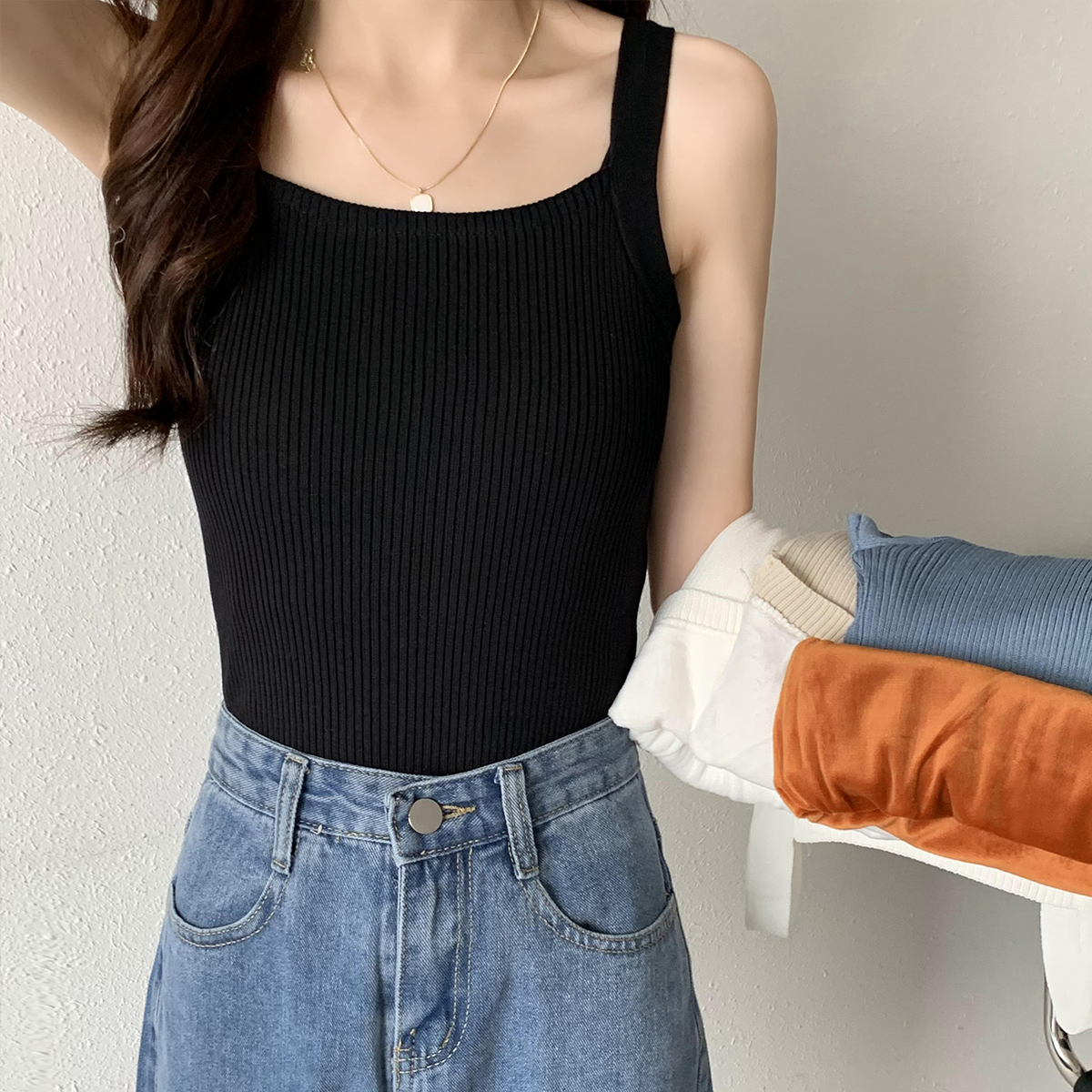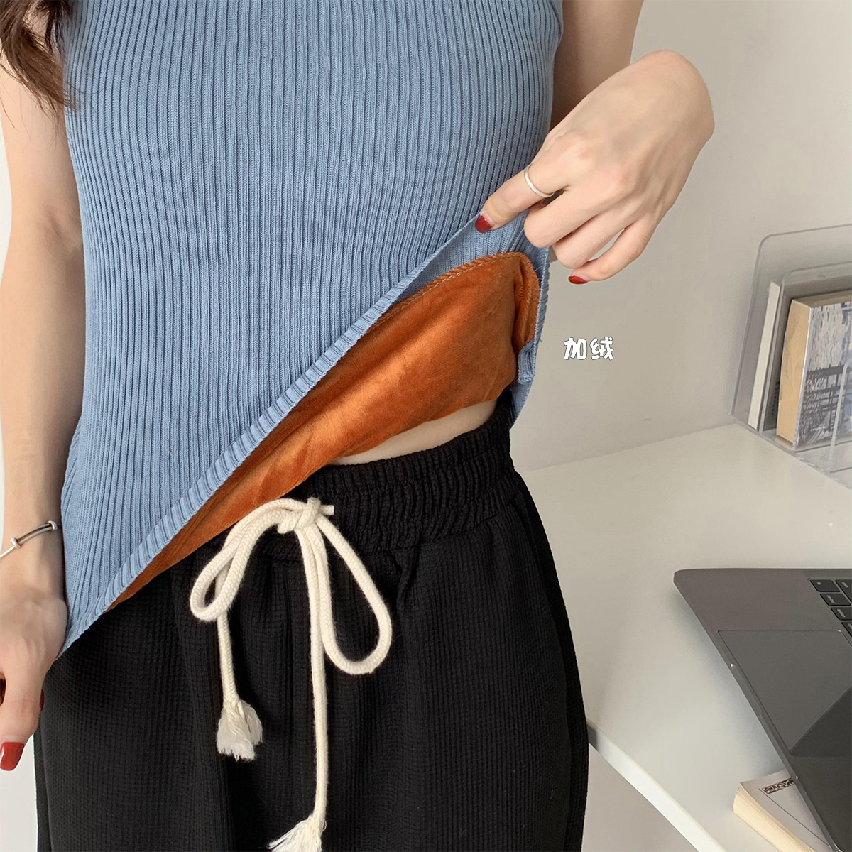 MY14733# 双层加绒针织吊带背心女内搭无袖弹力打底衫保暖上衣女裝貨源服裝批發