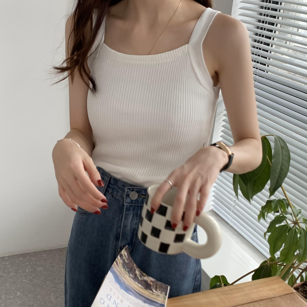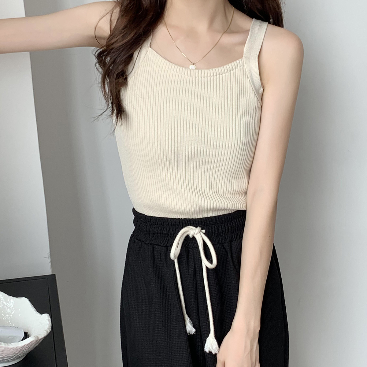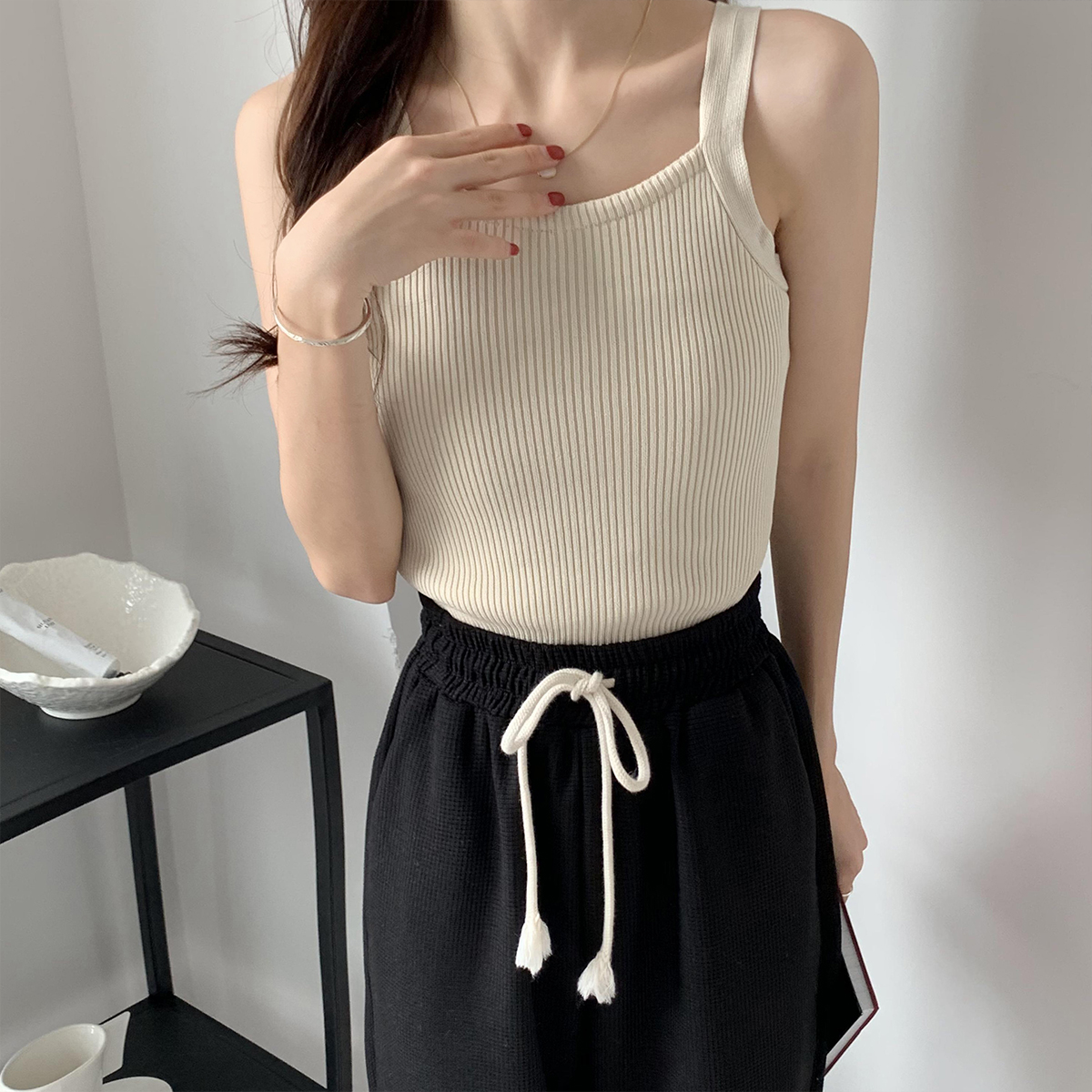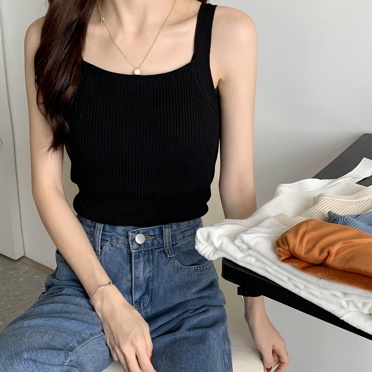 MY14733# 双层加绒针织吊带背心女内搭无袖弹力打底衫保暖上衣女裝貨源服裝批發