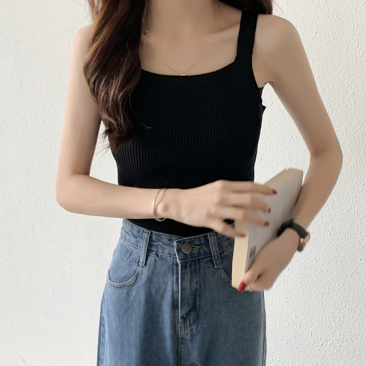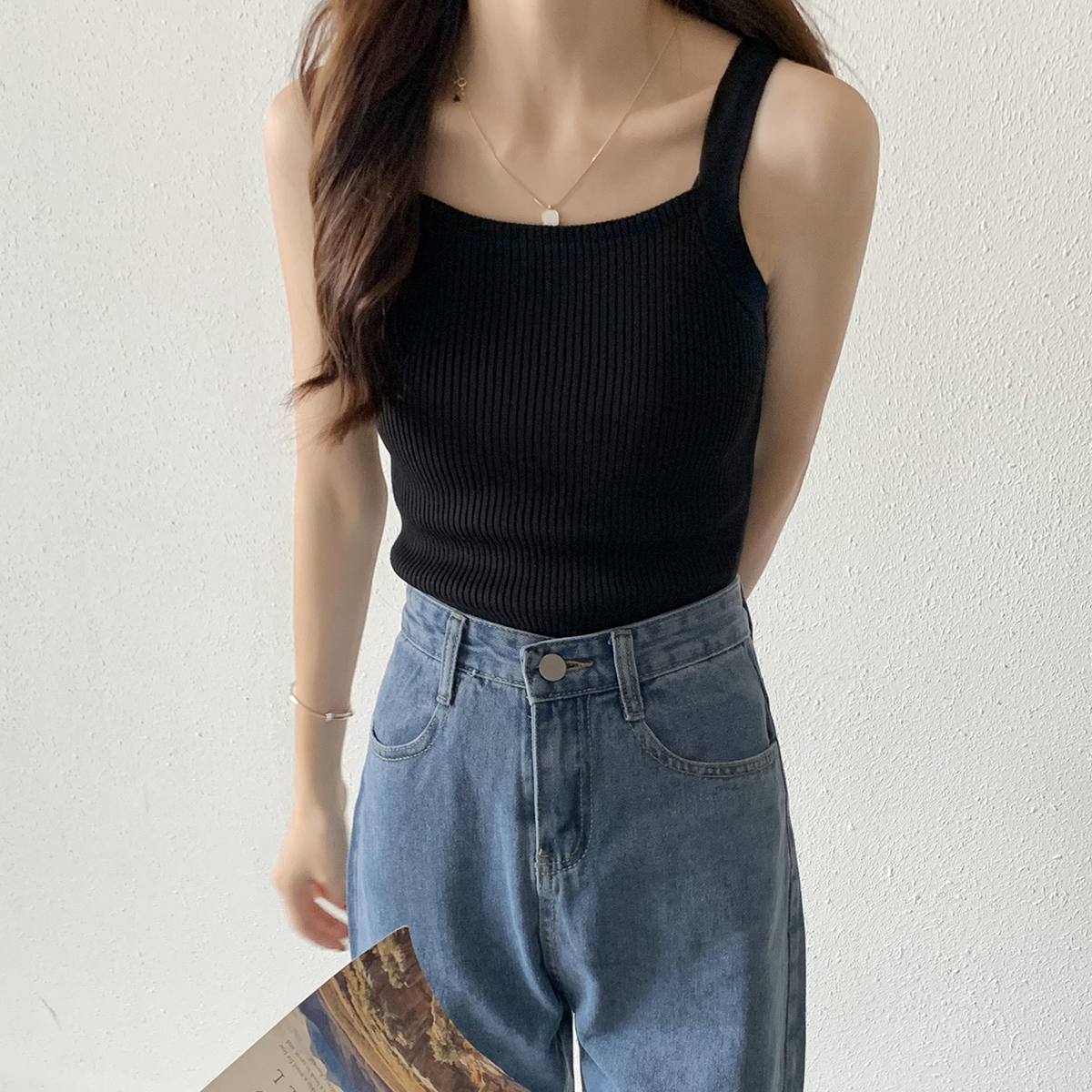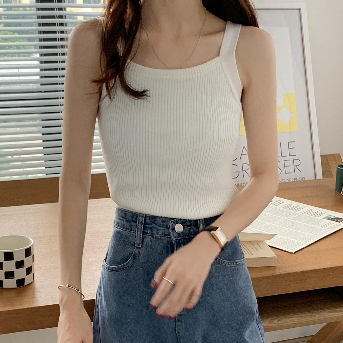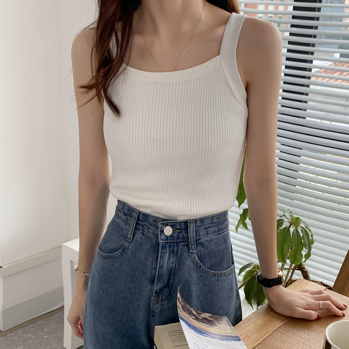 MY14733# 双层加绒针织吊带背心女内搭无袖弹力打底衫保暖上衣女裝貨源服裝批發