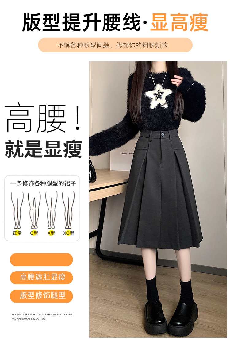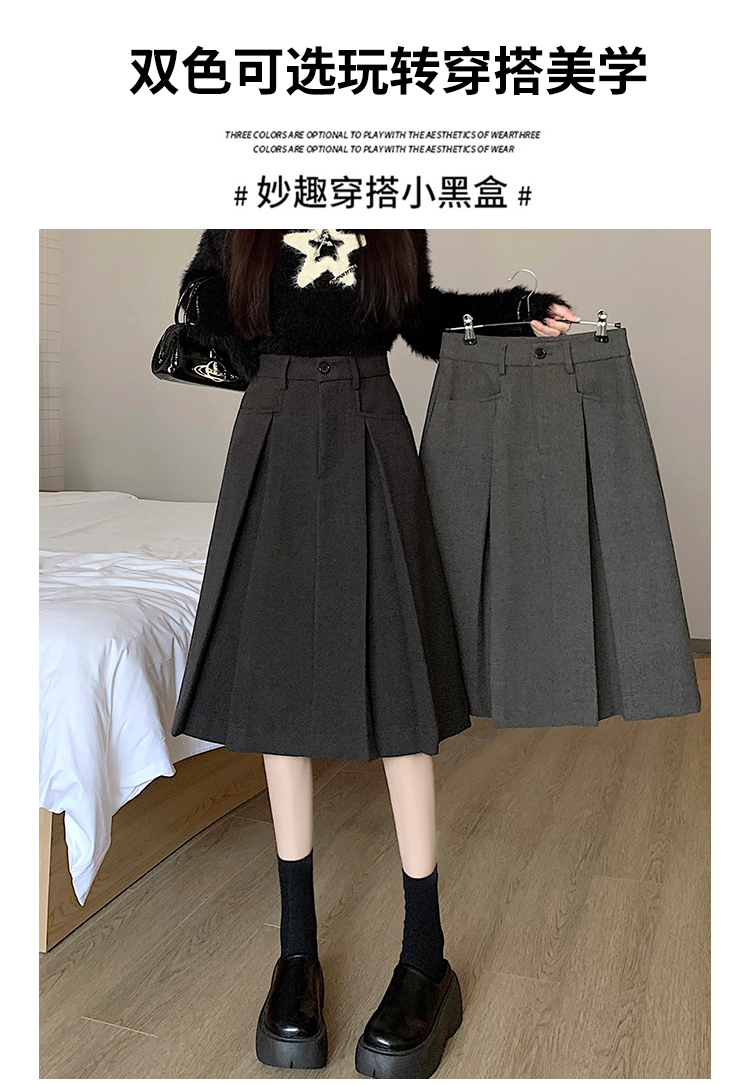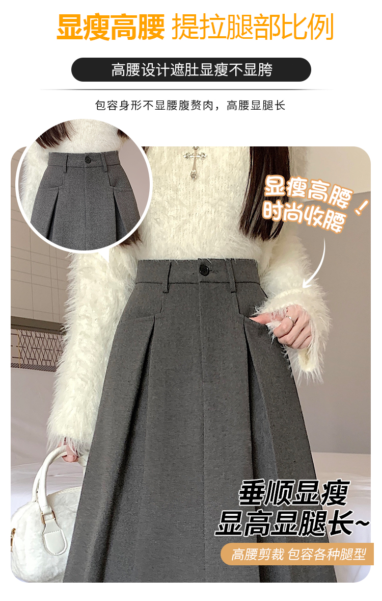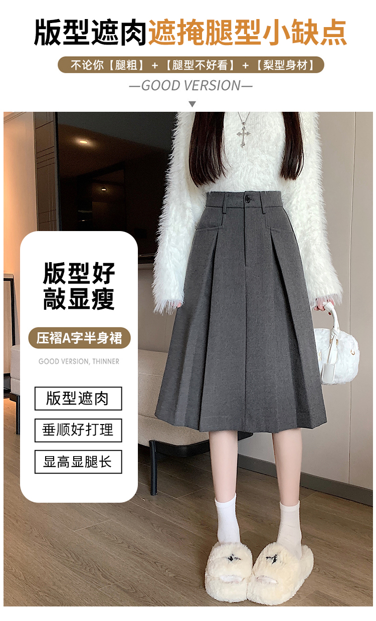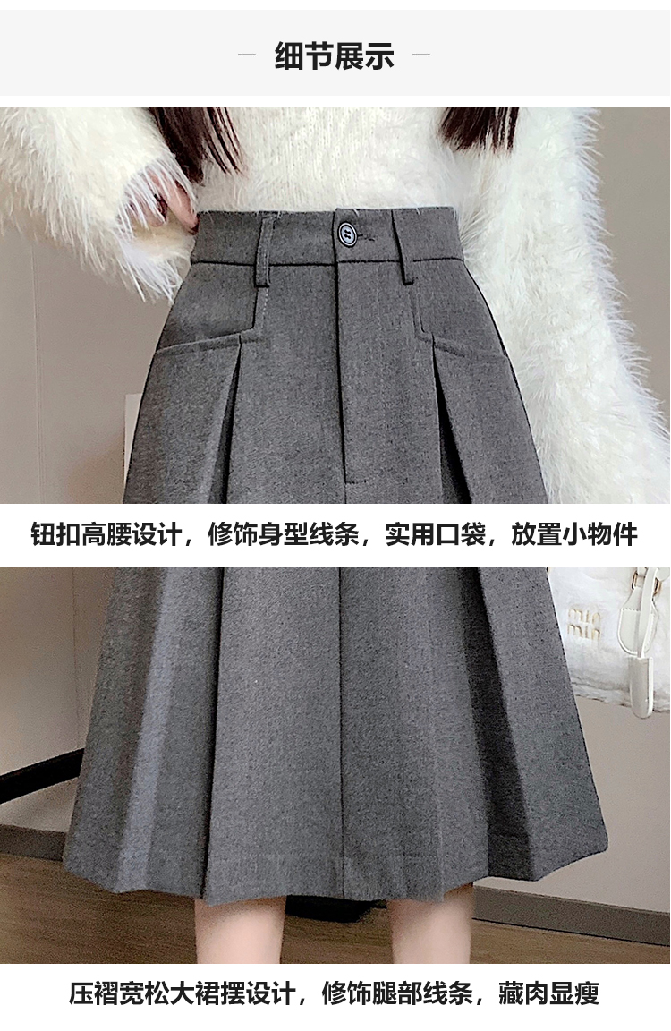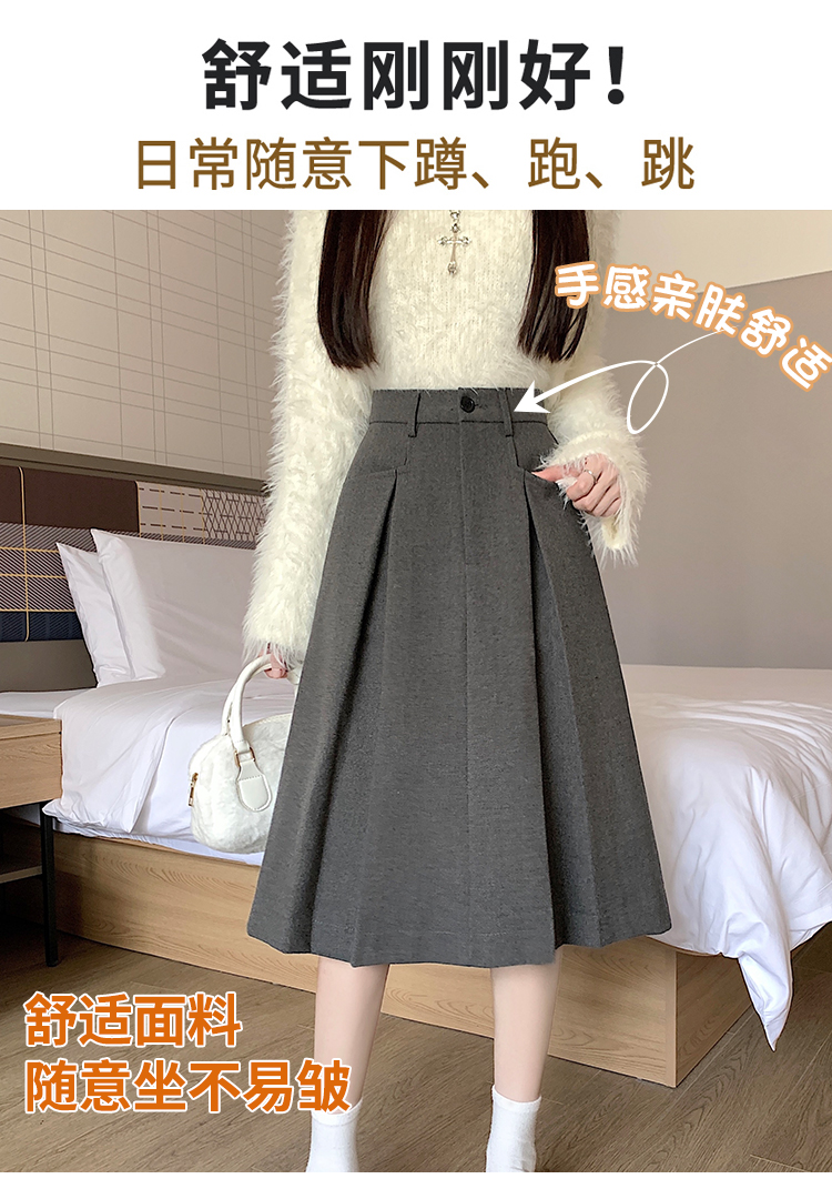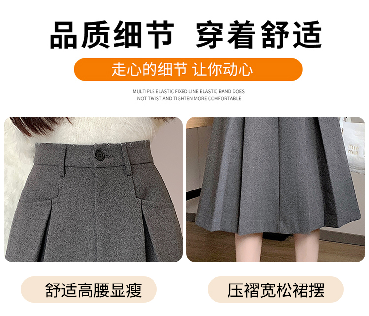 MY14753# 新款A型褶裥裙女毛呢百搭休闲百褶裙中长款半身裙女裝貨源服裝批發