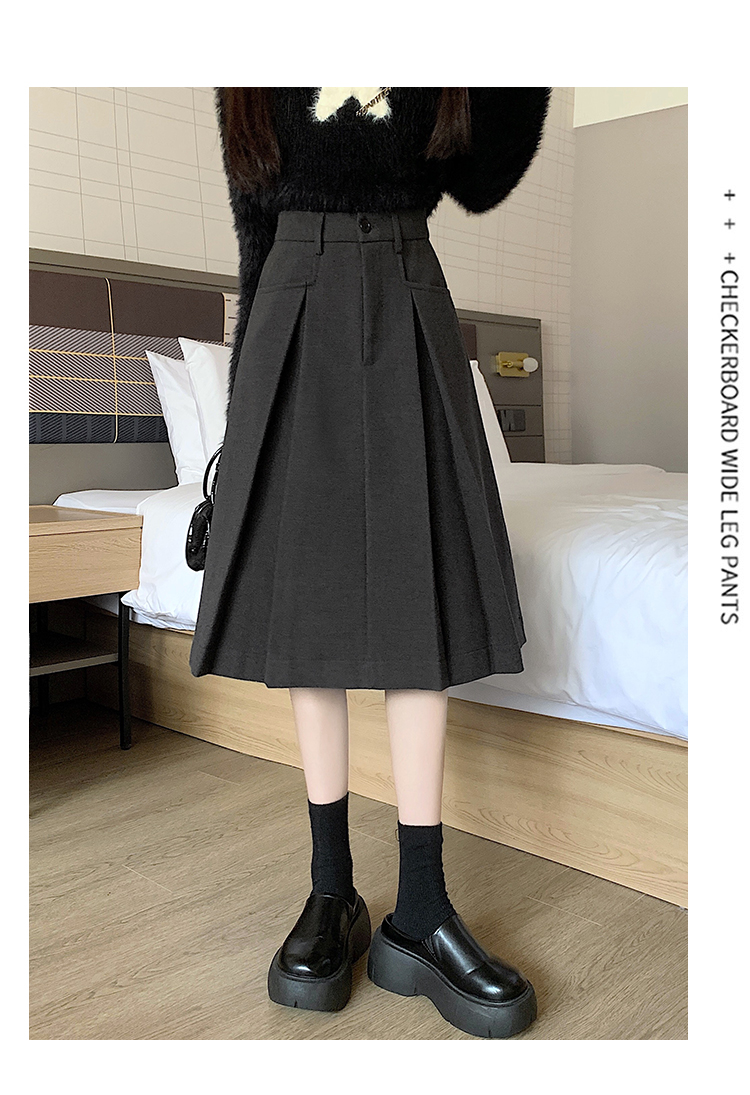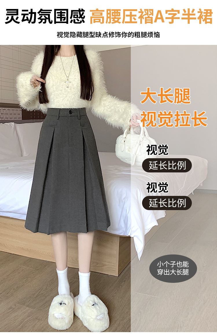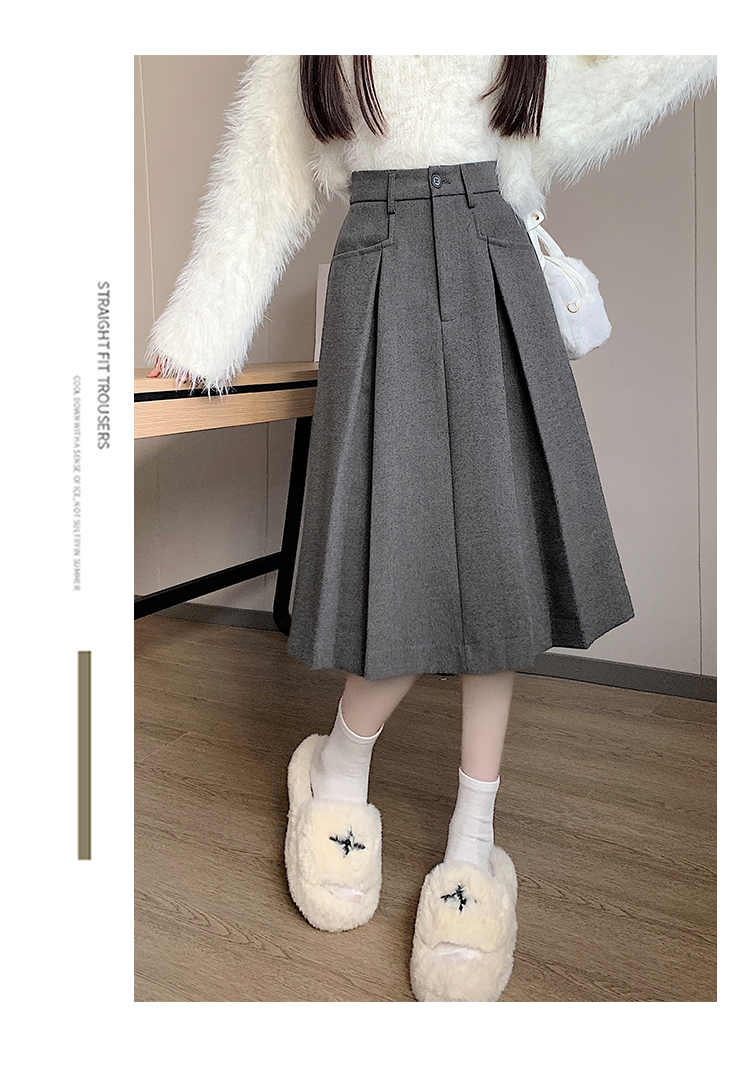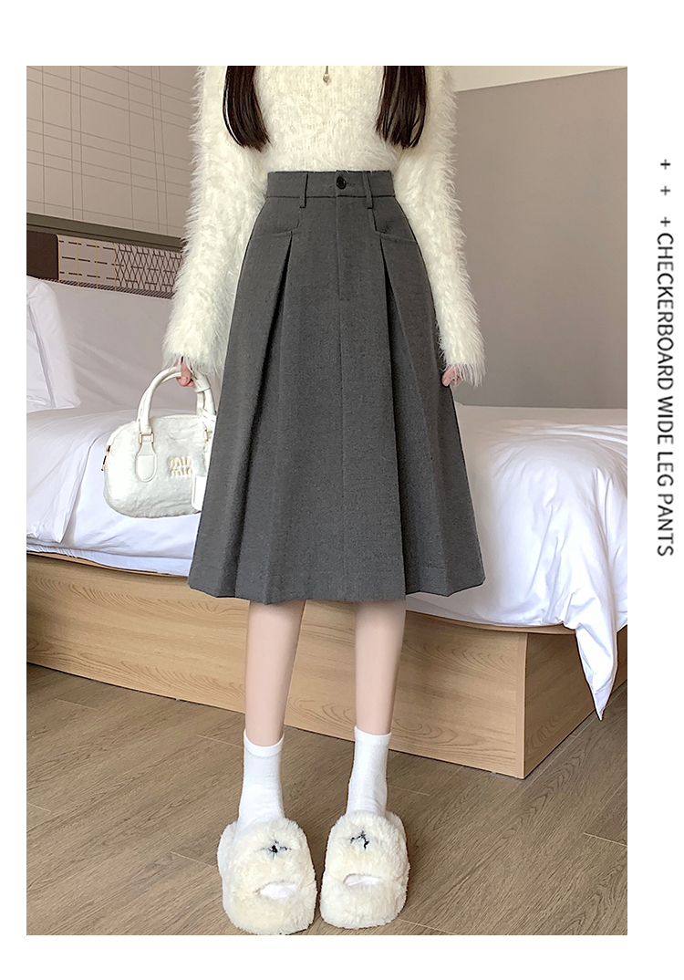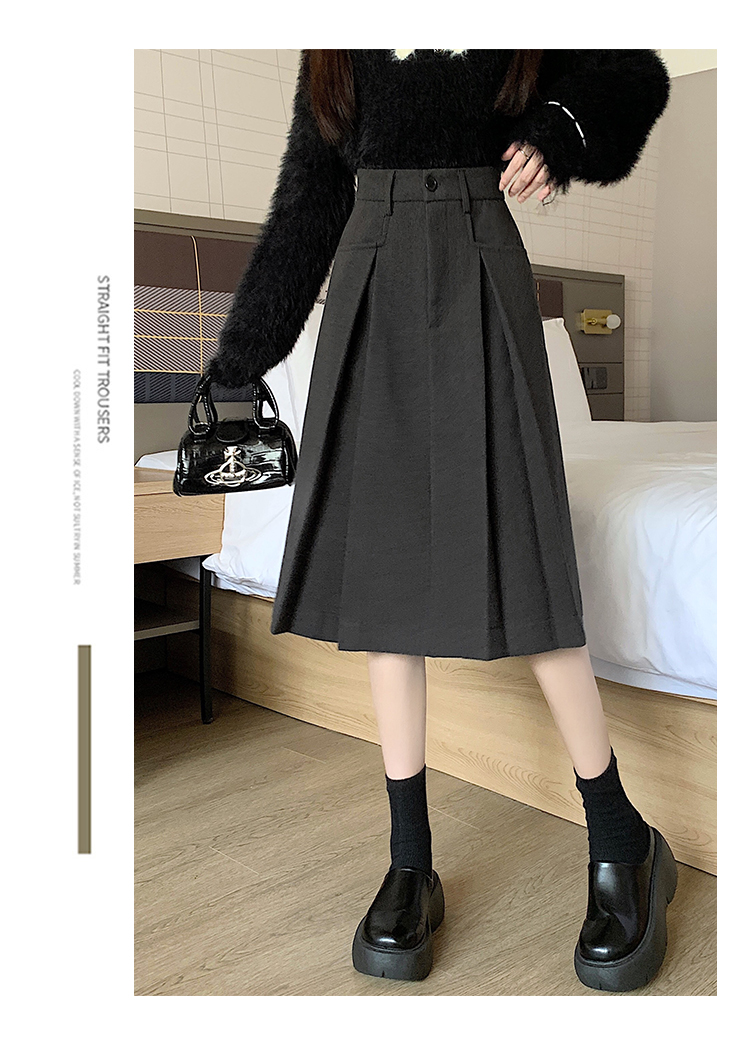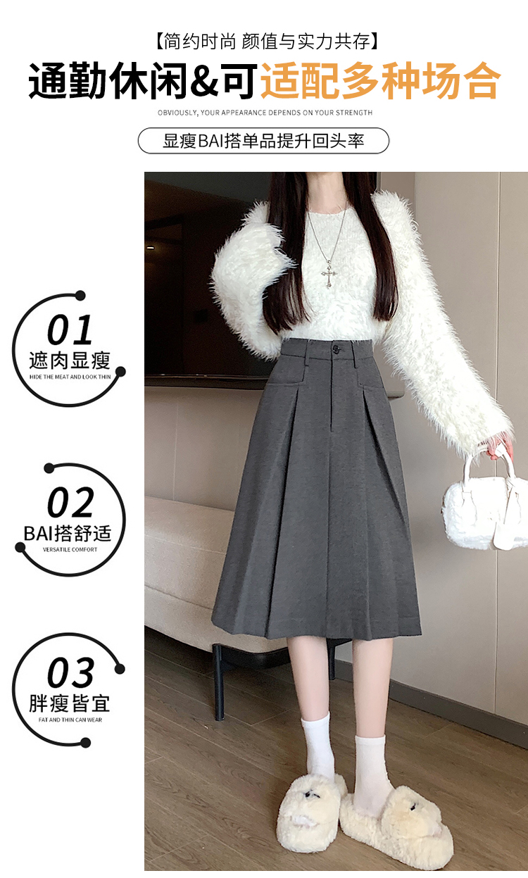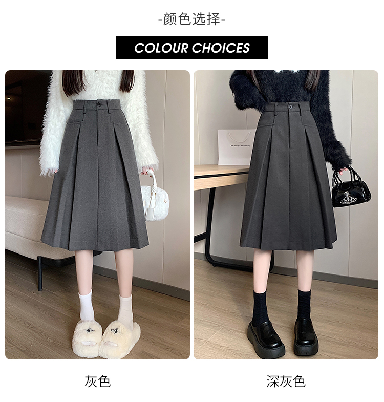 MY14753# 新款A型褶裥裙女毛呢百搭休闲百褶裙中长款半身裙女裝貨源服裝批發