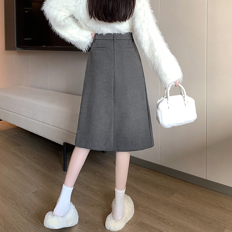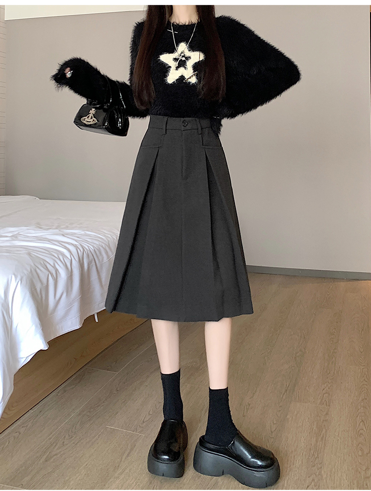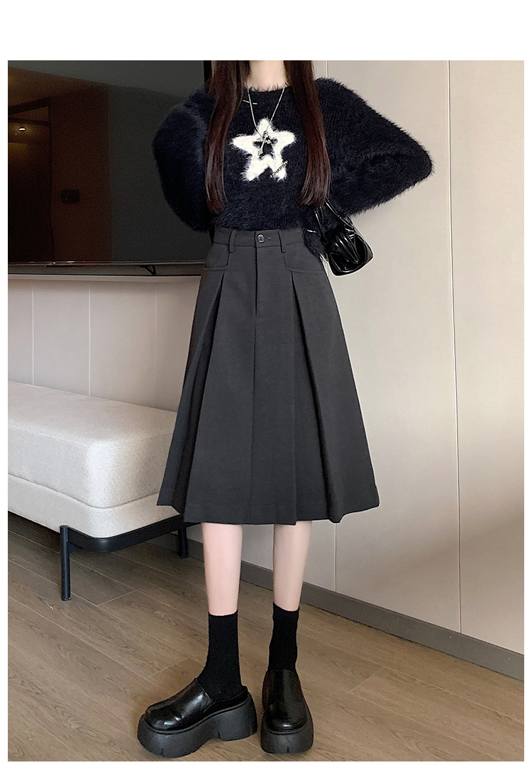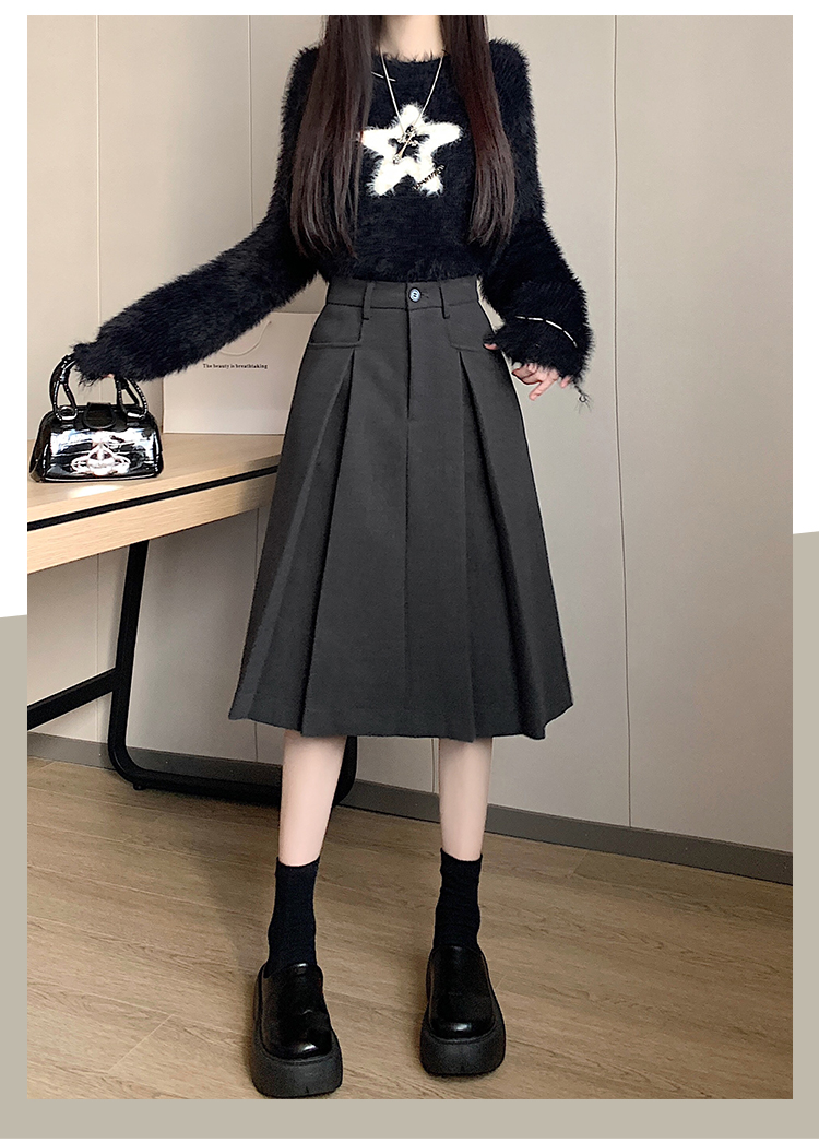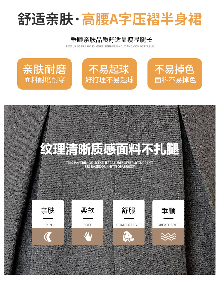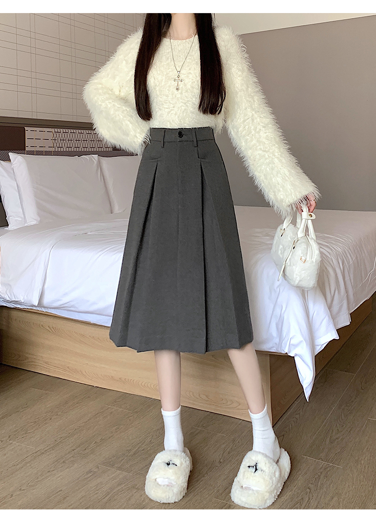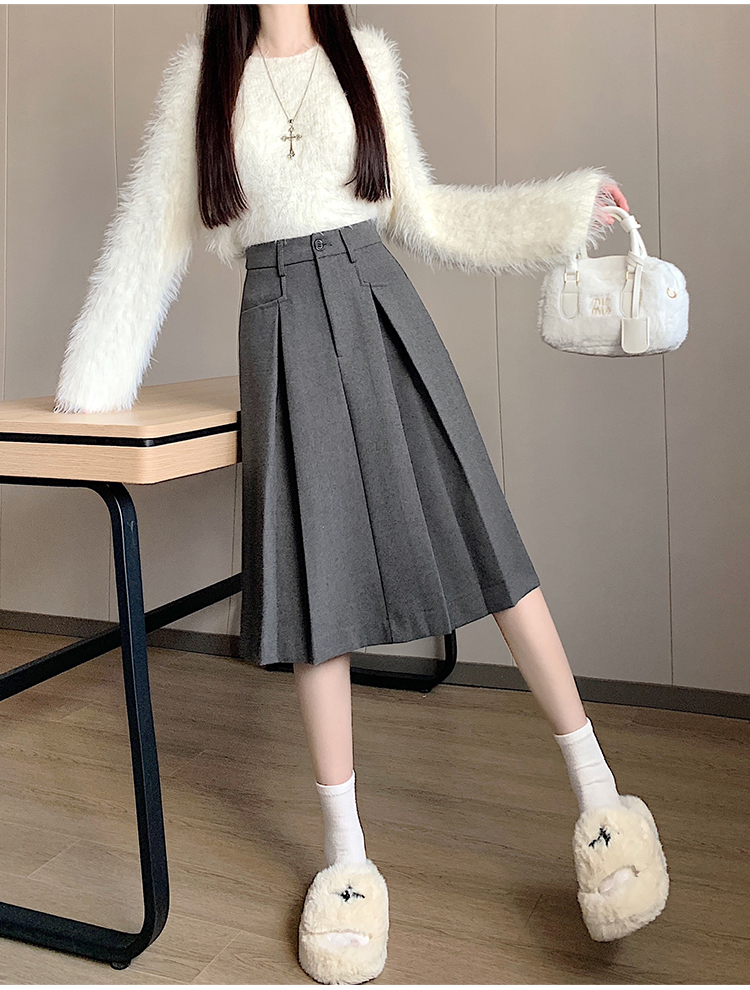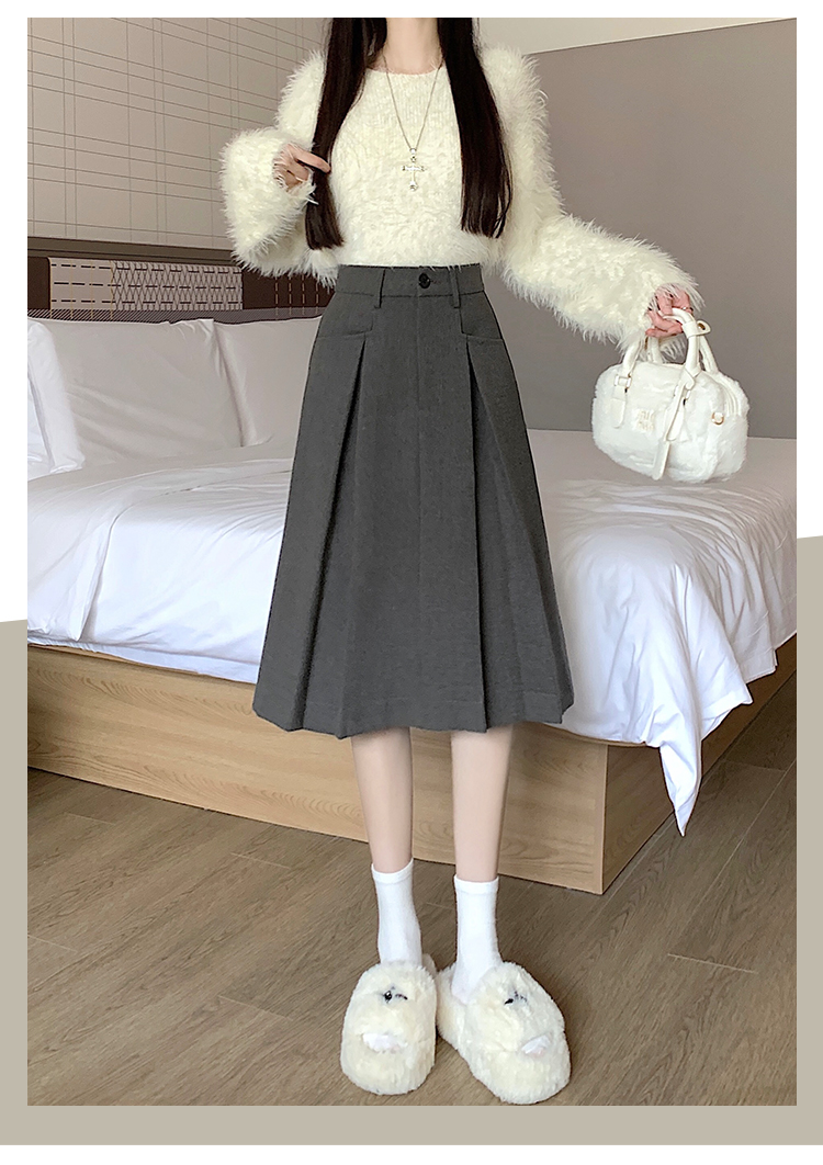 MY14753# 新款A型褶裥裙女毛呢百搭休闲百褶裙中长款半身裙女裝貨源服裝批發