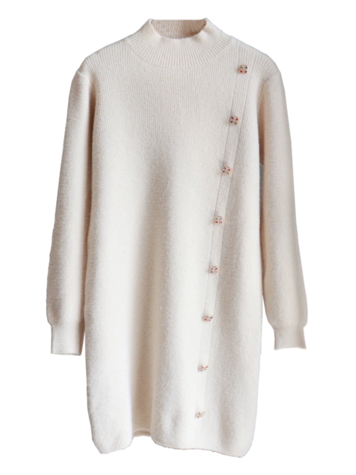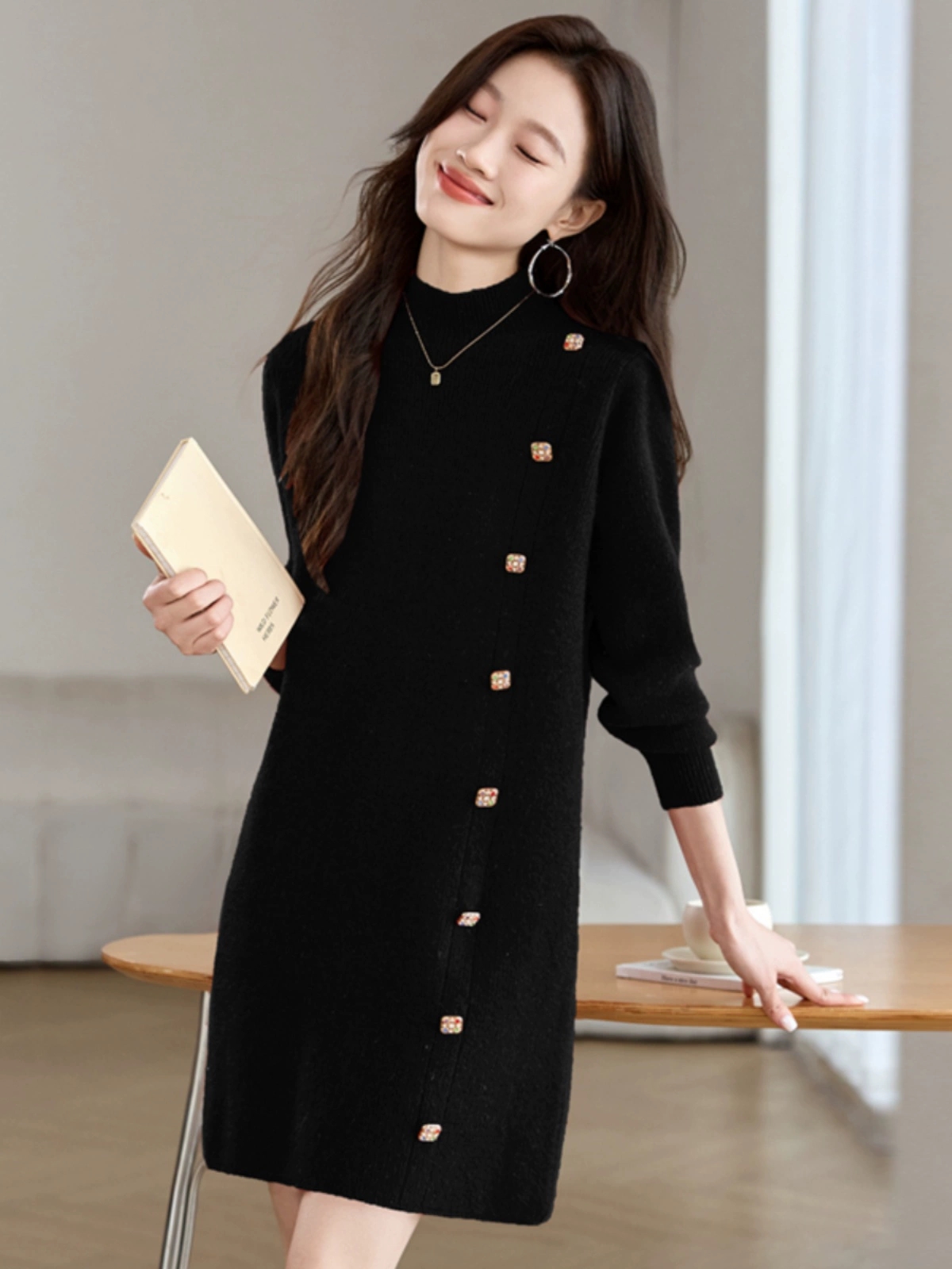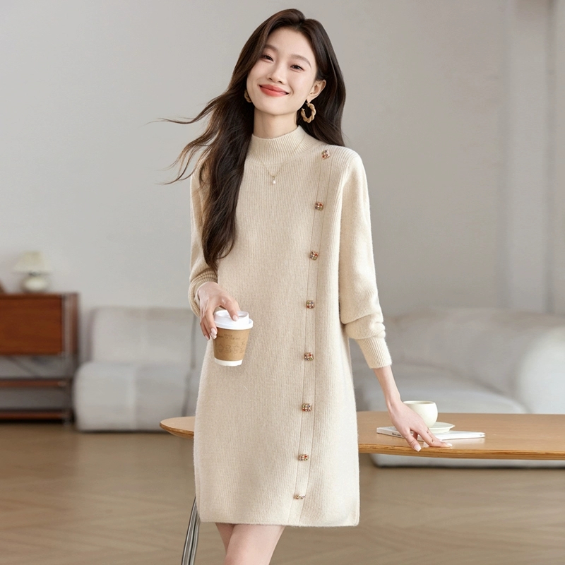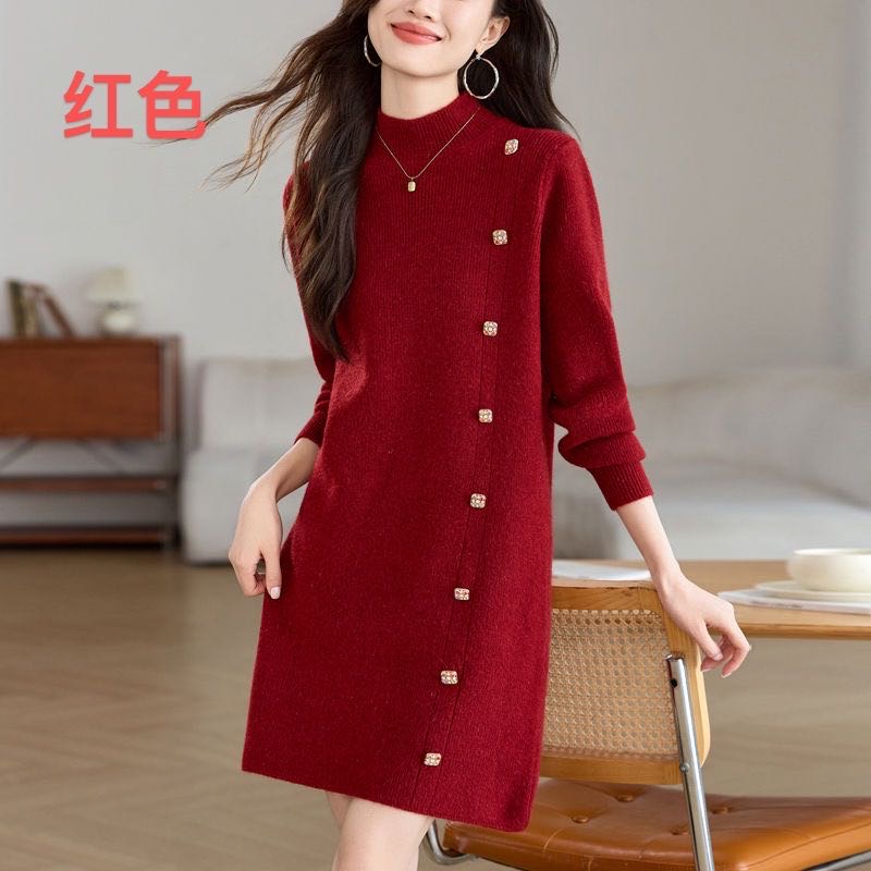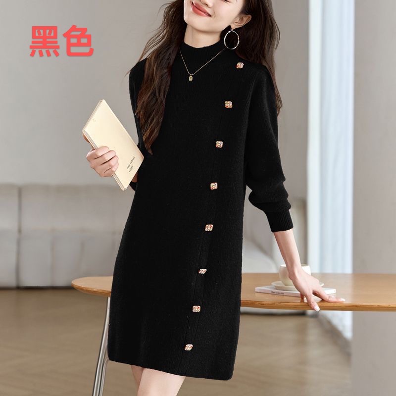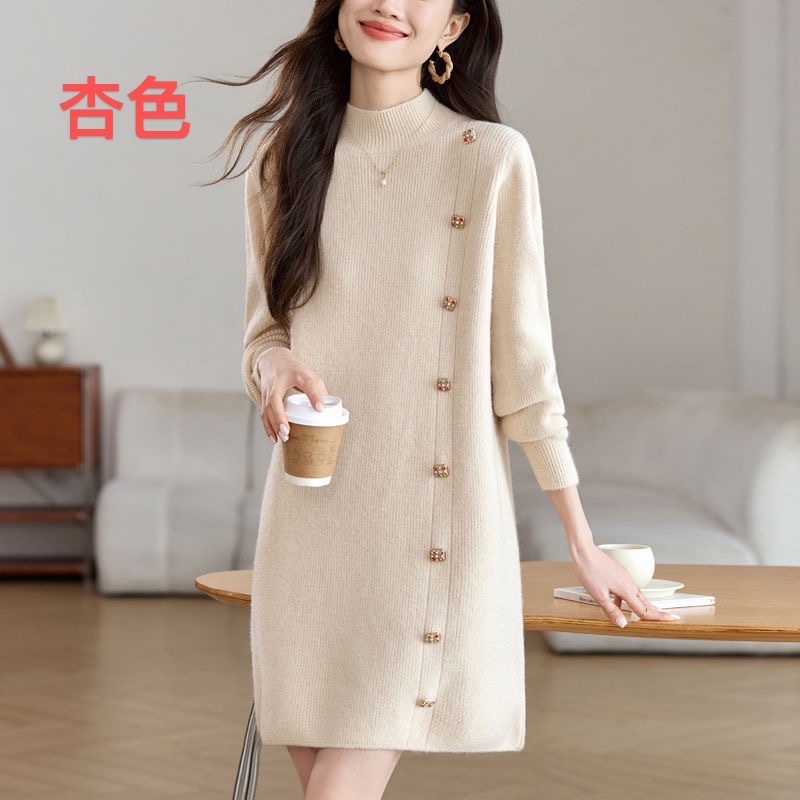 MY14762# 小个子单穿中长款显瘦毛衣裙半高领打底针织连衣裙女裝貨源服裝批發