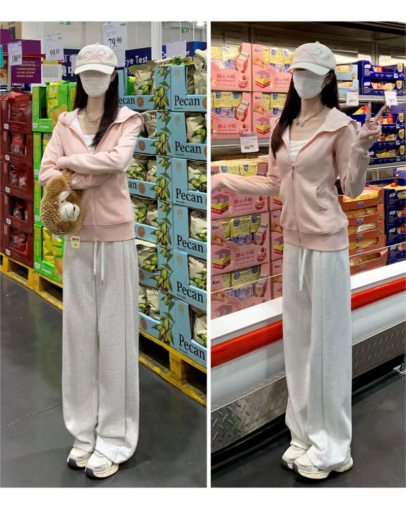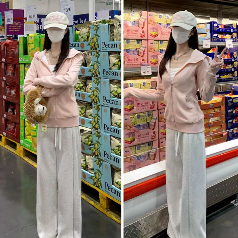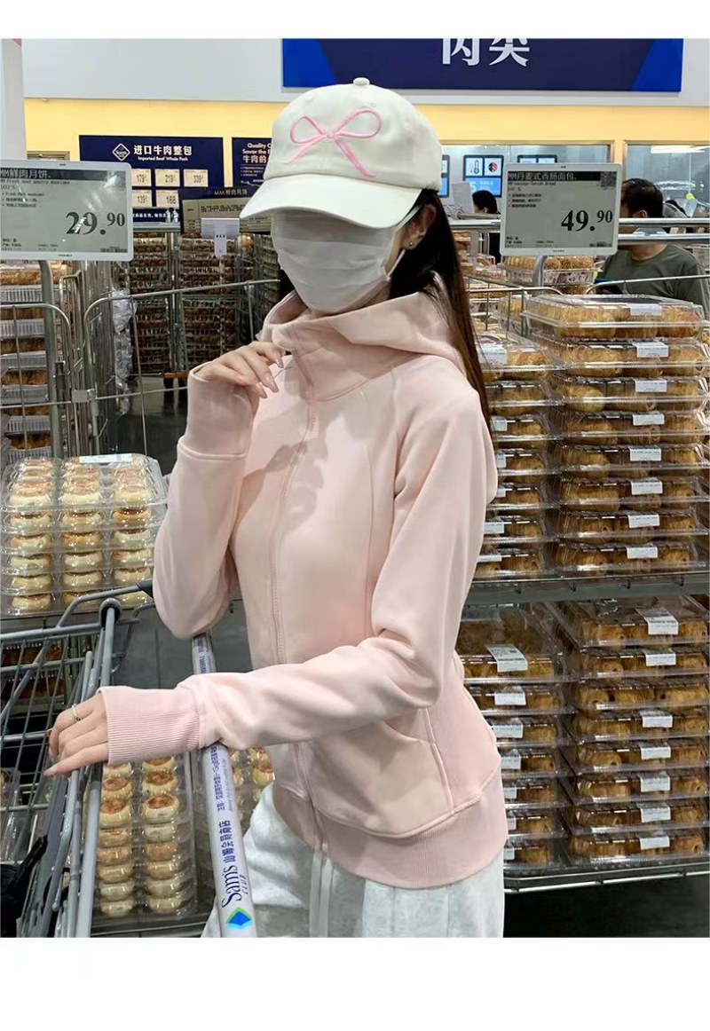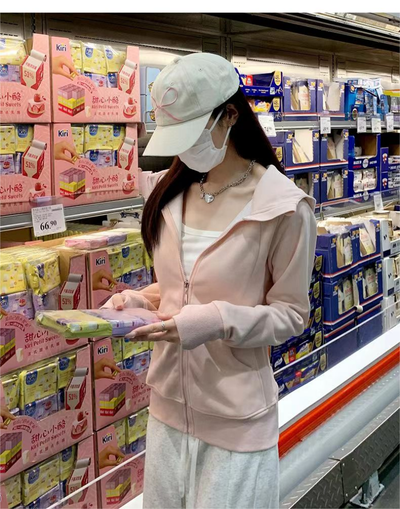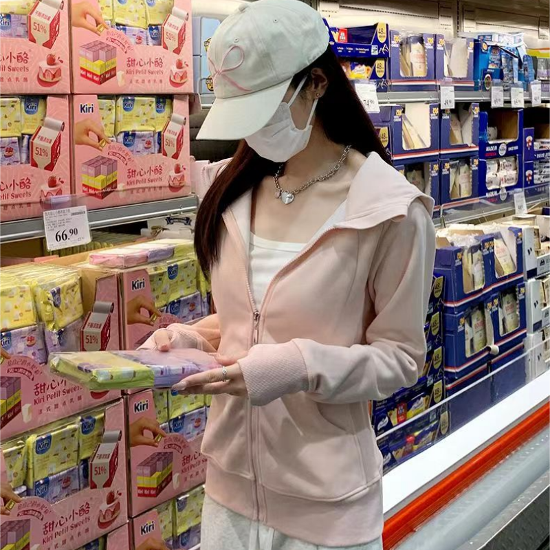MY14764# 美式粉色连帽卫衣外套女新款拉链开衫短款上衣款女裝貨源服裝批發