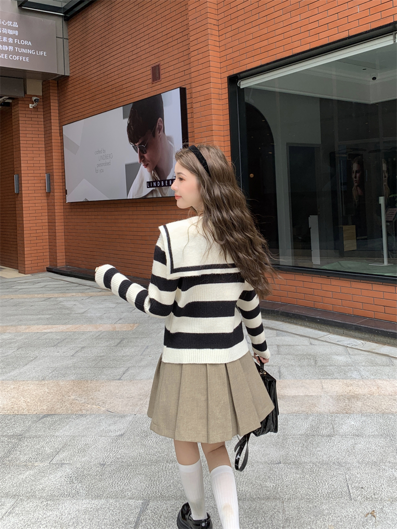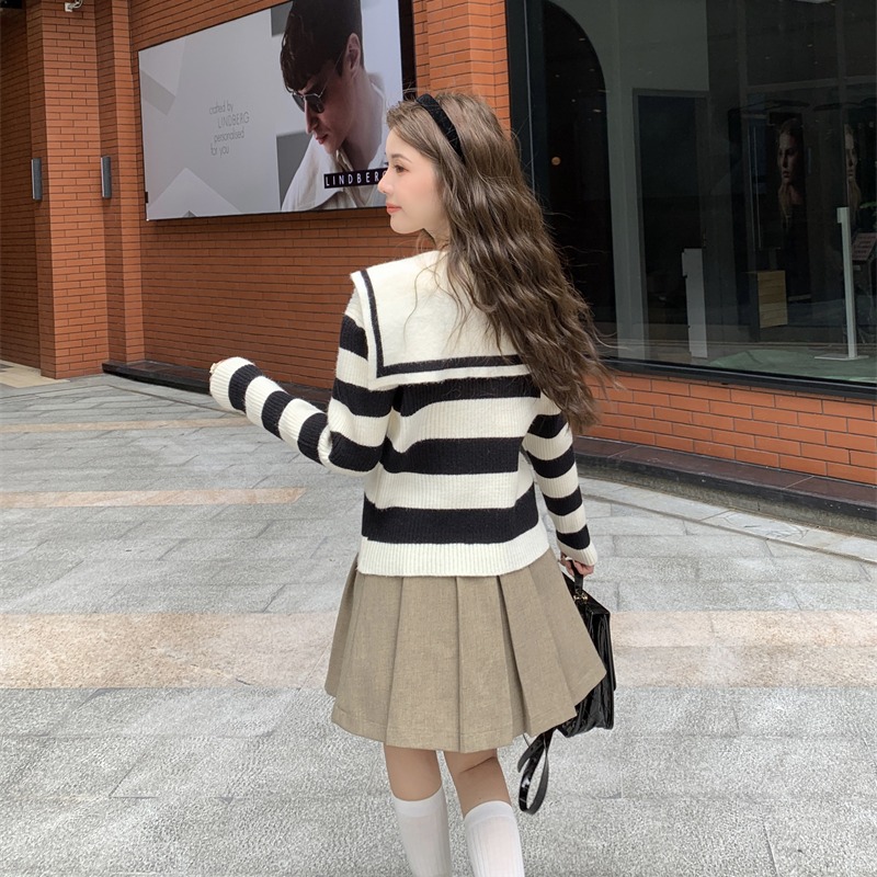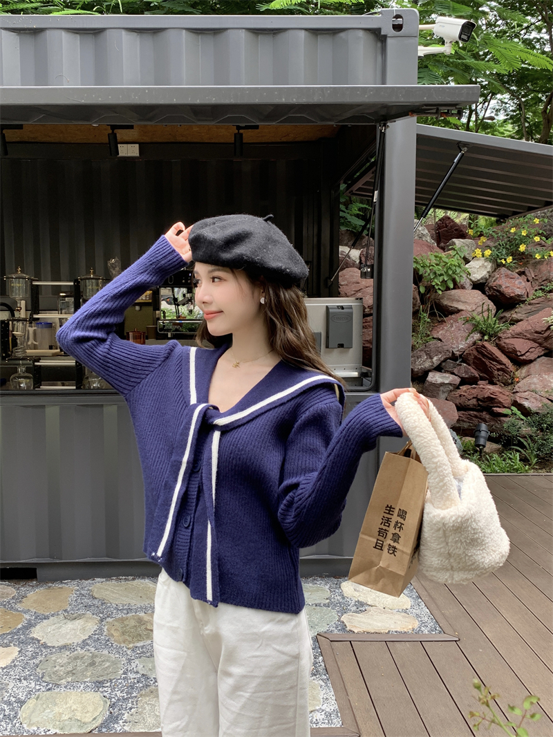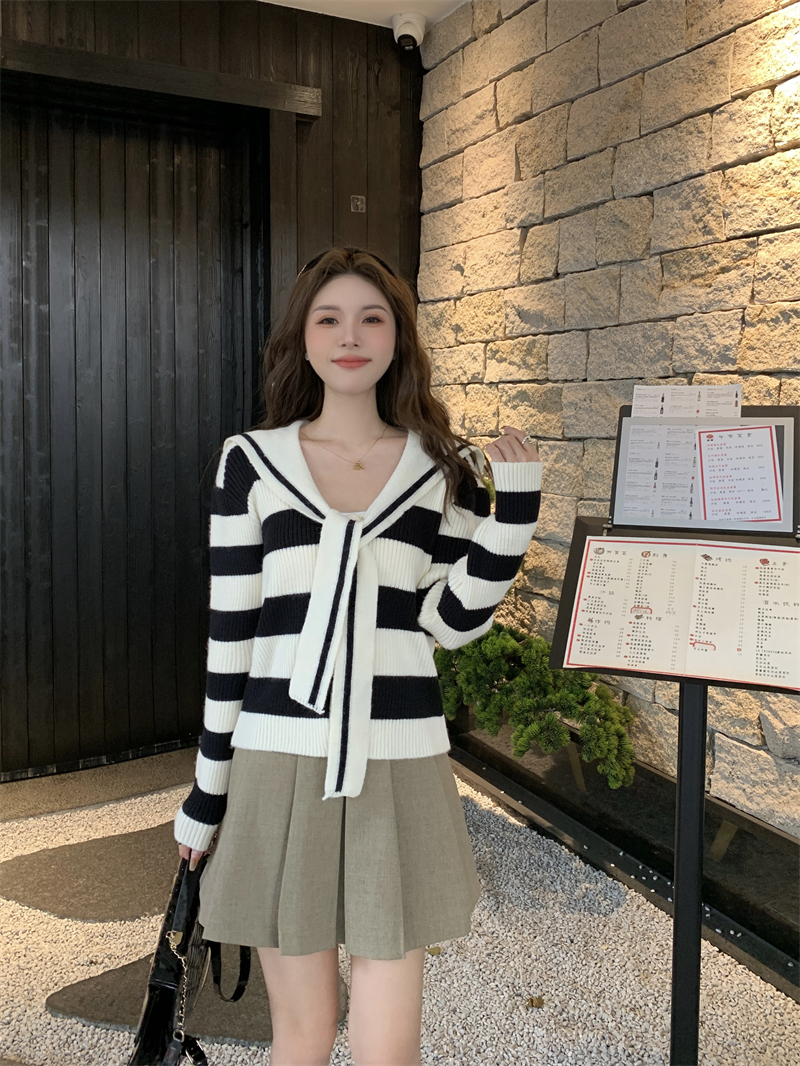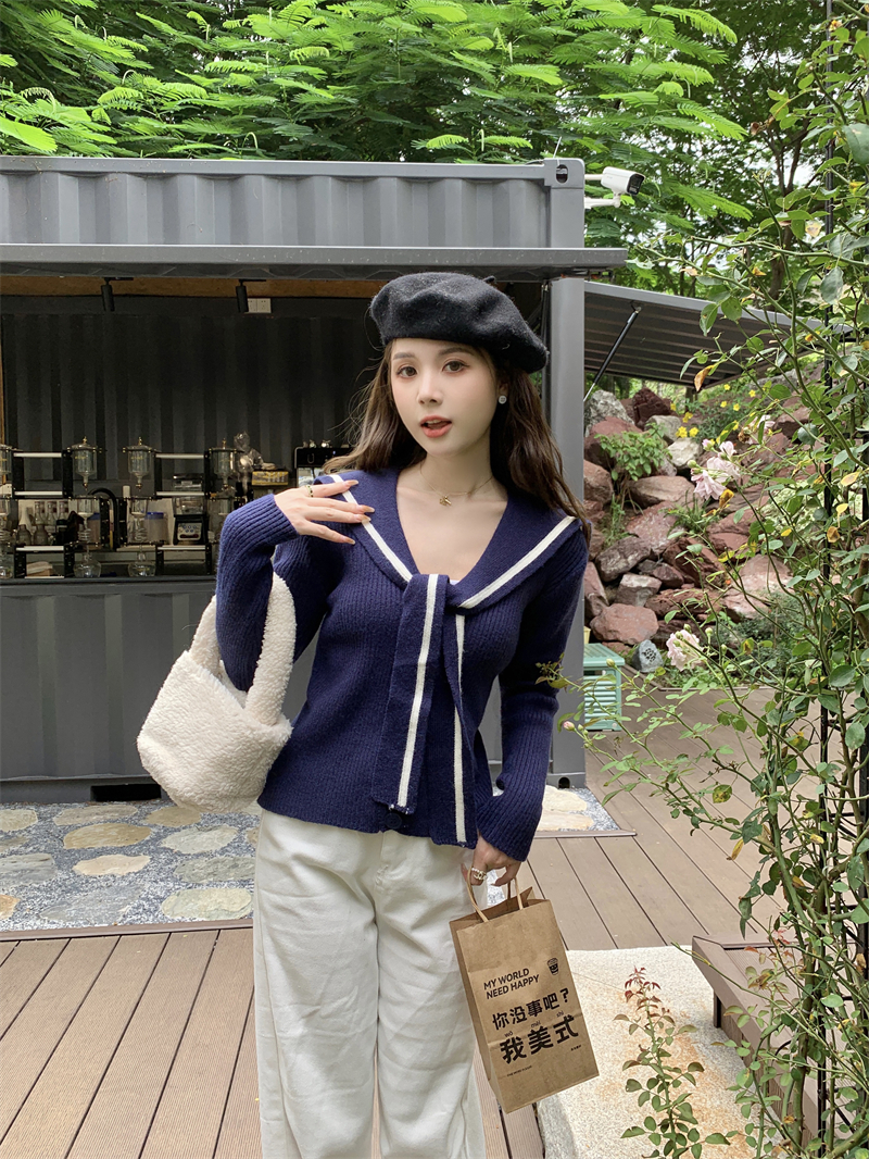 MY14778# 大码胖MMmiu系少女海军翻领毛衣宽松显瘦撞色毛衣女女裝貨源服裝批發