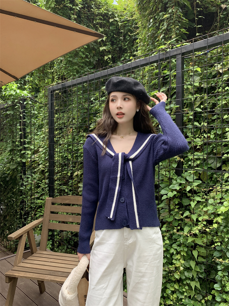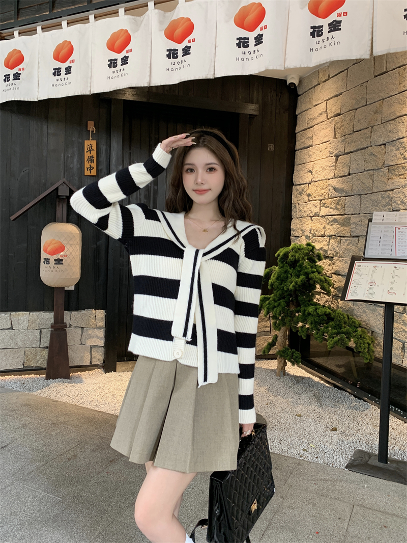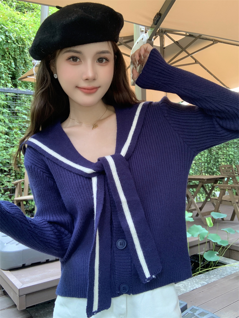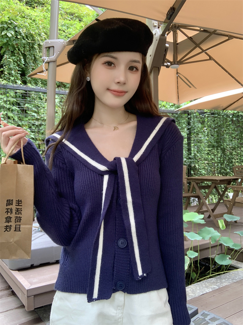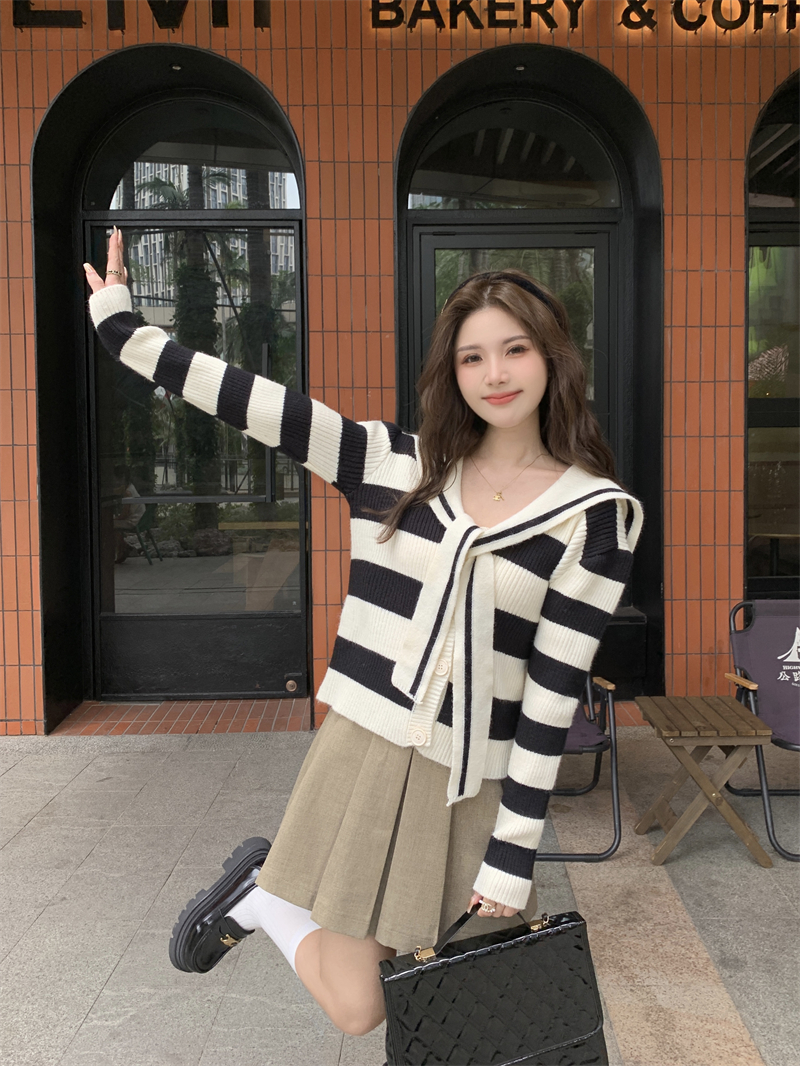 MY14778# 大码胖MMmiu系少女海军翻领毛衣宽松显瘦撞色毛衣女女裝貨源服裝批發