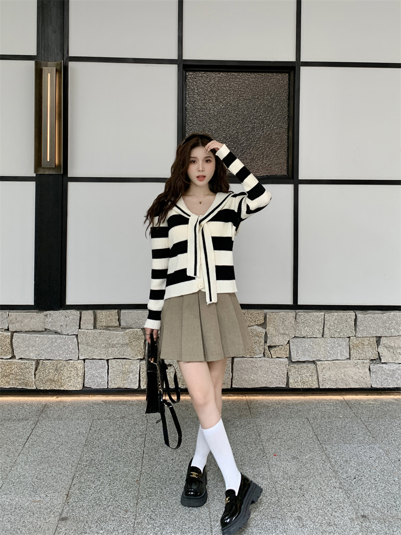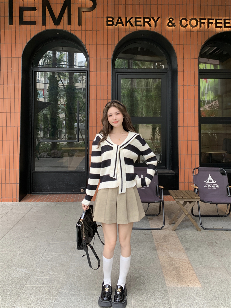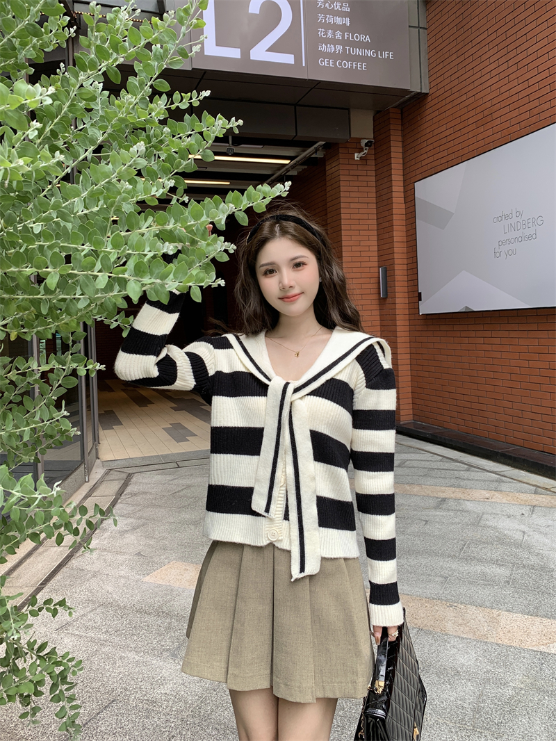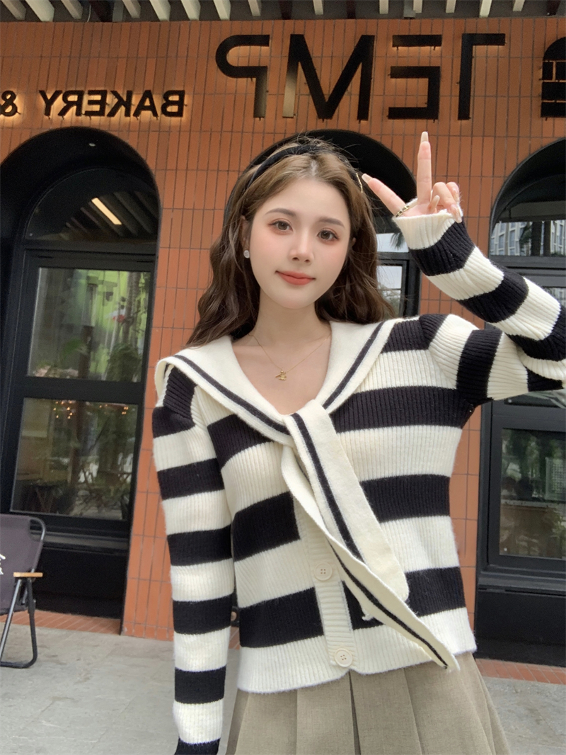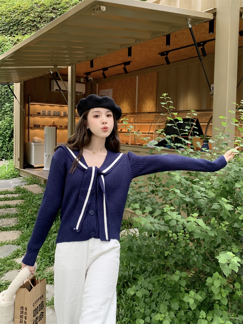 MY14778# 大码胖MMmiu系少女海军翻领毛衣宽松显瘦撞色毛衣女女裝貨源服裝批發