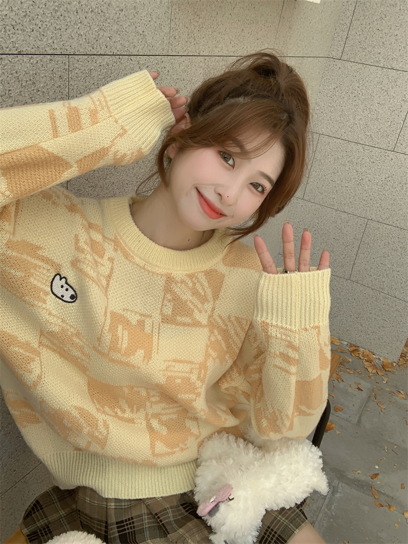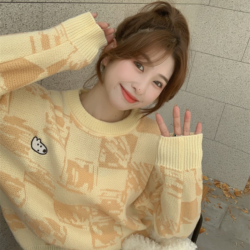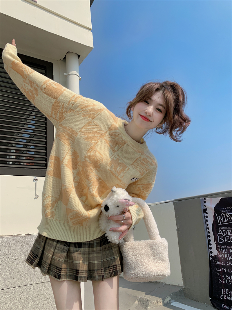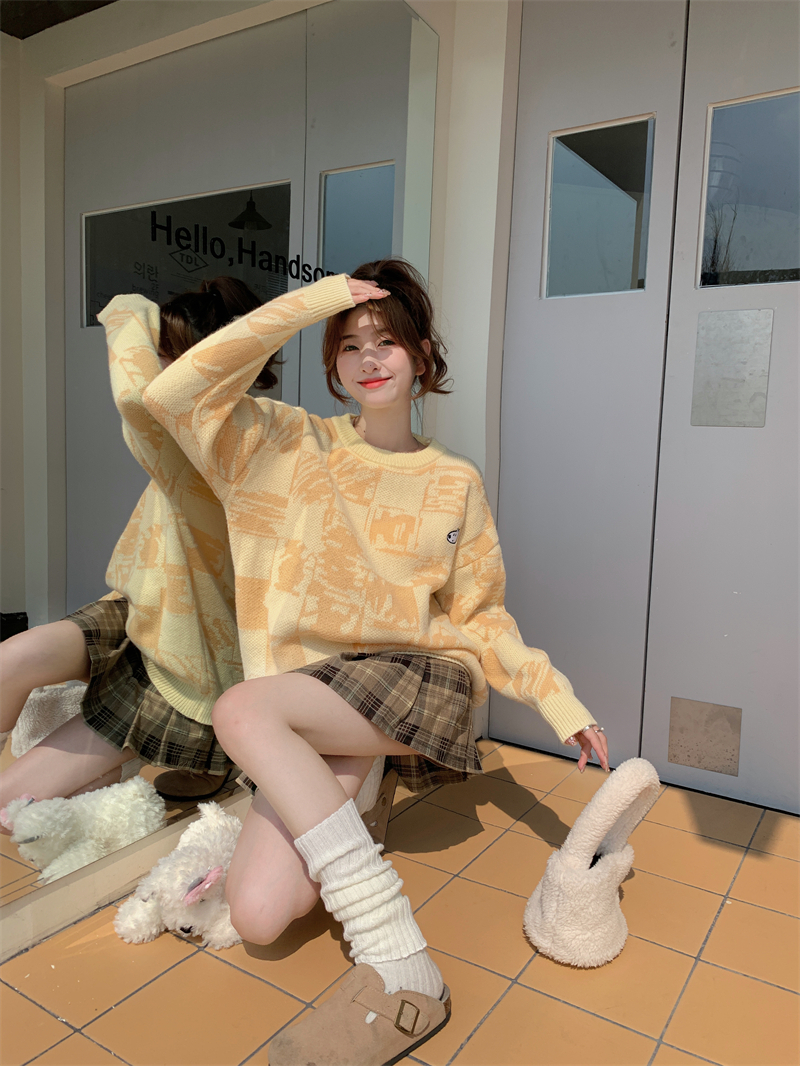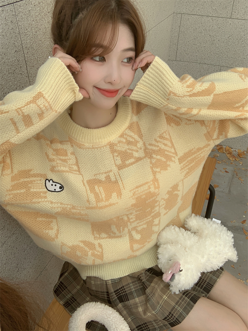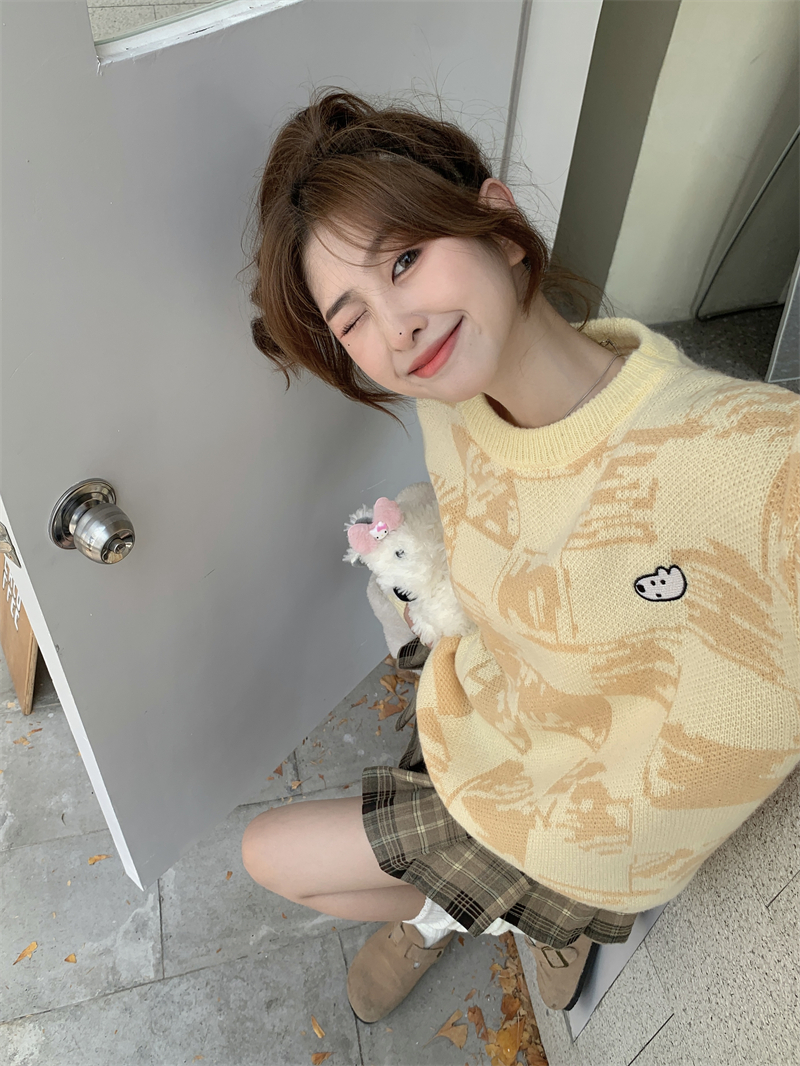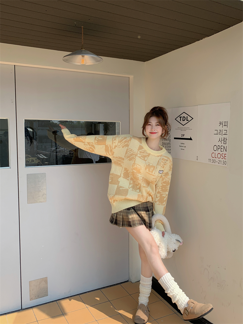MY14779# 大码胖MM复古奶系软糯显白休闲百搭毛衣女裝貨源服裝批發