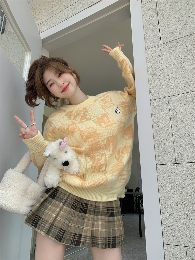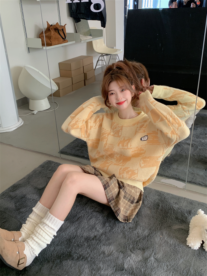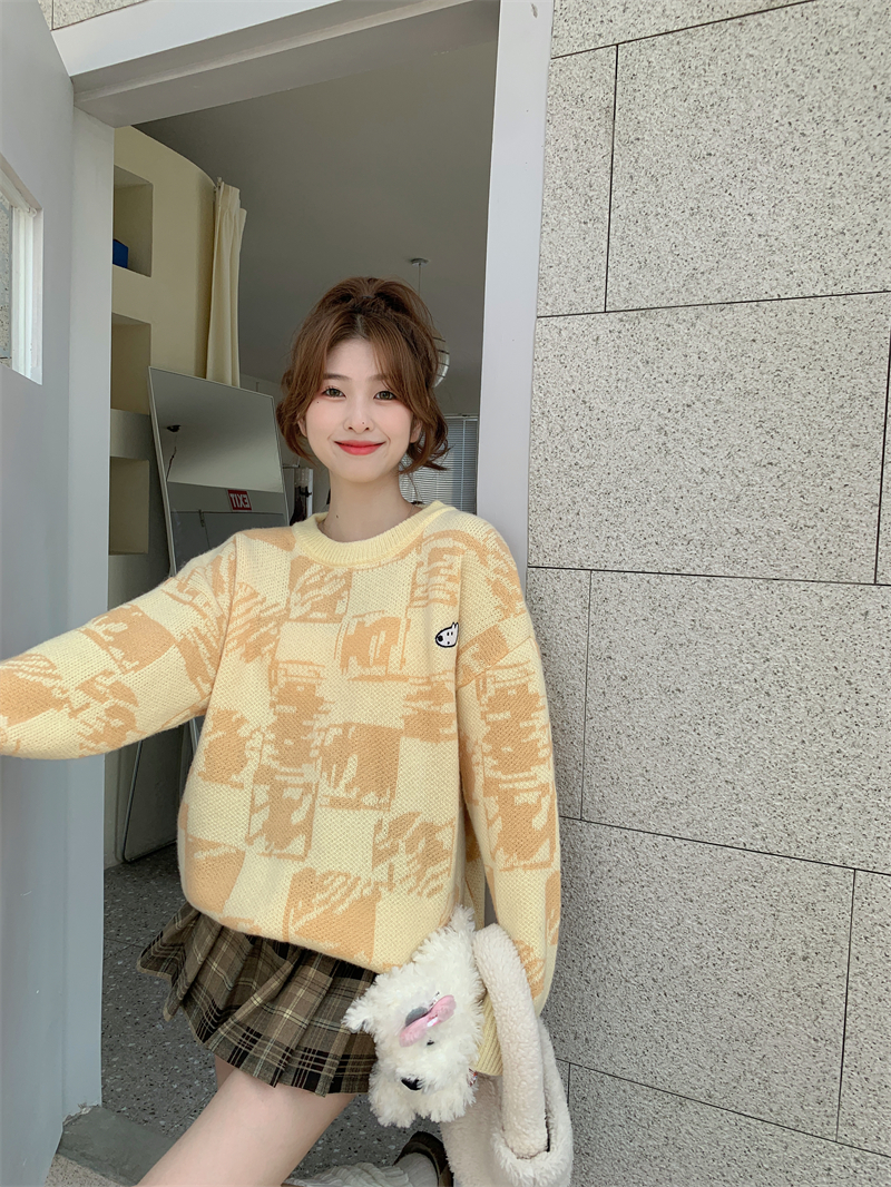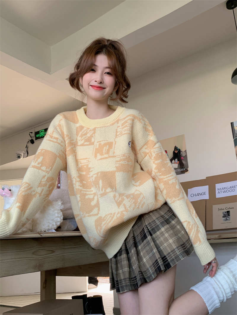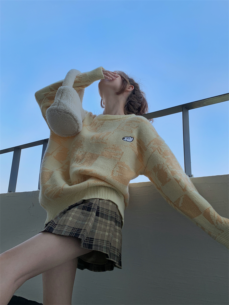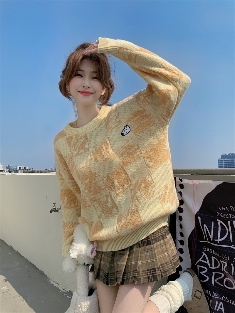 MY14779# 大码胖MM复古奶系软糯显白休闲百搭毛衣女裝貨源服裝批發