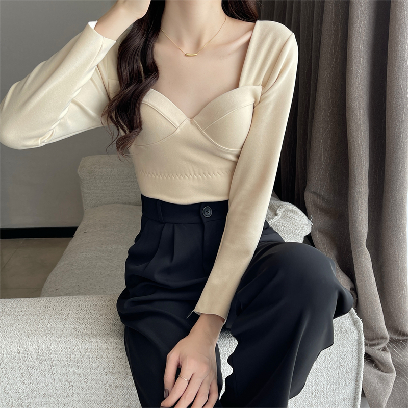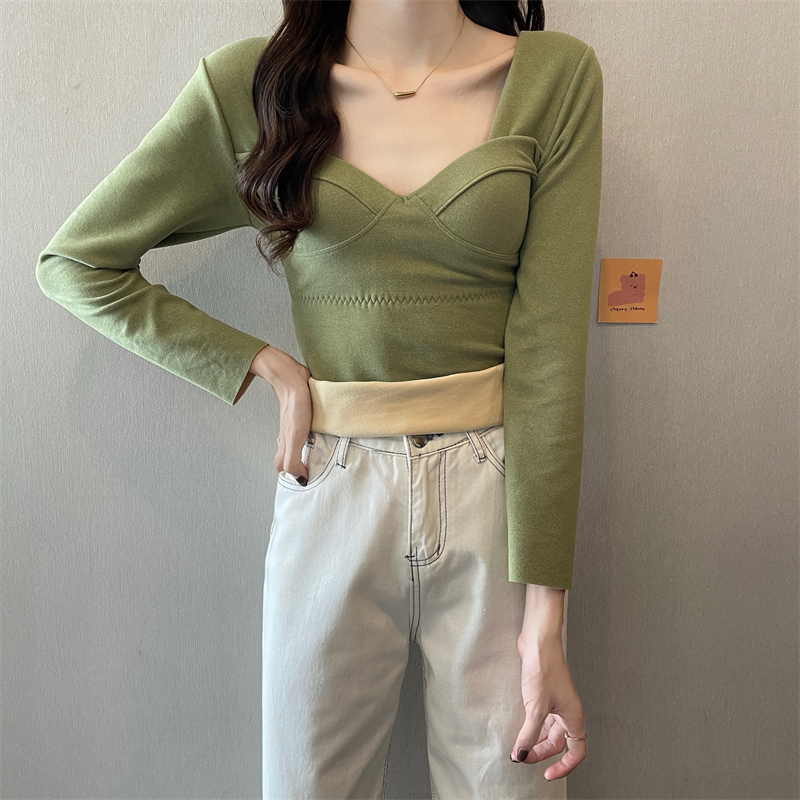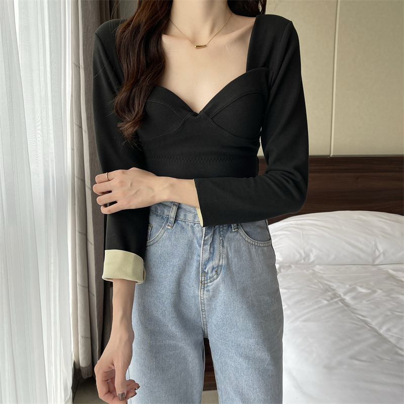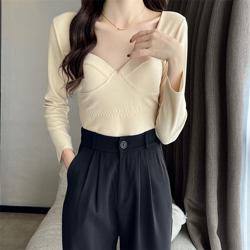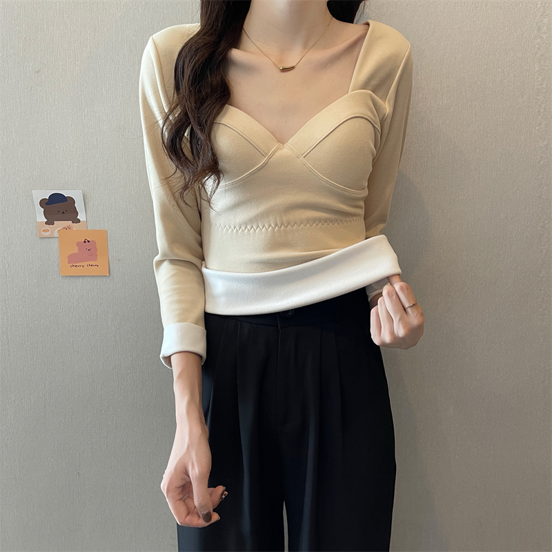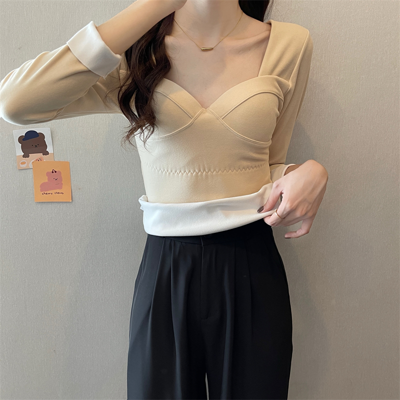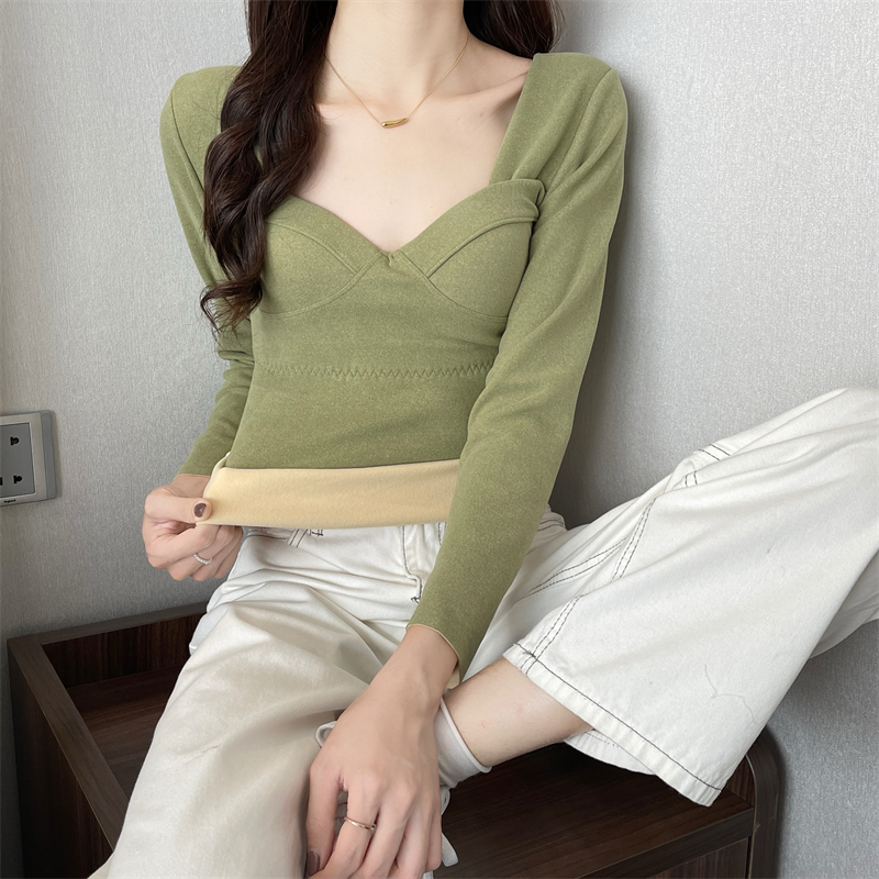 MY14780# 大码带胸垫德绒加厚保暖自发热无痕打底上衣女裝貨源服裝批發
