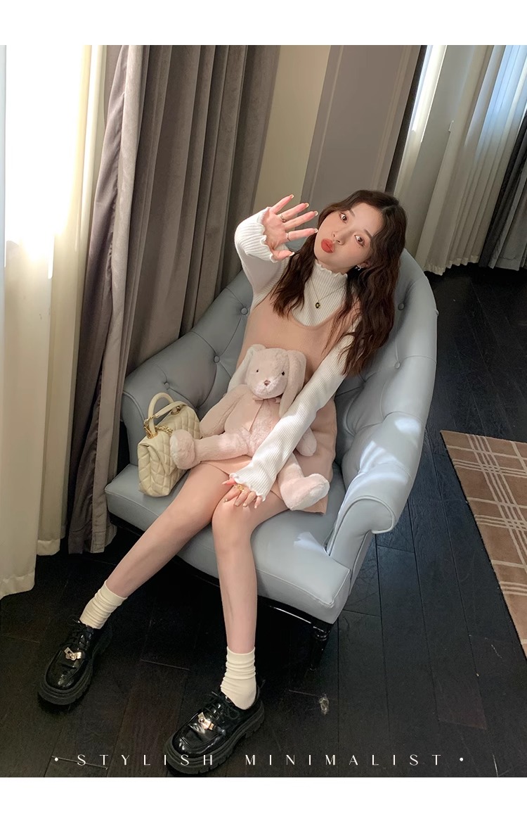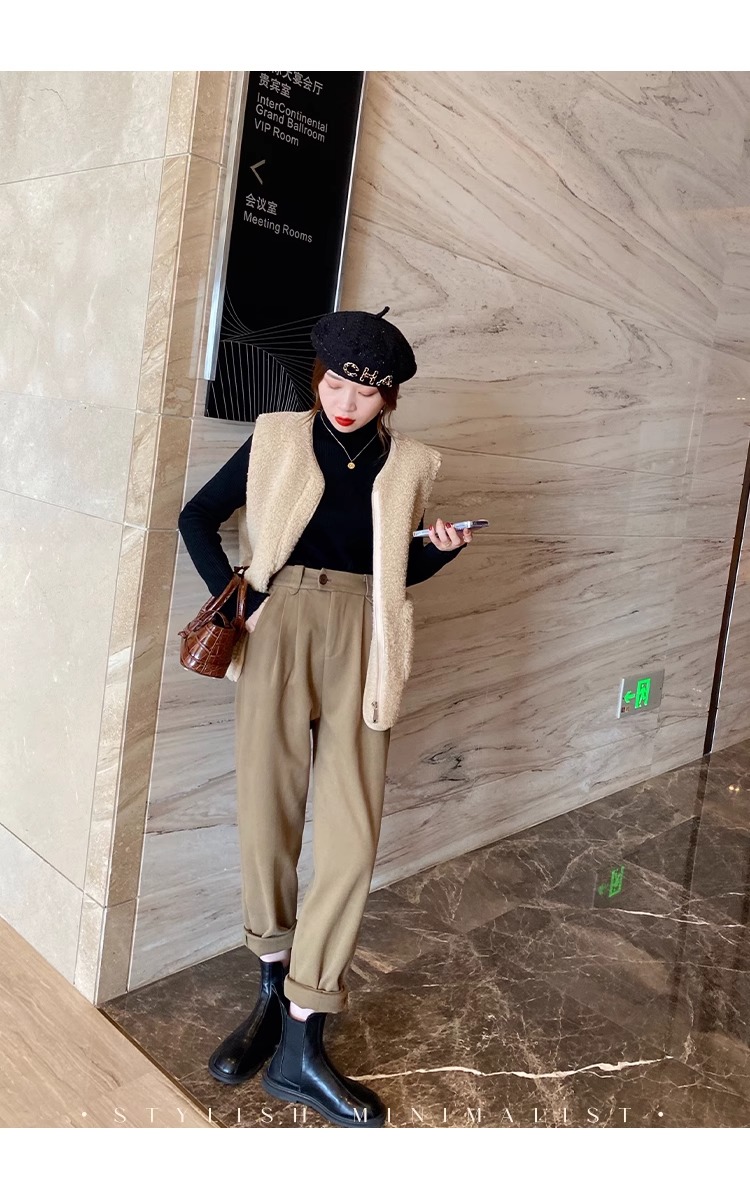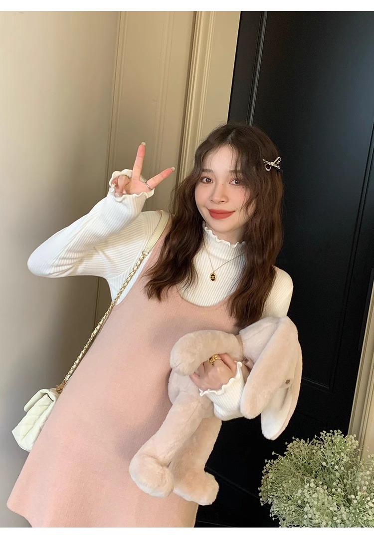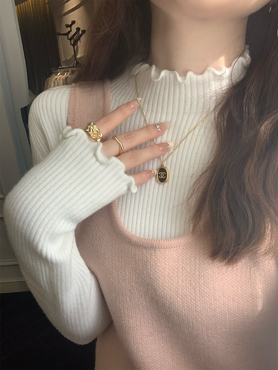 MY14795# 一体绒加绒加厚打底衫女高级感木耳边毛衣内搭冬季半高领毛衣女裝貨源服裝批發