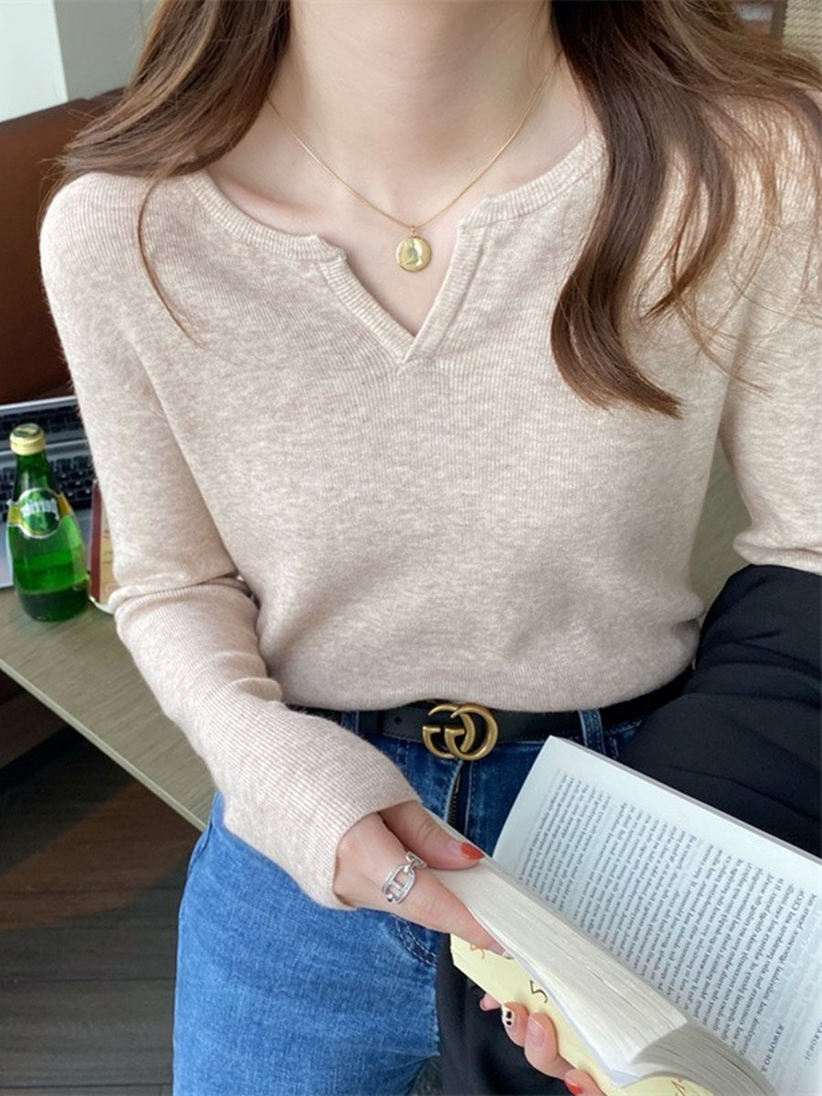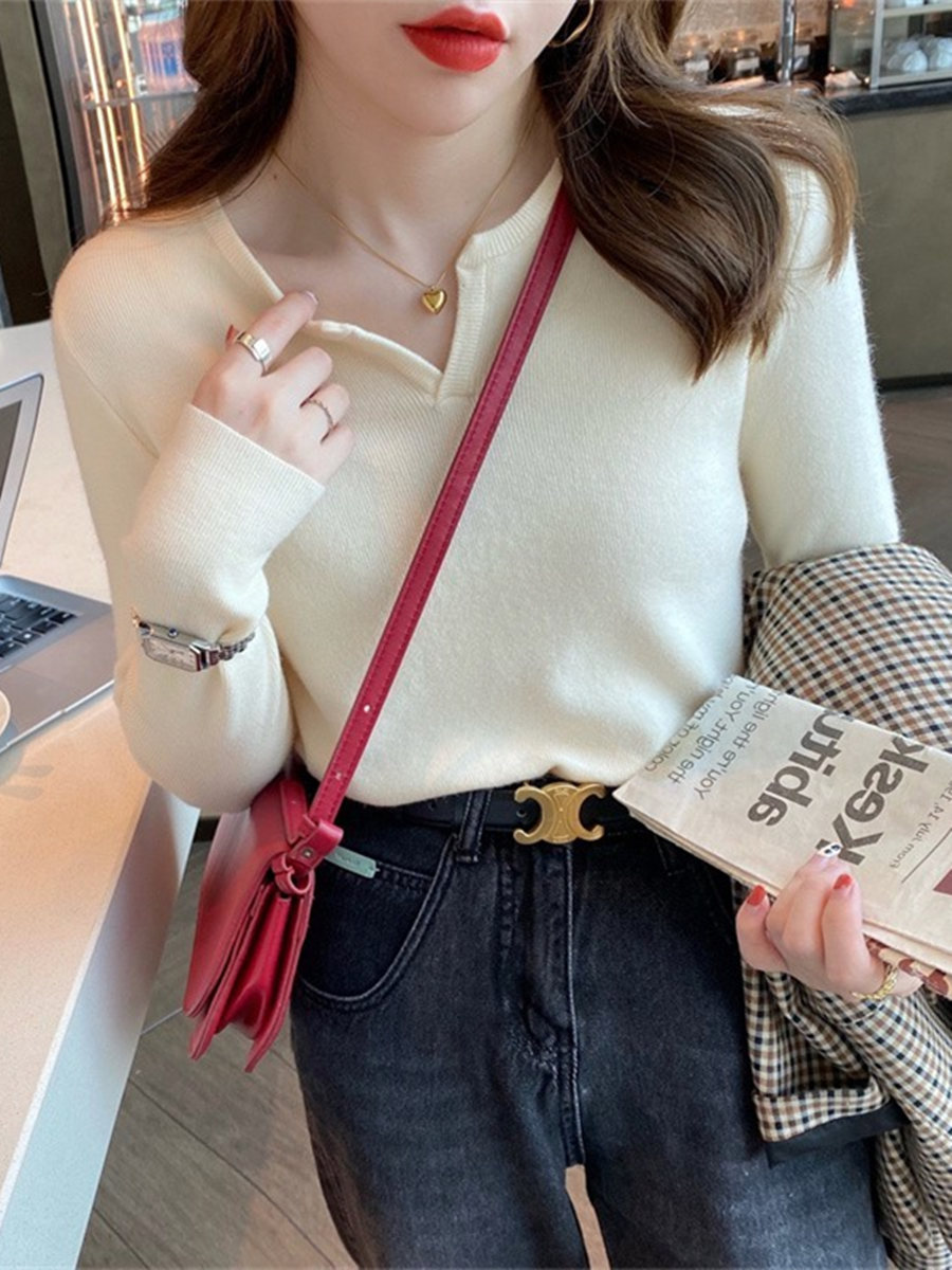 MY14796# 白色针织打底衫新款上衣小香风西装内搭v领秋冬毛衣女裝貨源服裝批發
