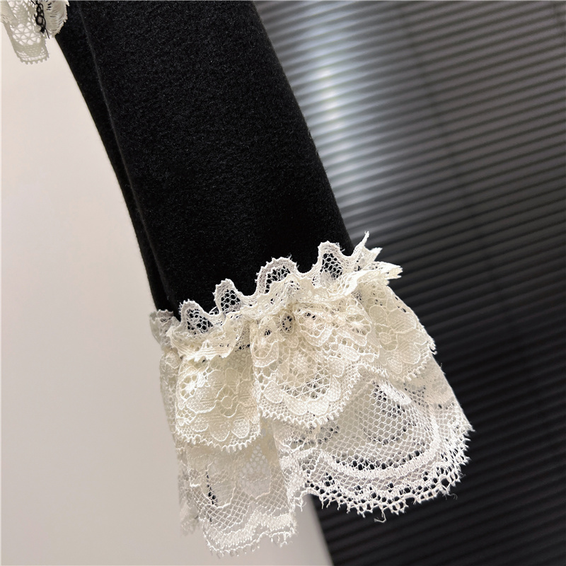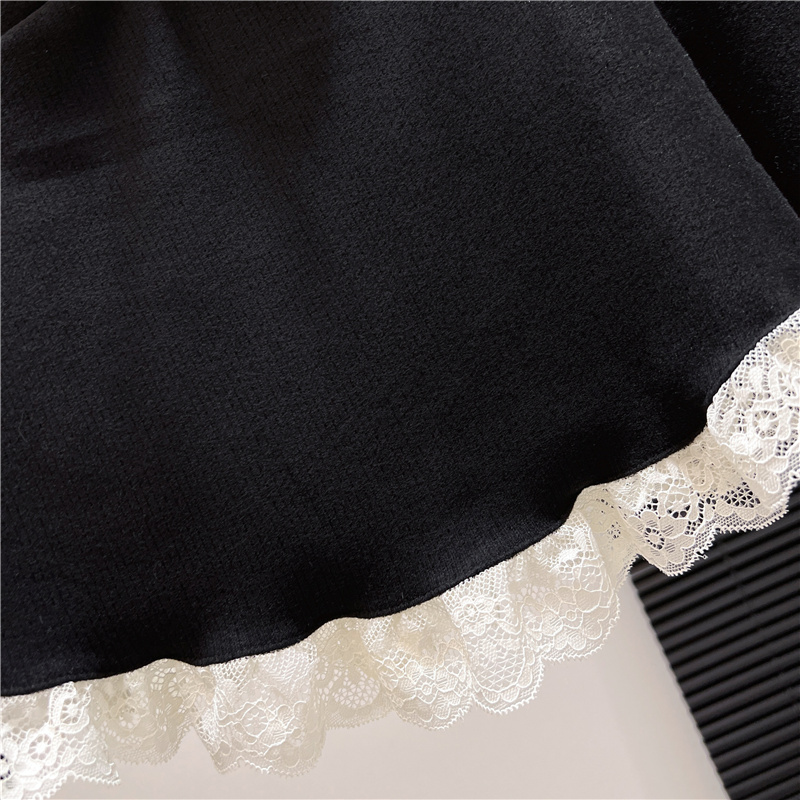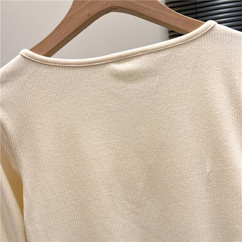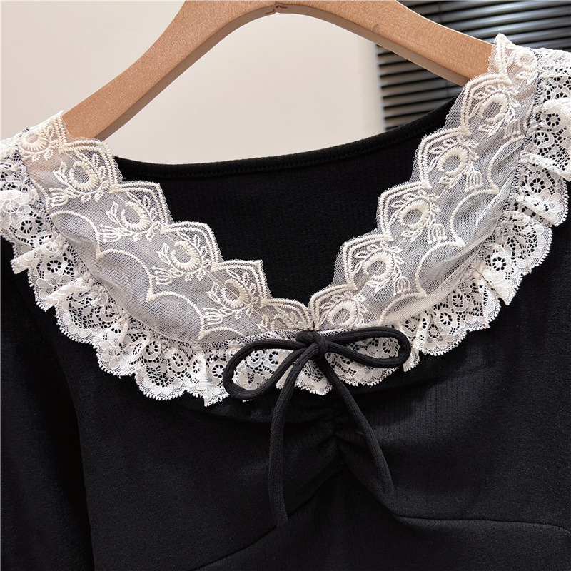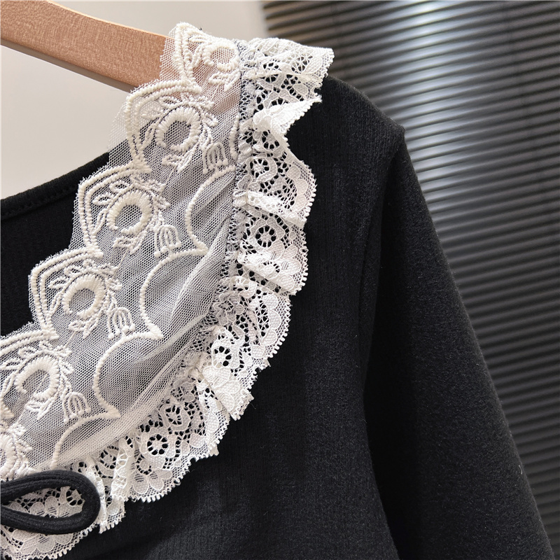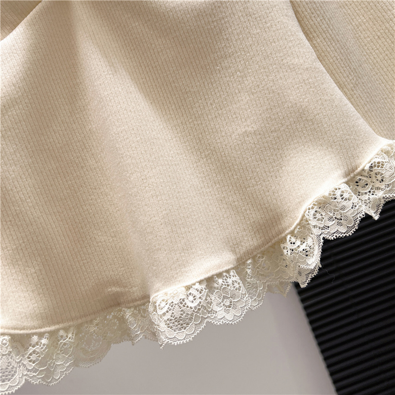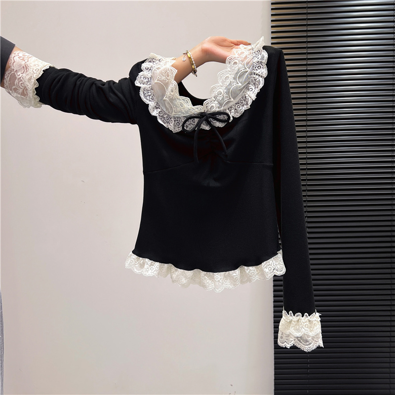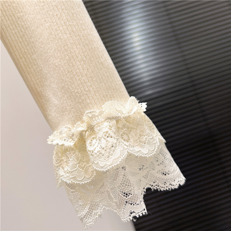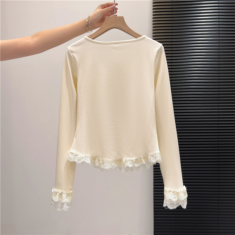 MY14805# 纯欲蝴蝶结蕾丝v领磨毛打底衫女秋冬修身绝美上衣设计感小众女裝貨源服裝批發