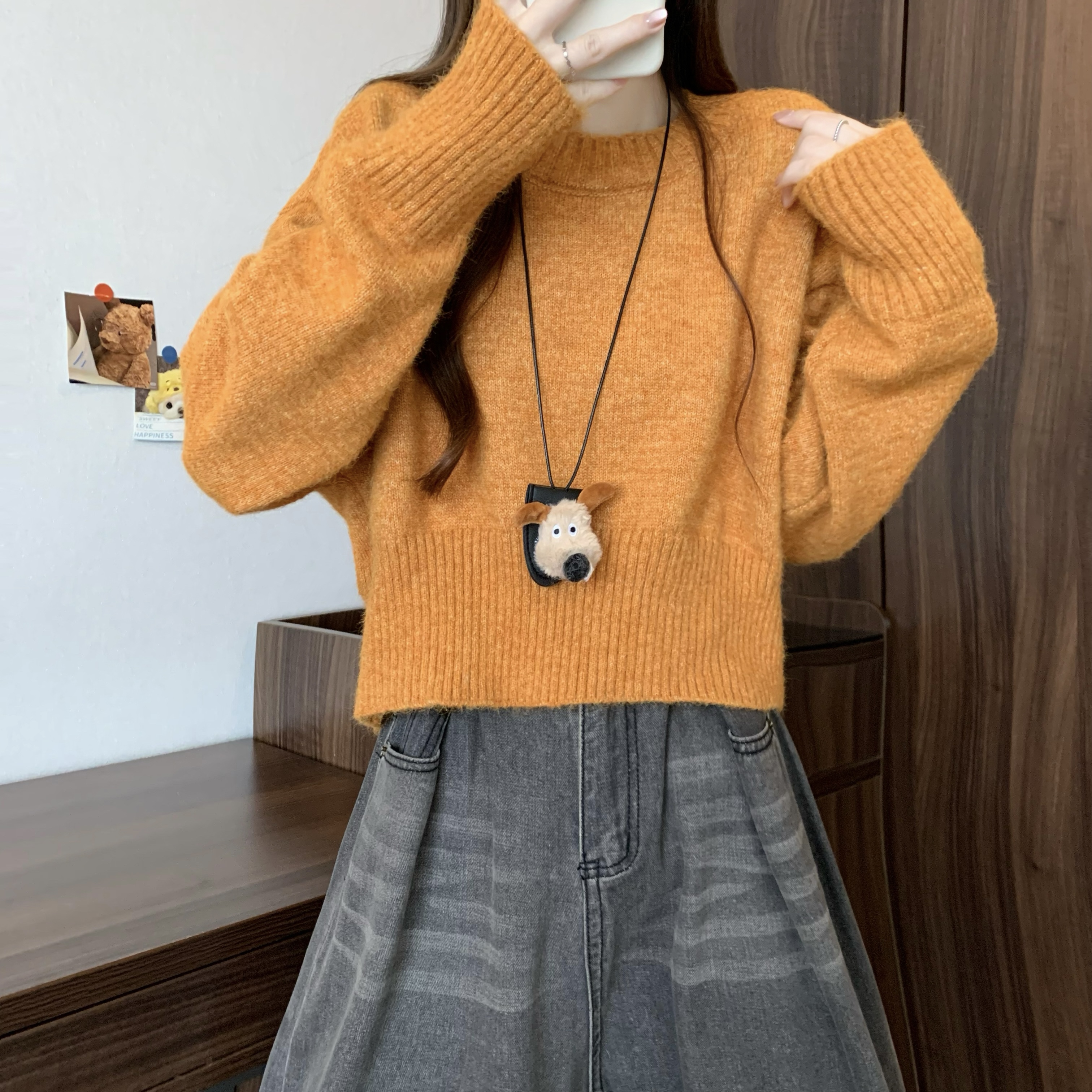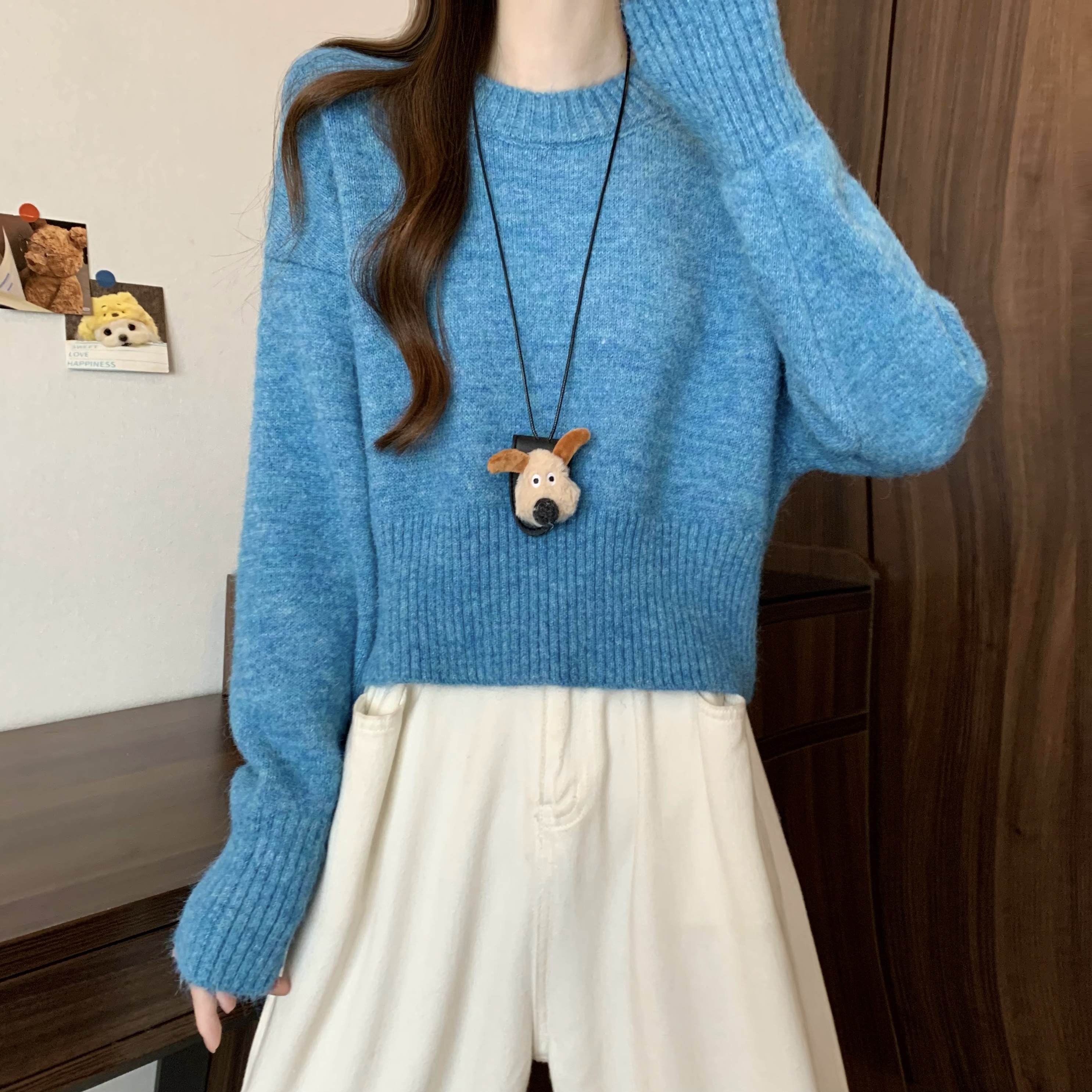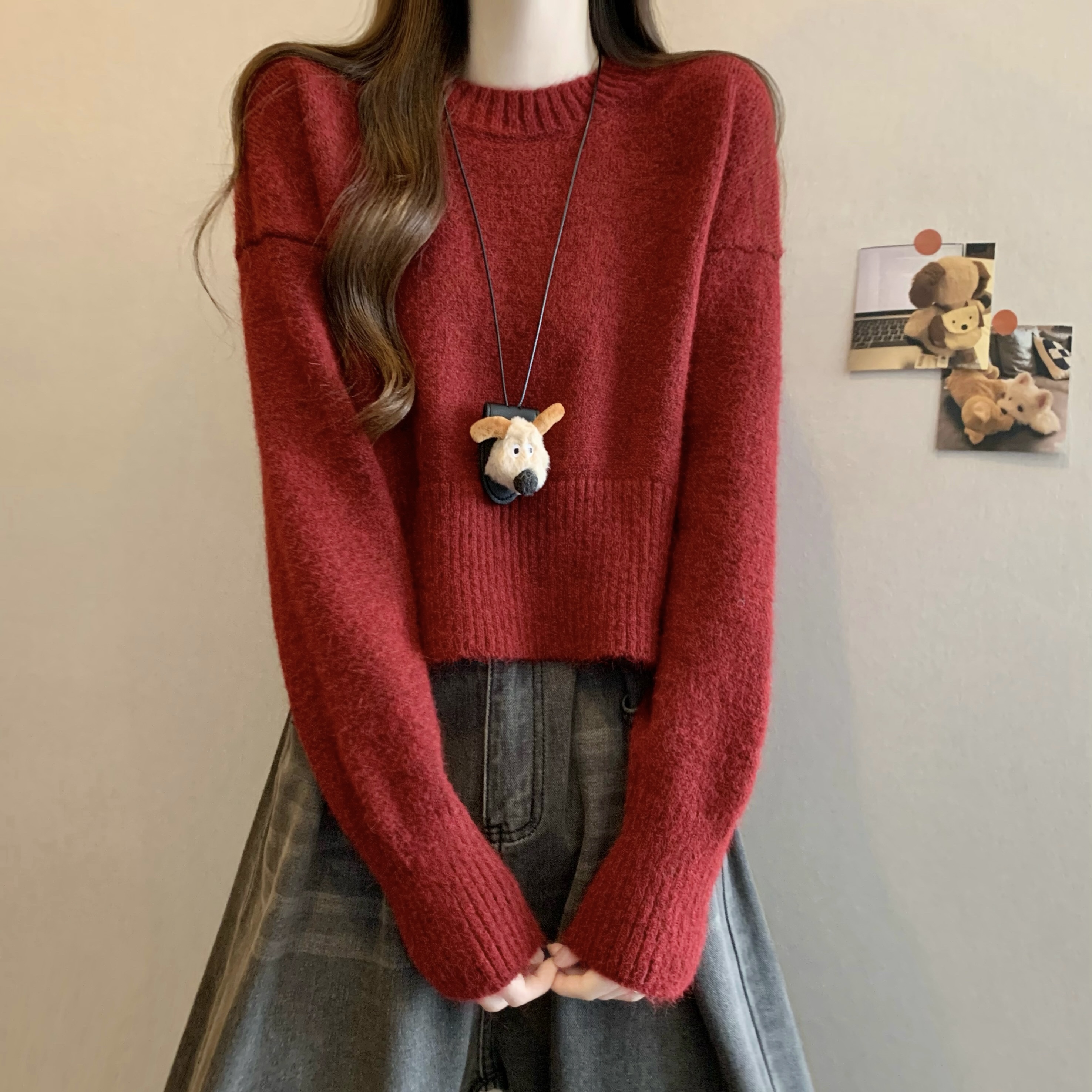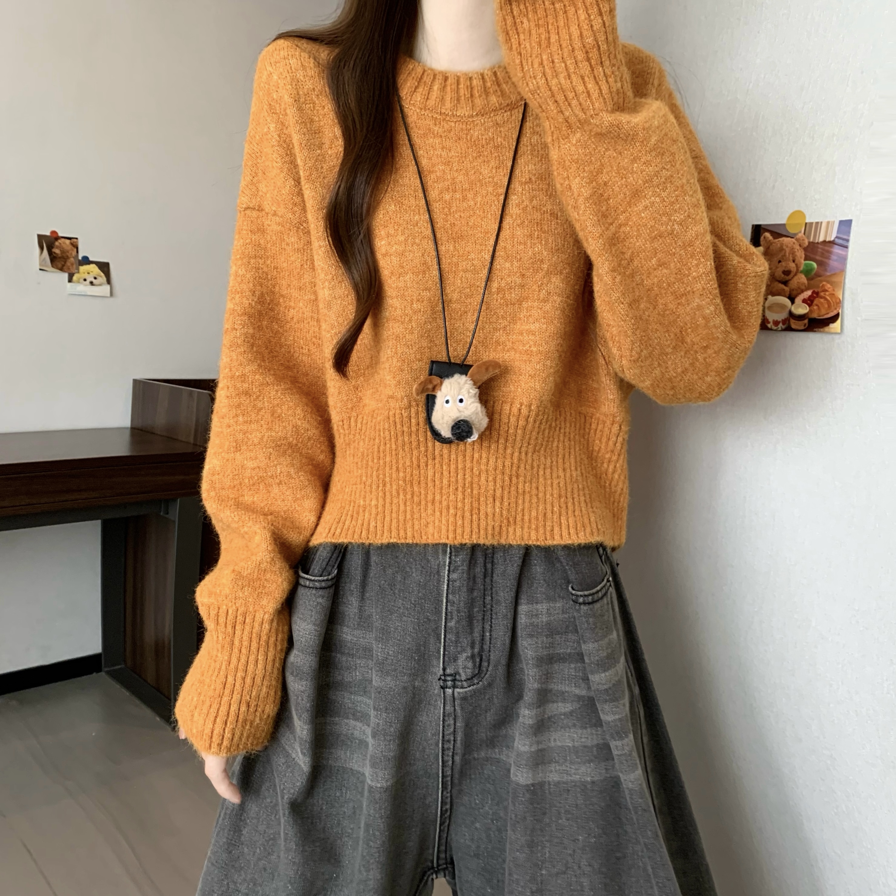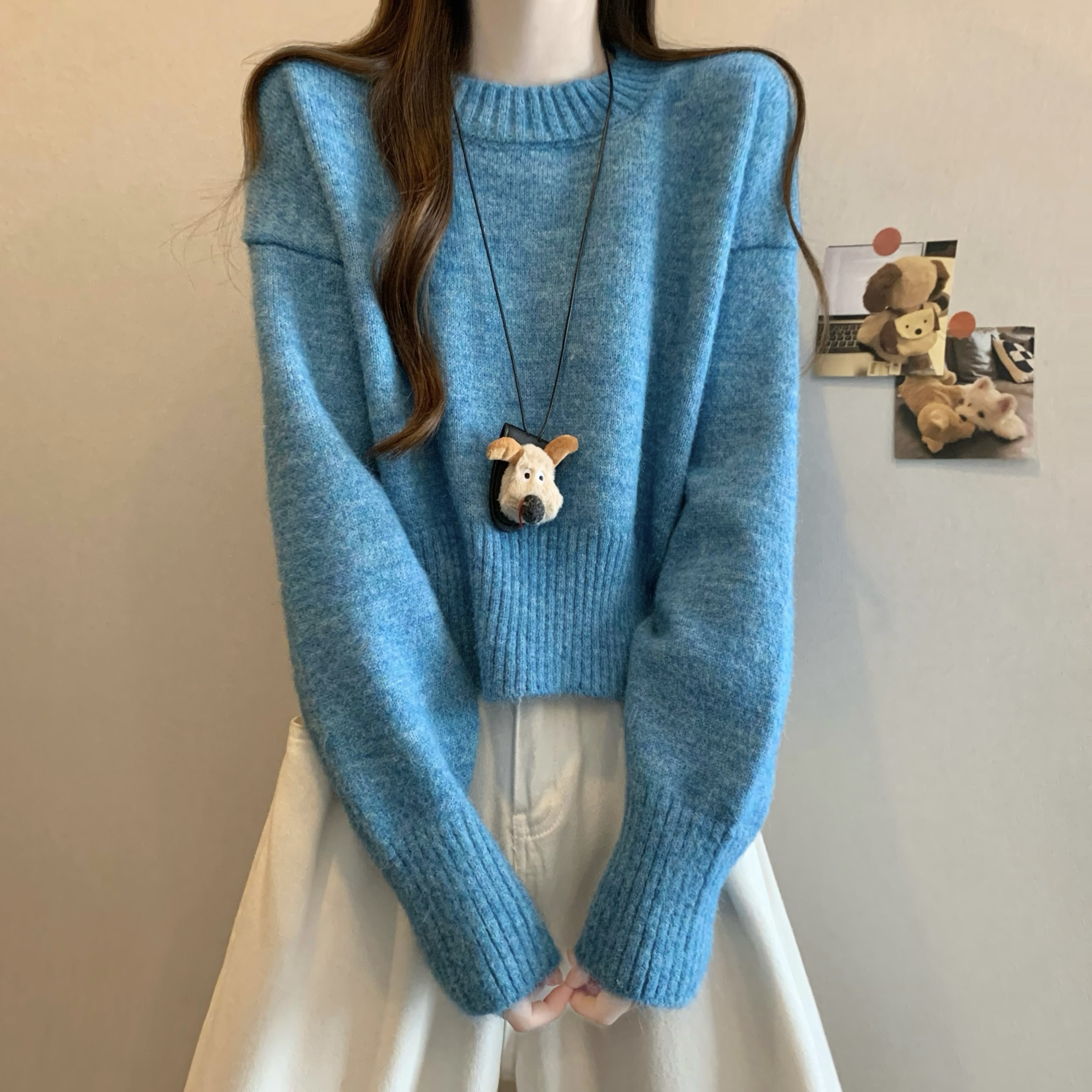 MY14809# 新版韩风设计感纯色圆领针织短款毛衣女裝貨源服裝批發