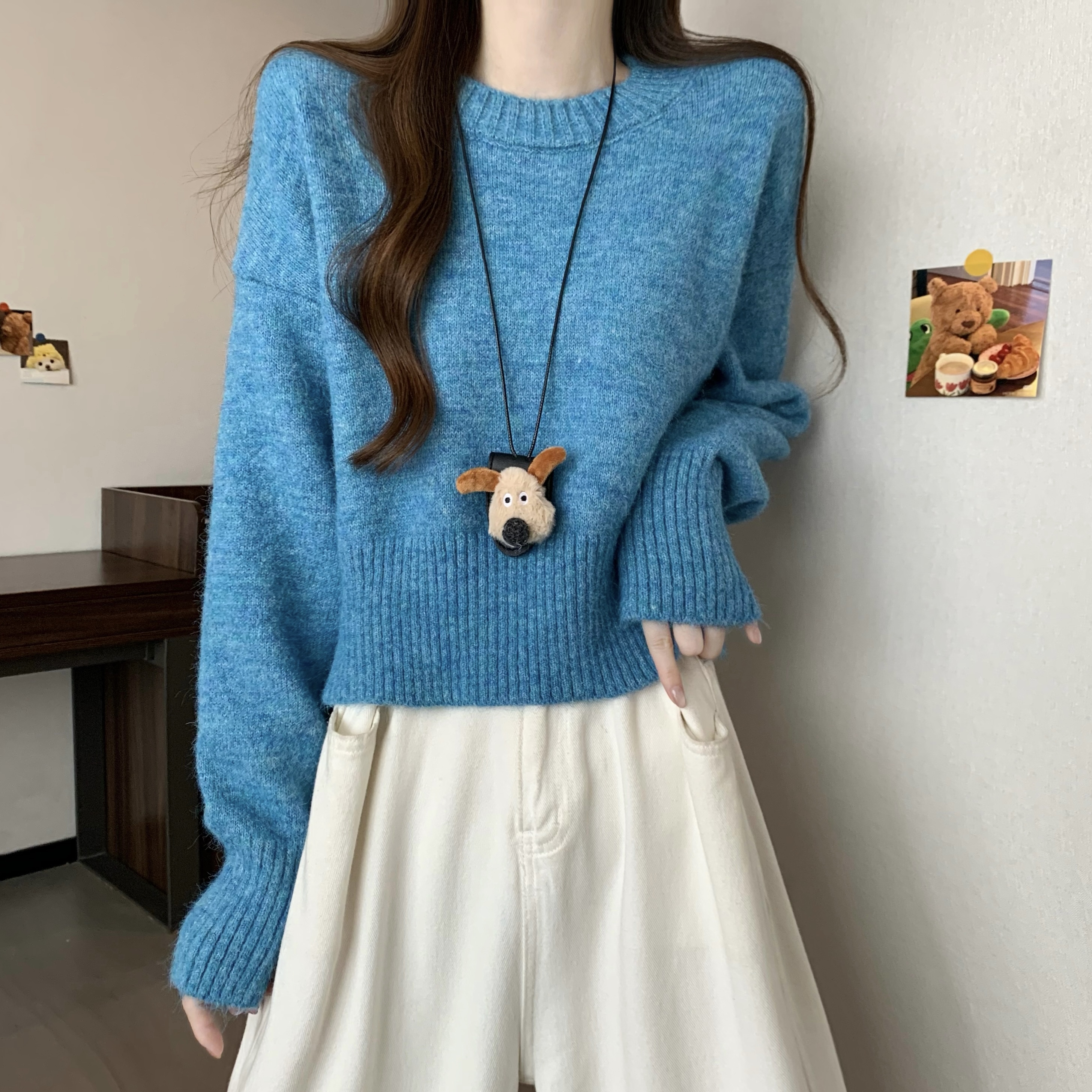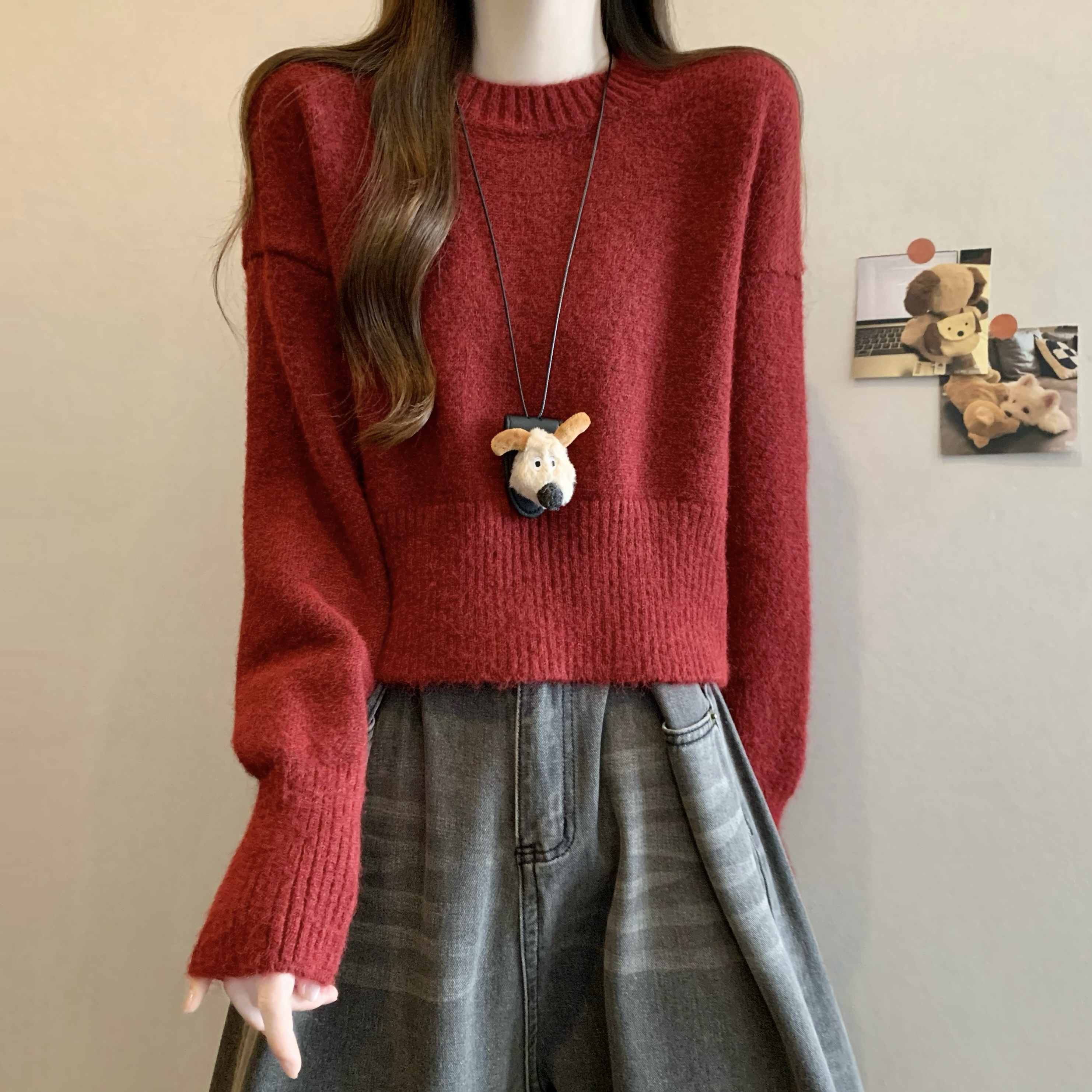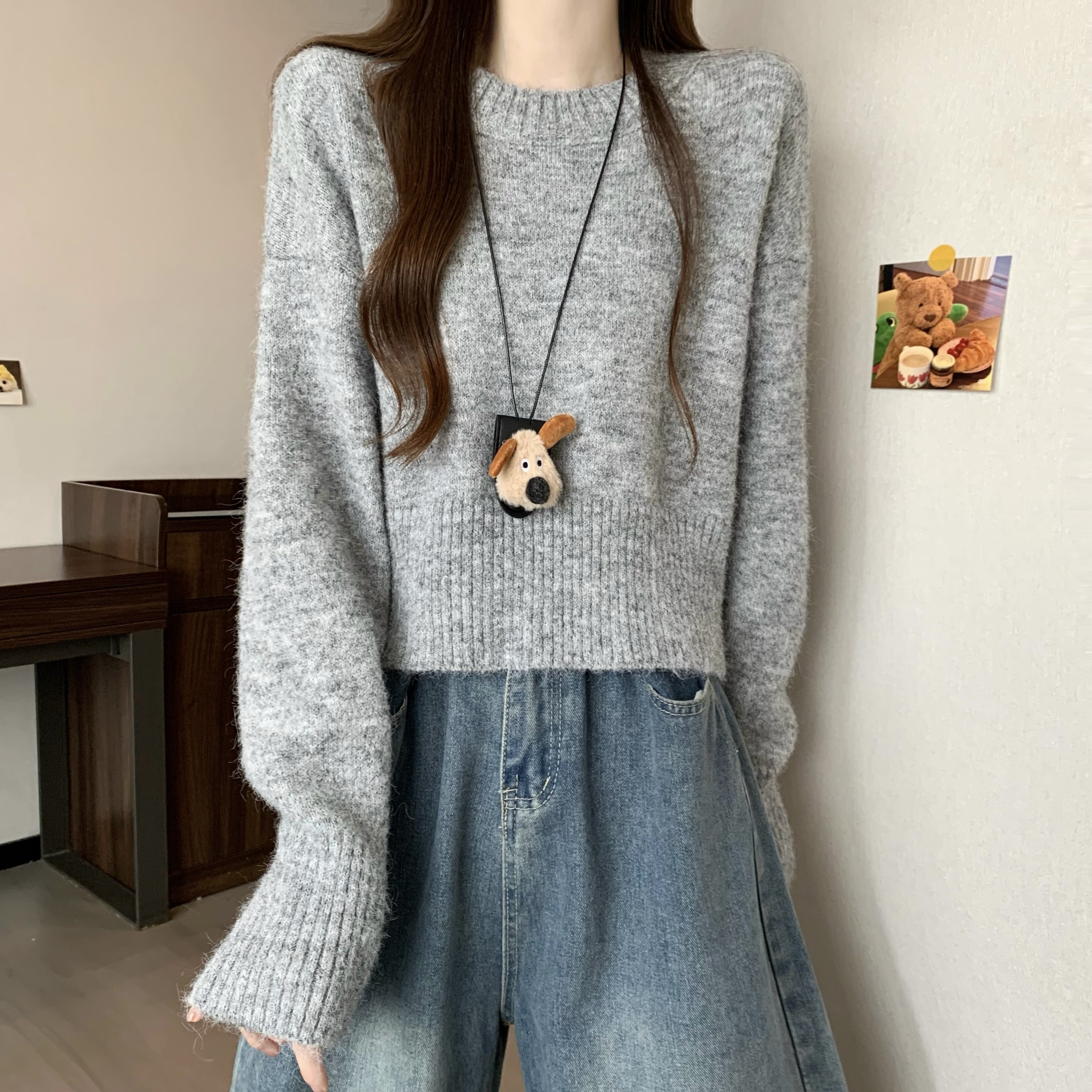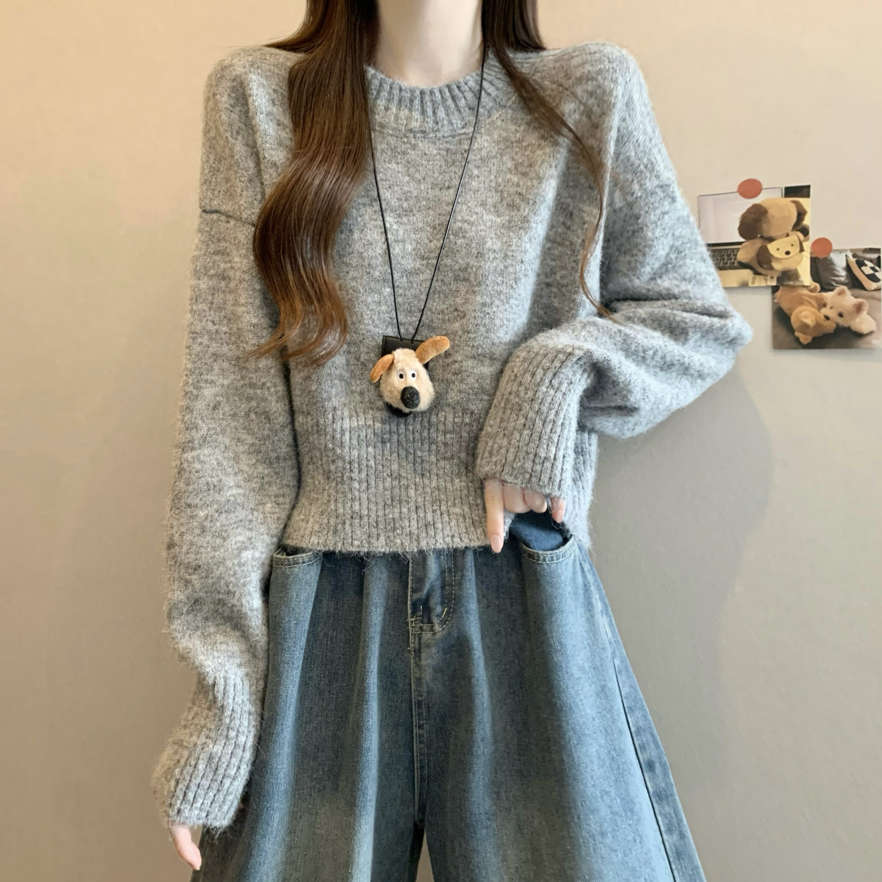 MY14809# 新版韩风设计感纯色圆领针织短款毛衣女裝貨源服裝批發