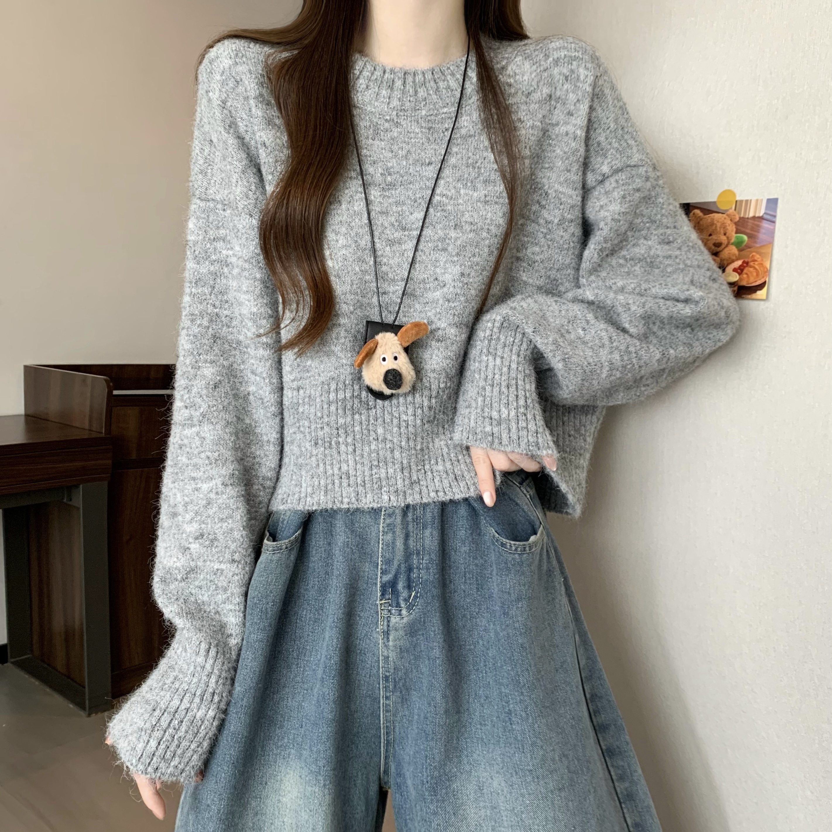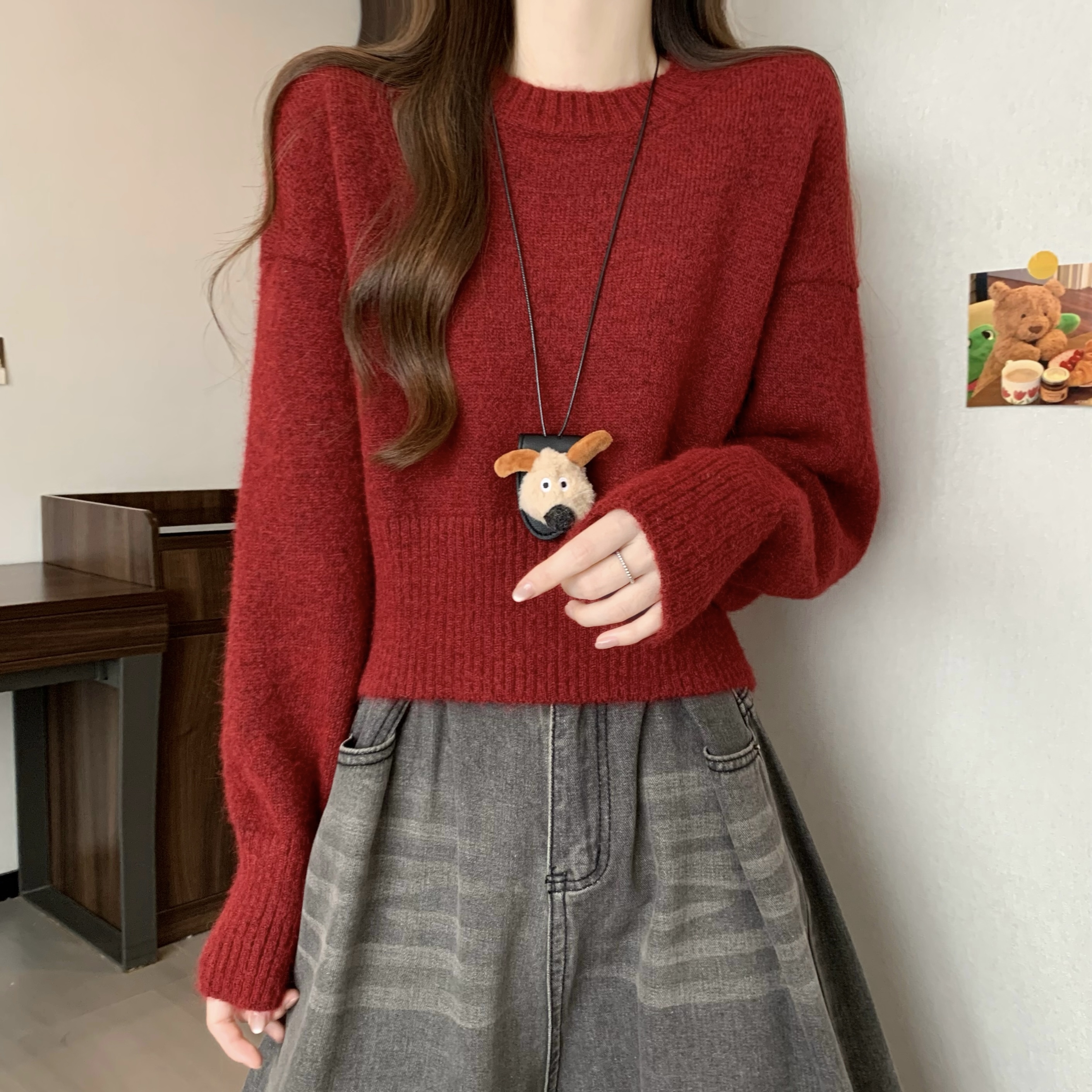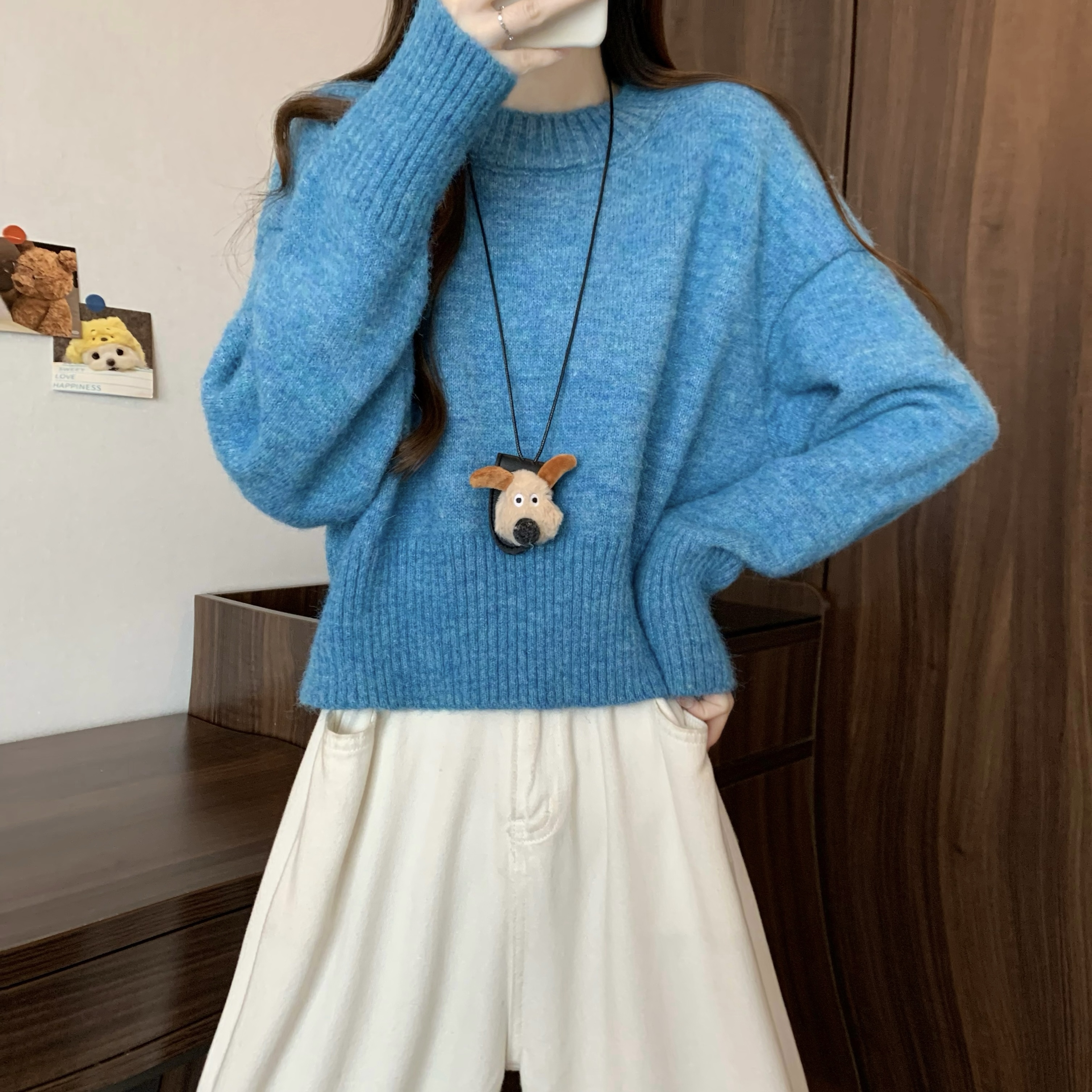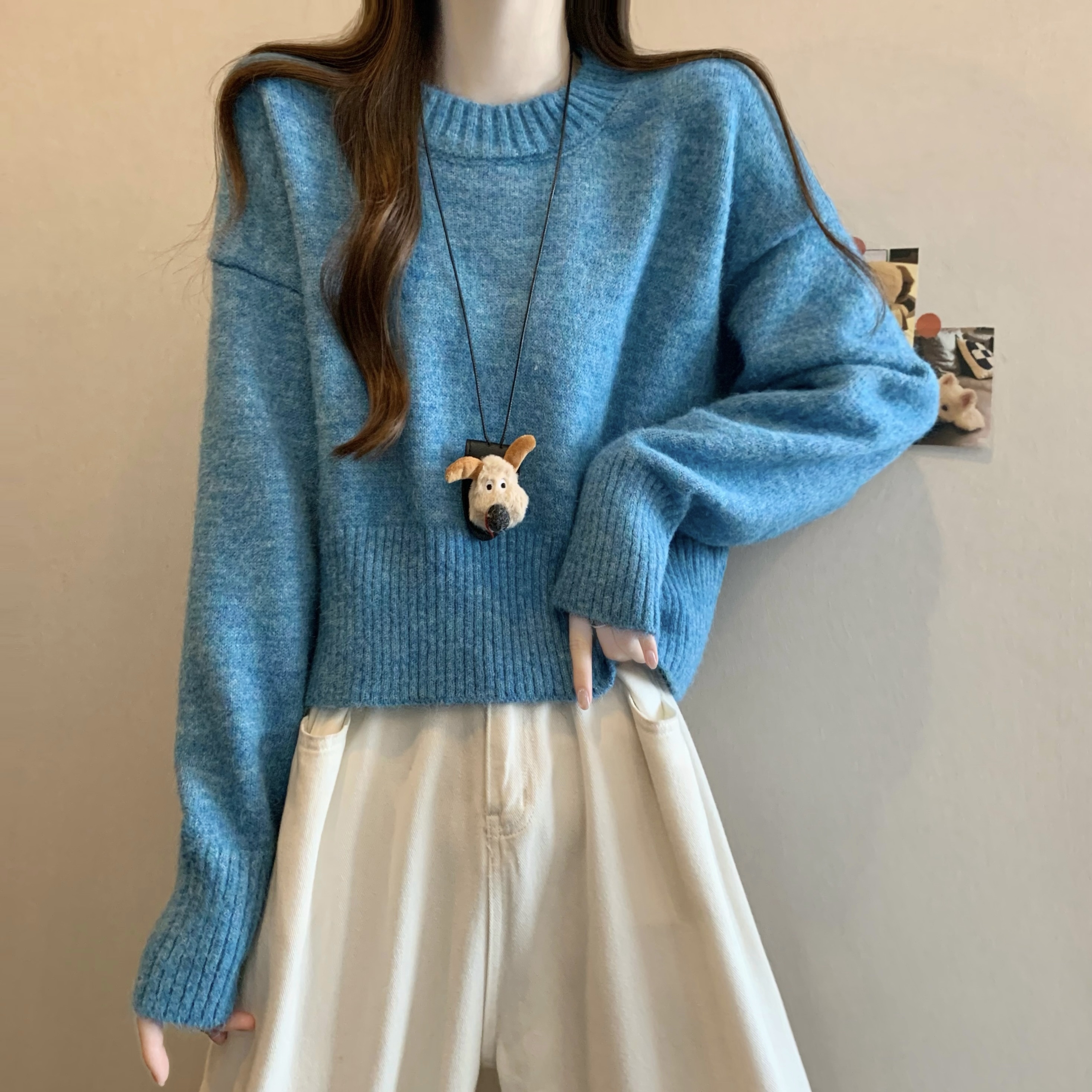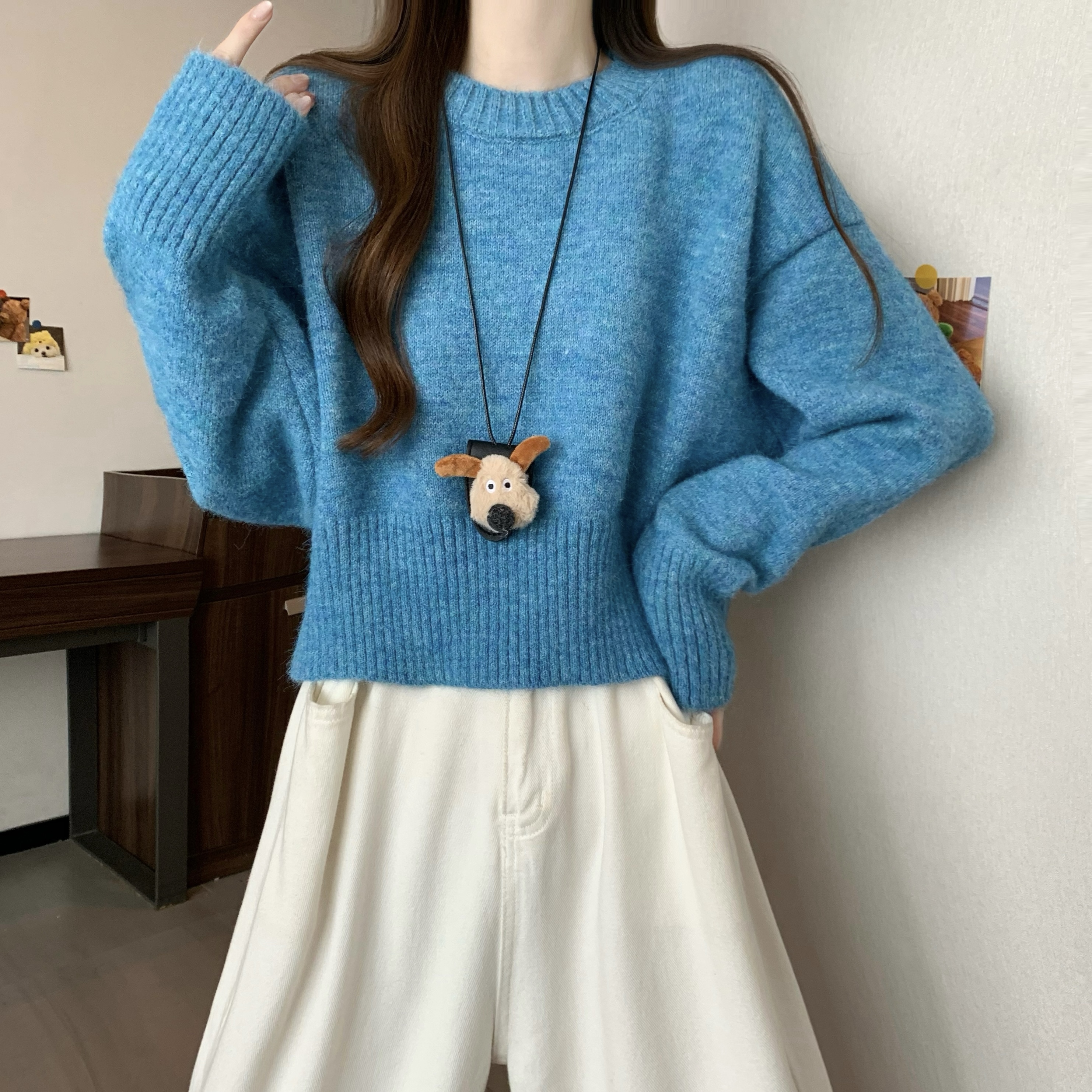 MY14809# 新版韩风设计感纯色圆领针织短款毛衣女裝貨源服裝批發