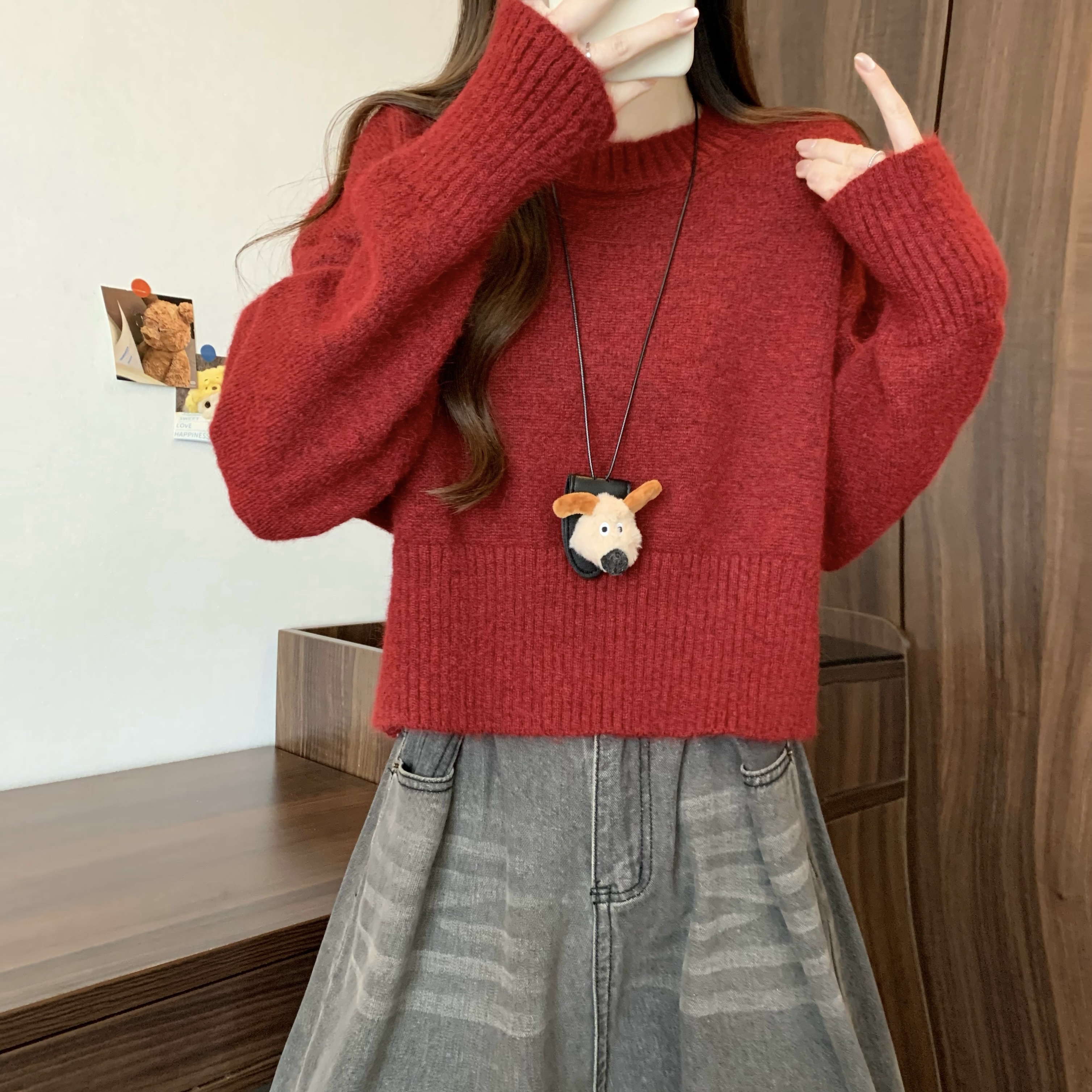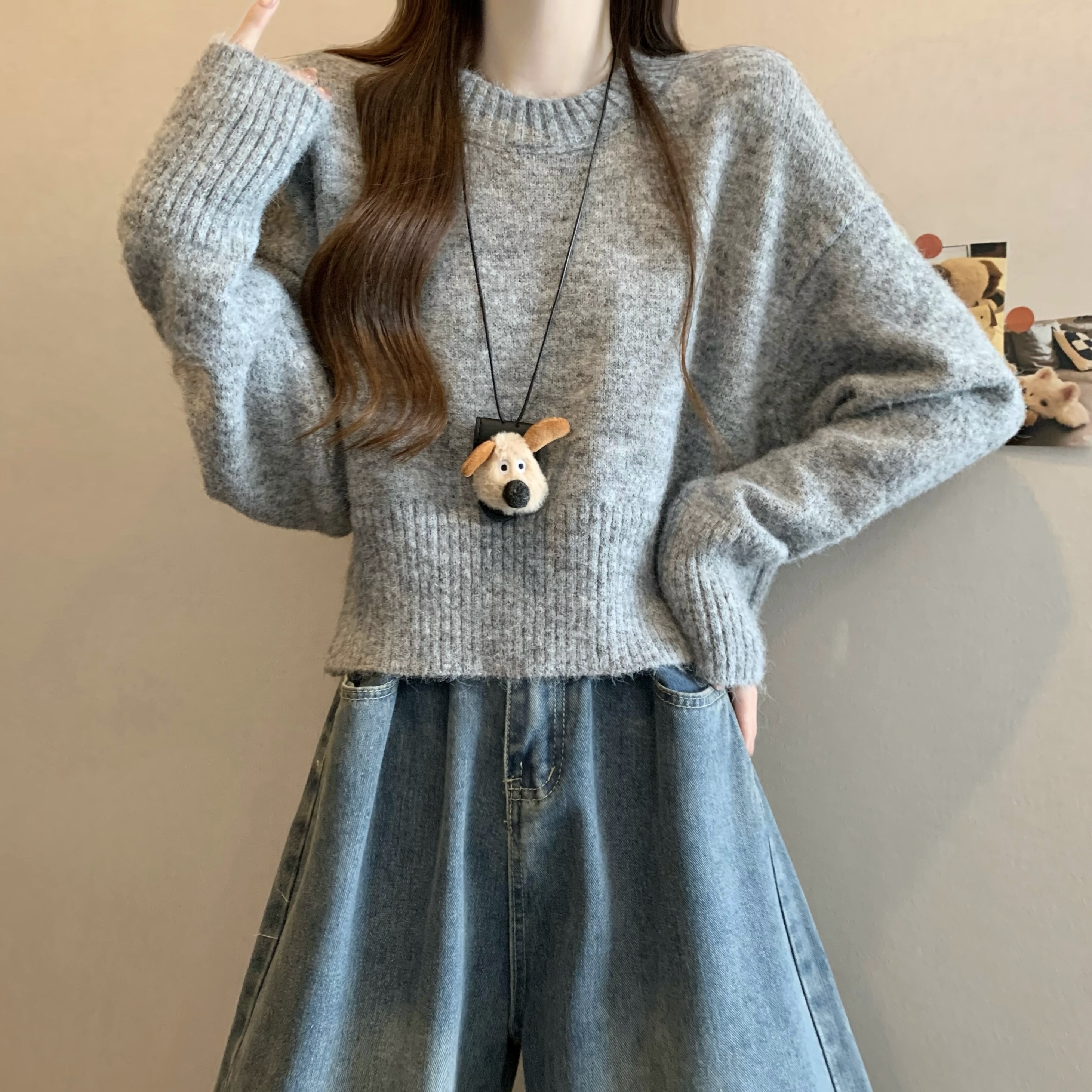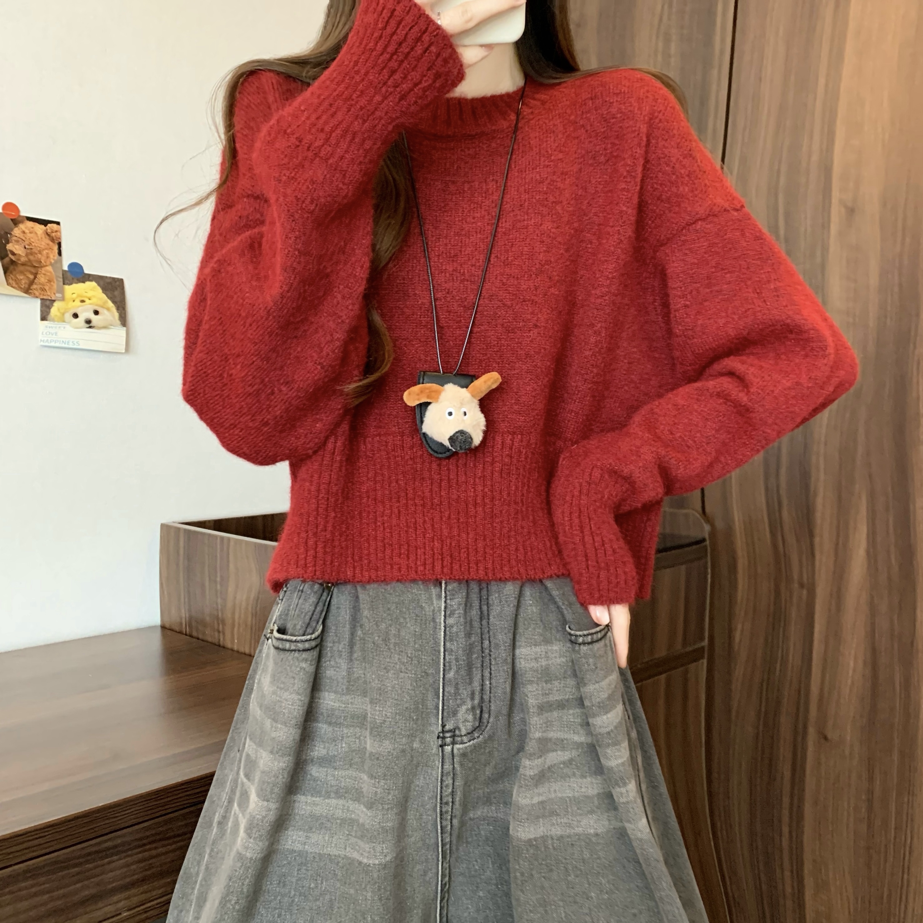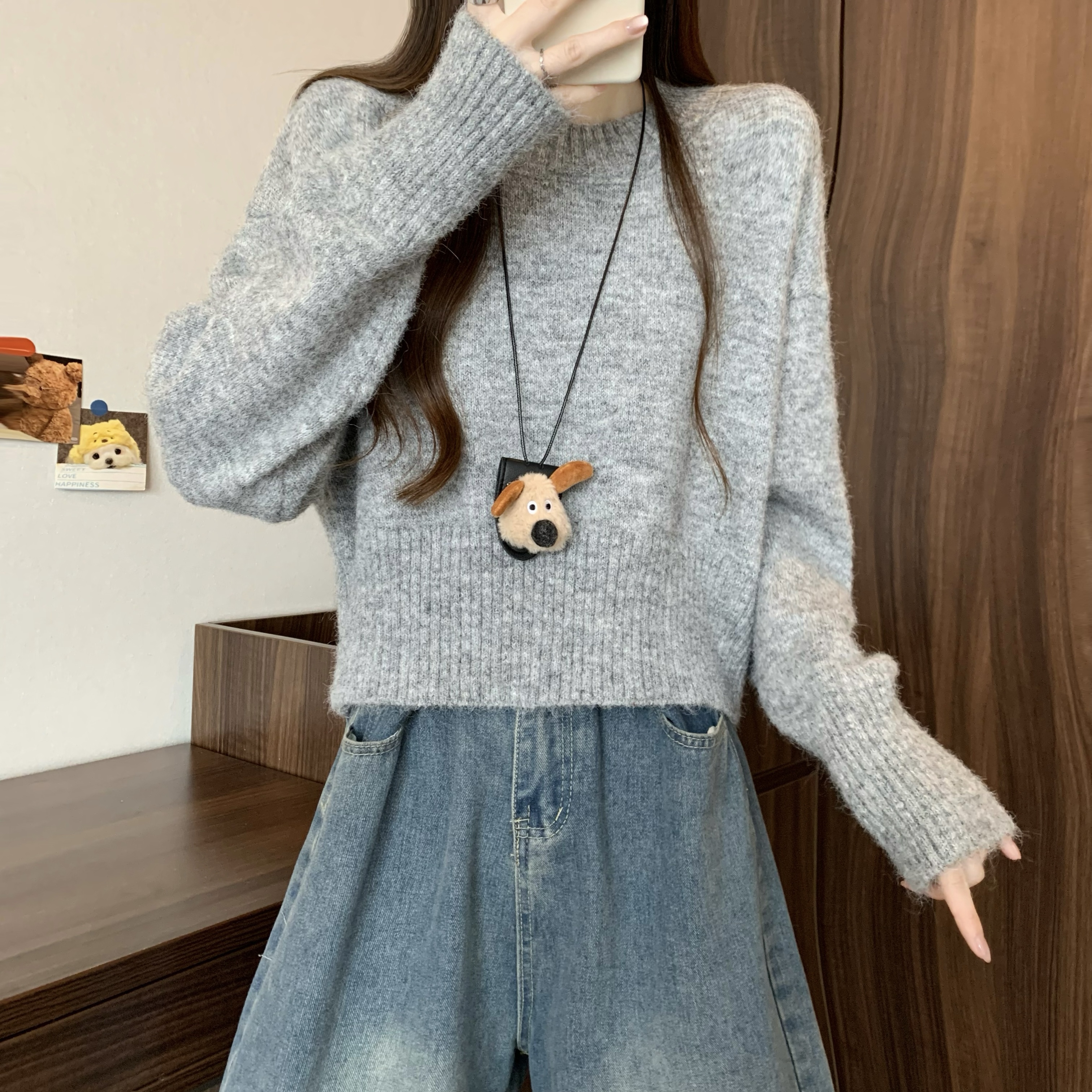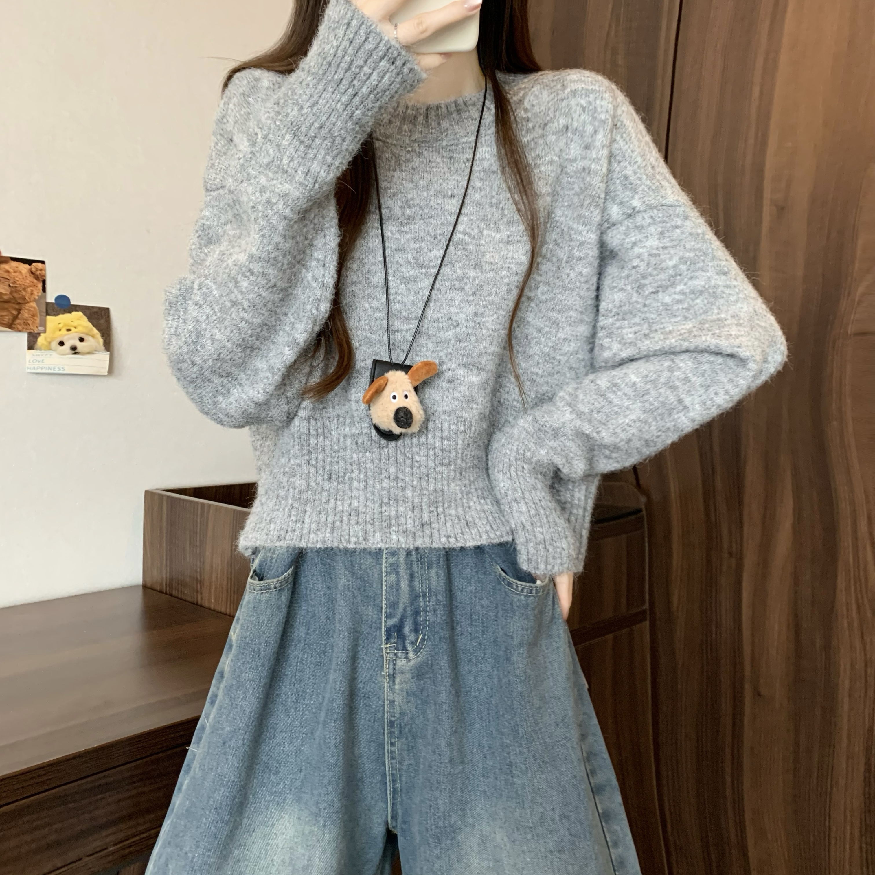 MY14809# 新版韩风设计感纯色圆领针织短款毛衣女裝貨源服裝批發
