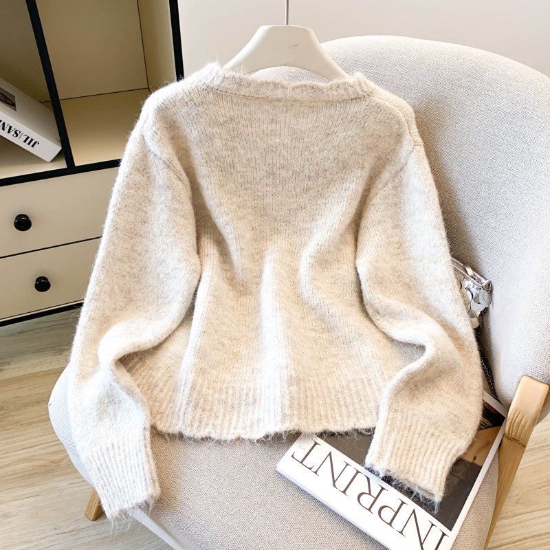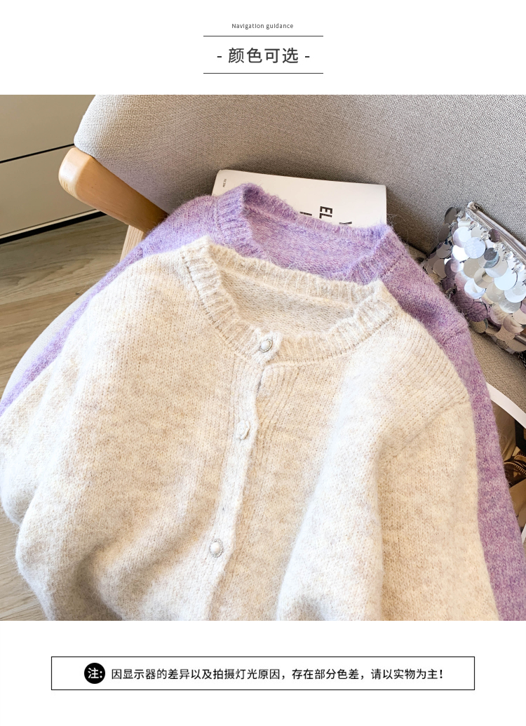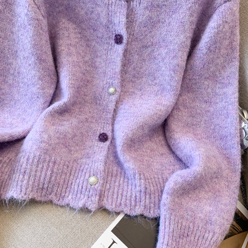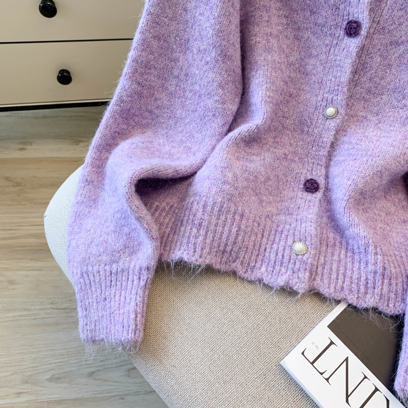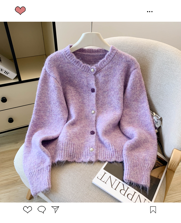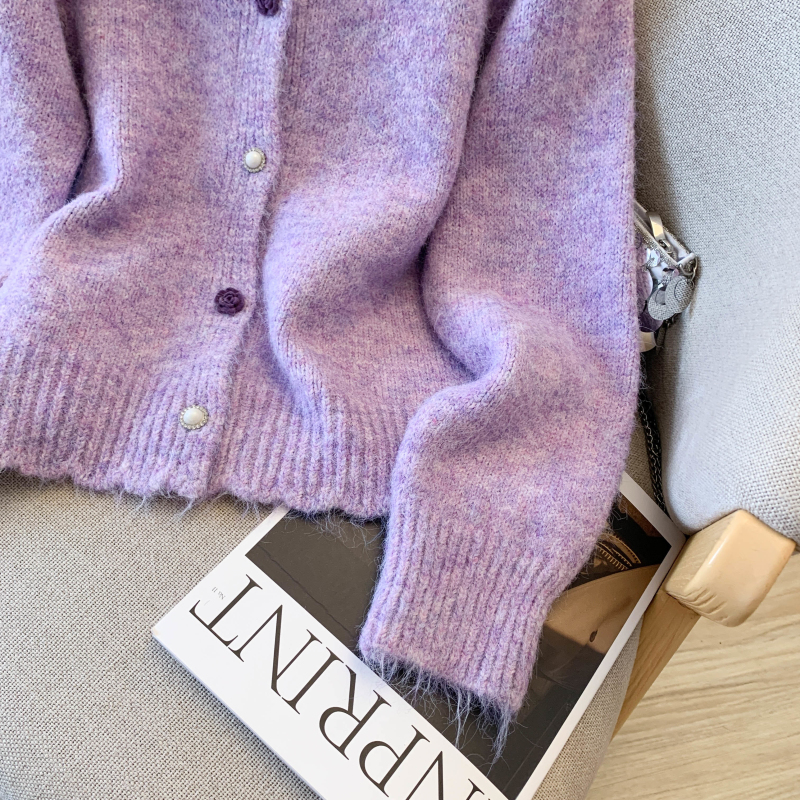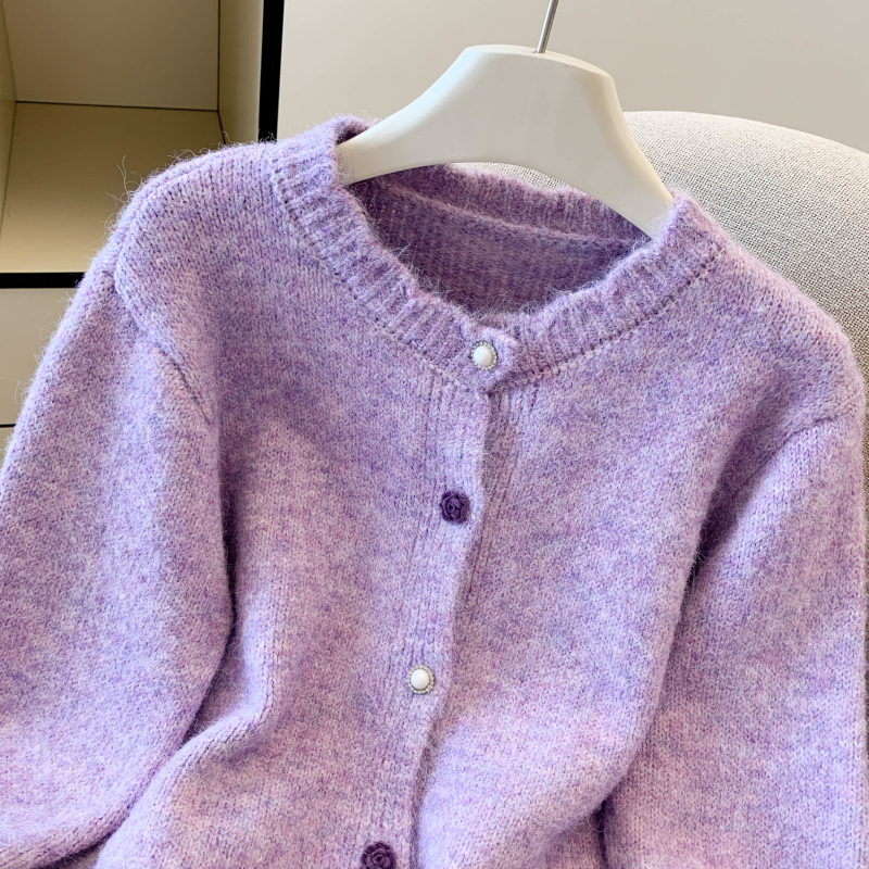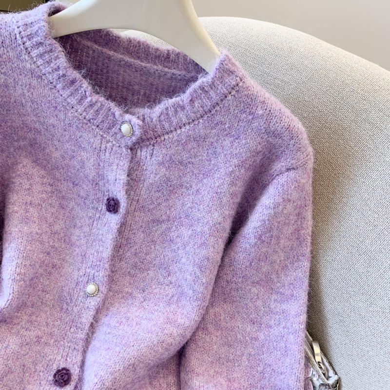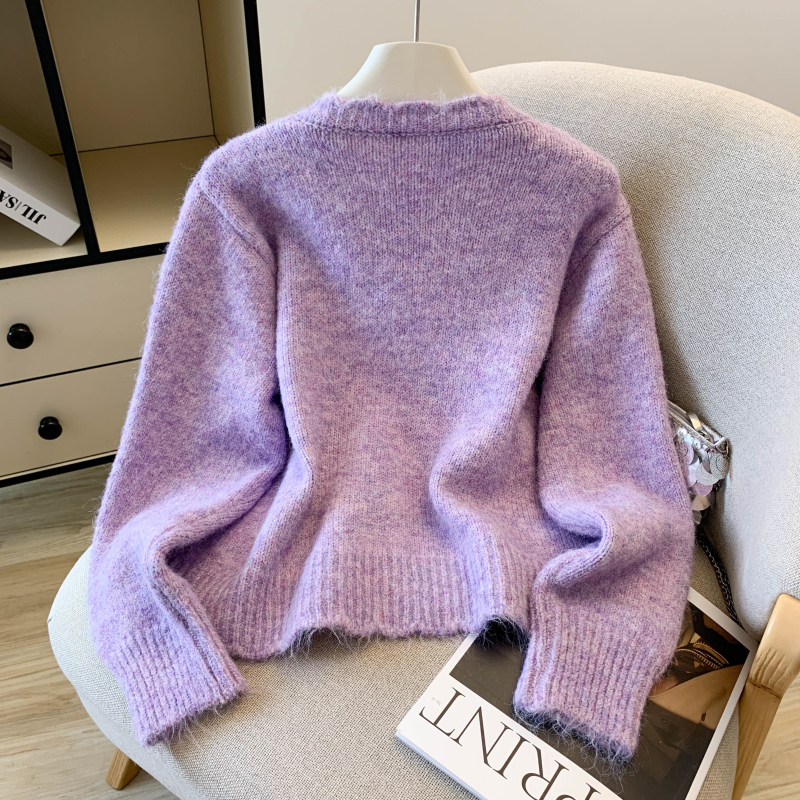 MY14815# 温柔风软糯紫色长袖毛衣女宽松叠穿宽松针织开衫上衣女裝貨源服裝批發