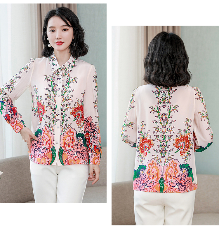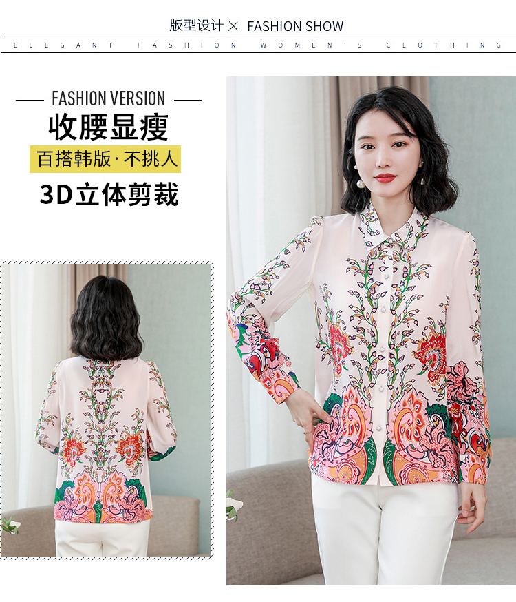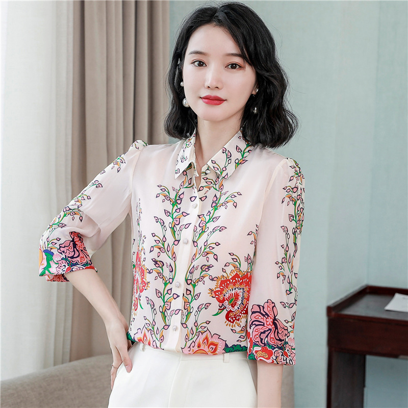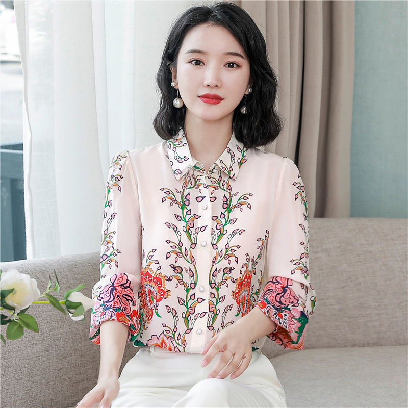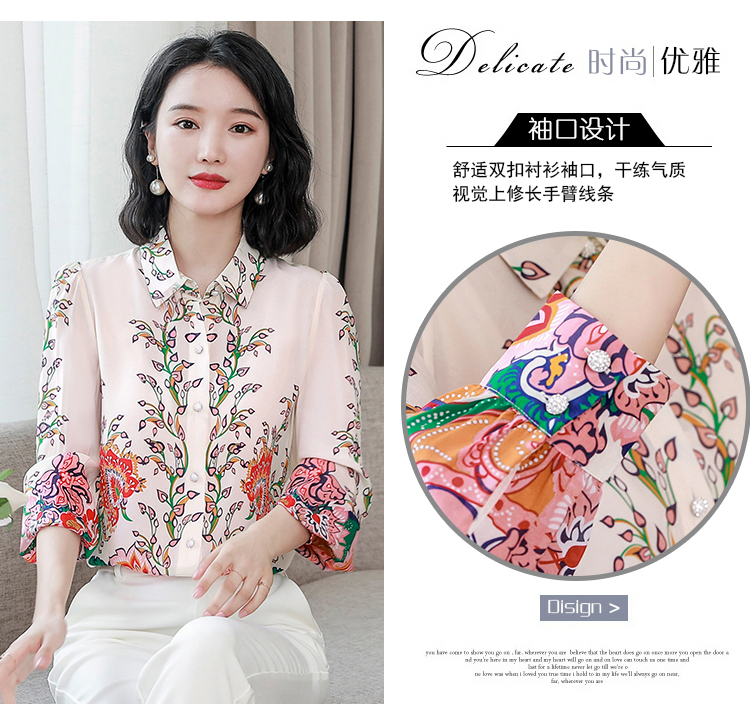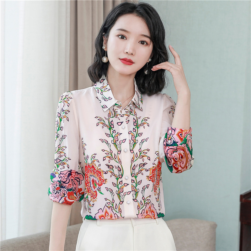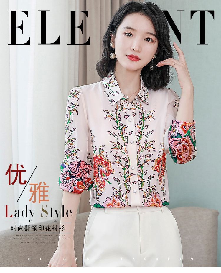MY14830# 撞色印花真丝衬衫女装长袖新款法式时尚高端桑蚕丝上衣女裝貨源服裝批發