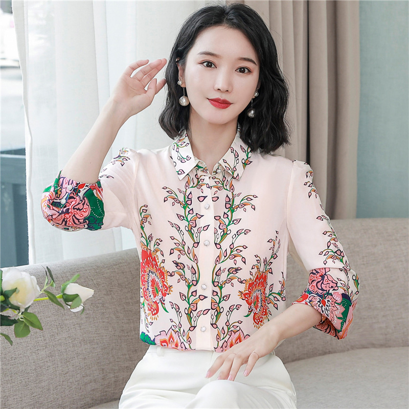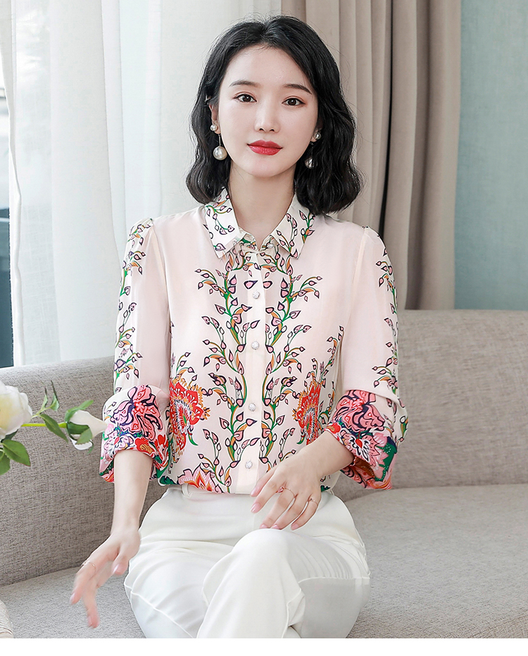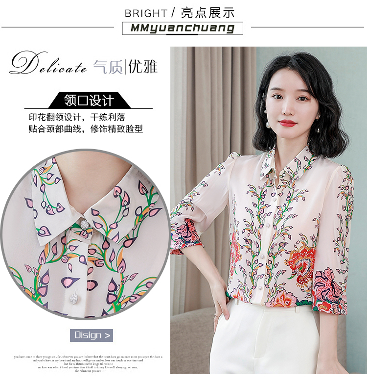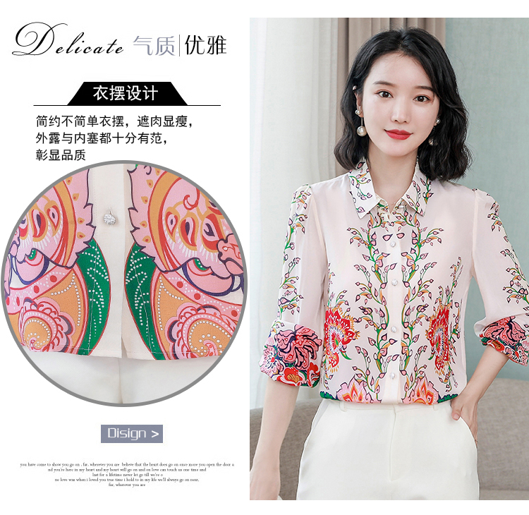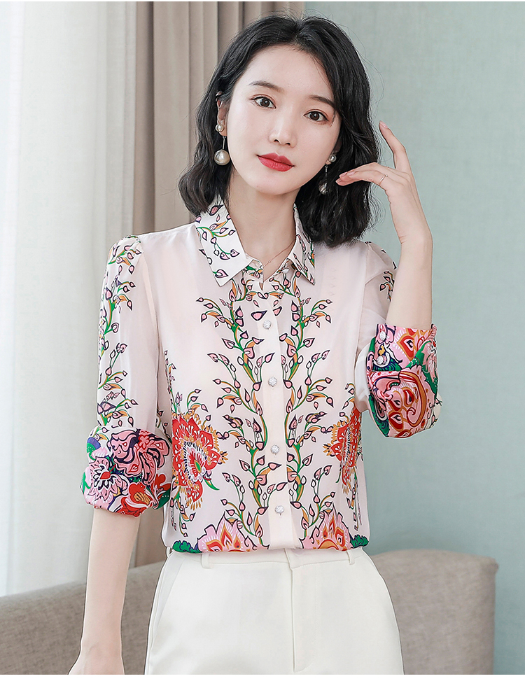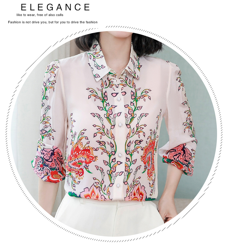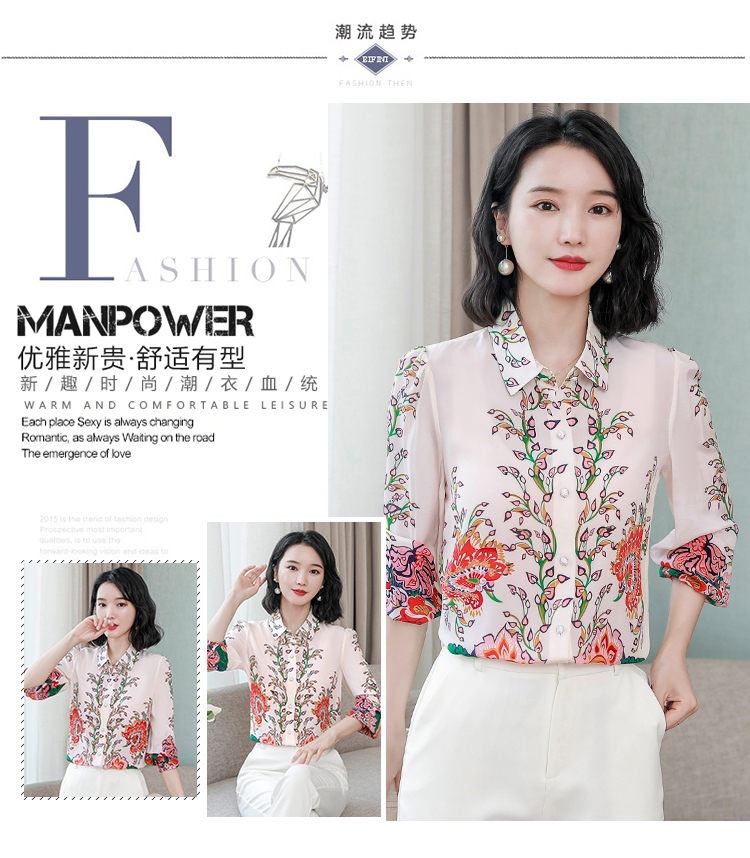 MY14830# 撞色印花真丝衬衫女装长袖新款法式时尚高端桑蚕丝上衣女裝貨源服裝批發