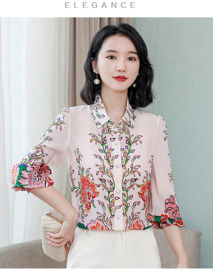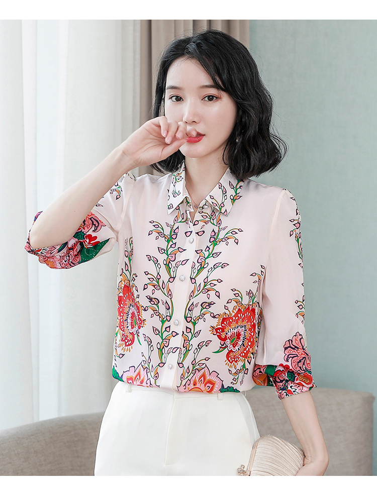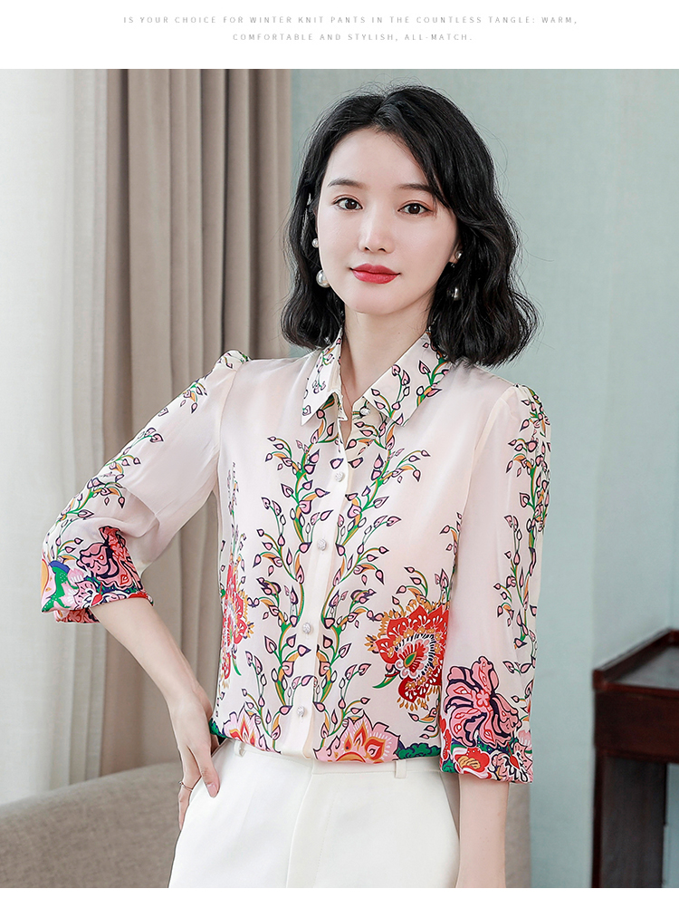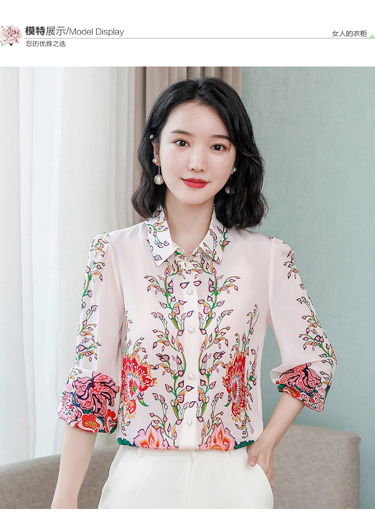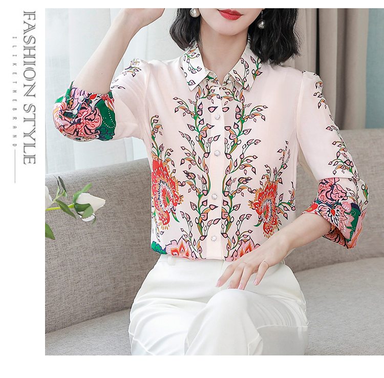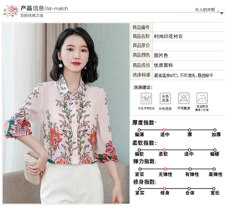 MY14830# 撞色印花真丝衬衫女装长袖新款法式时尚高端桑蚕丝上衣女裝貨源服裝批發