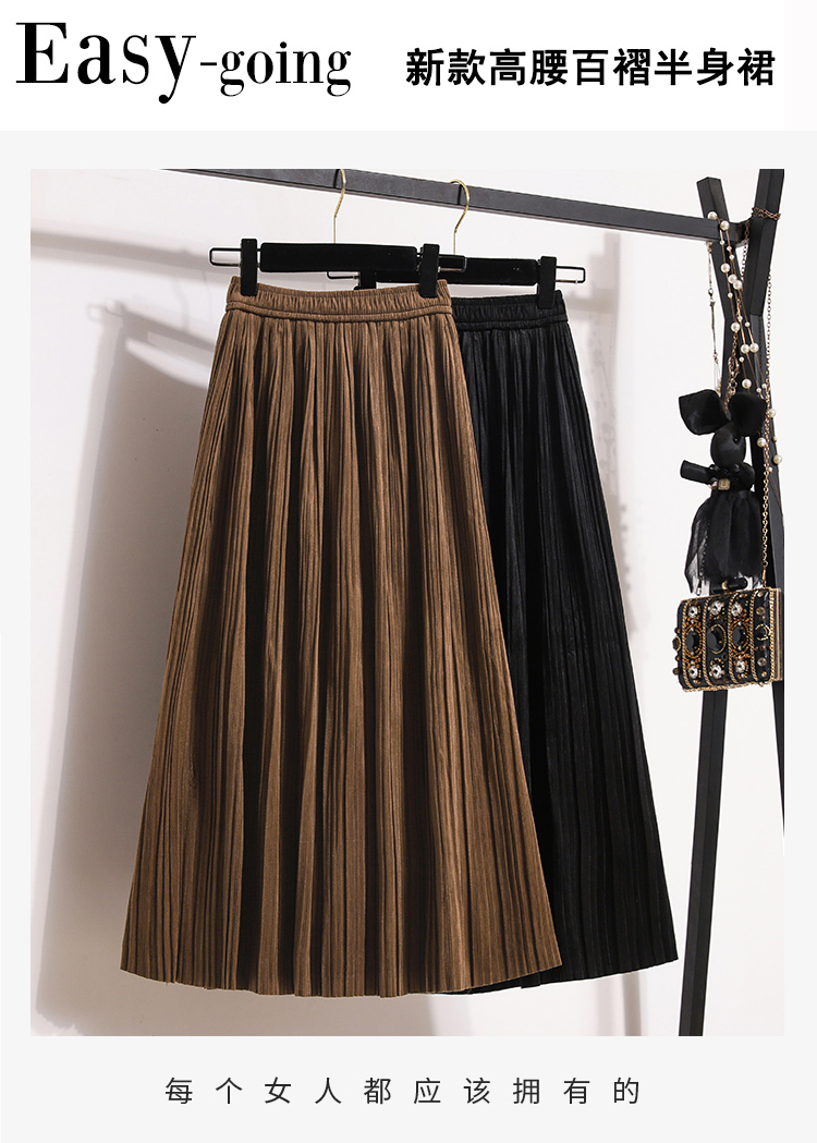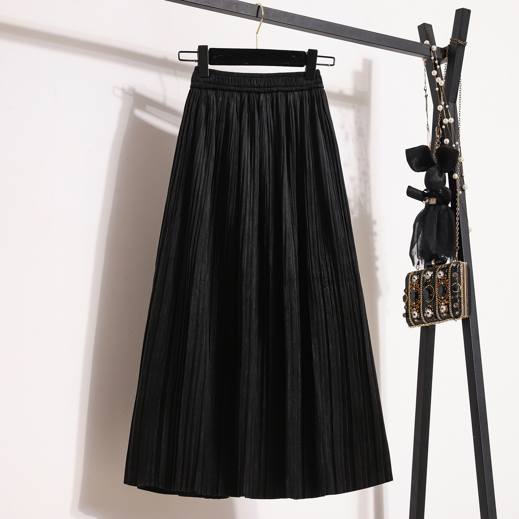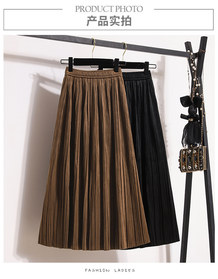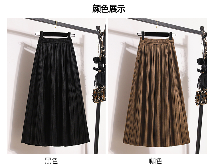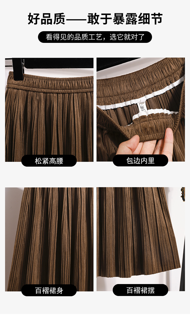 MY14836# 大码女装胖mm高级感丝绒半身裙百搭显瘦遮胯百褶裙女裝貨源服裝批發