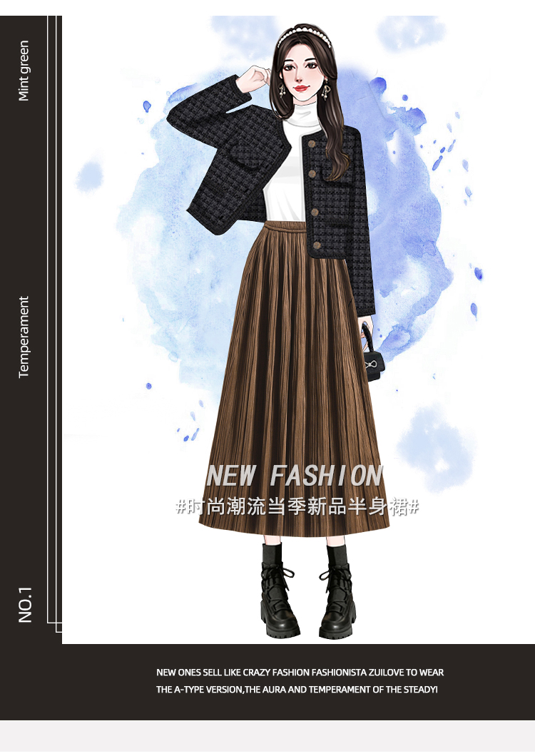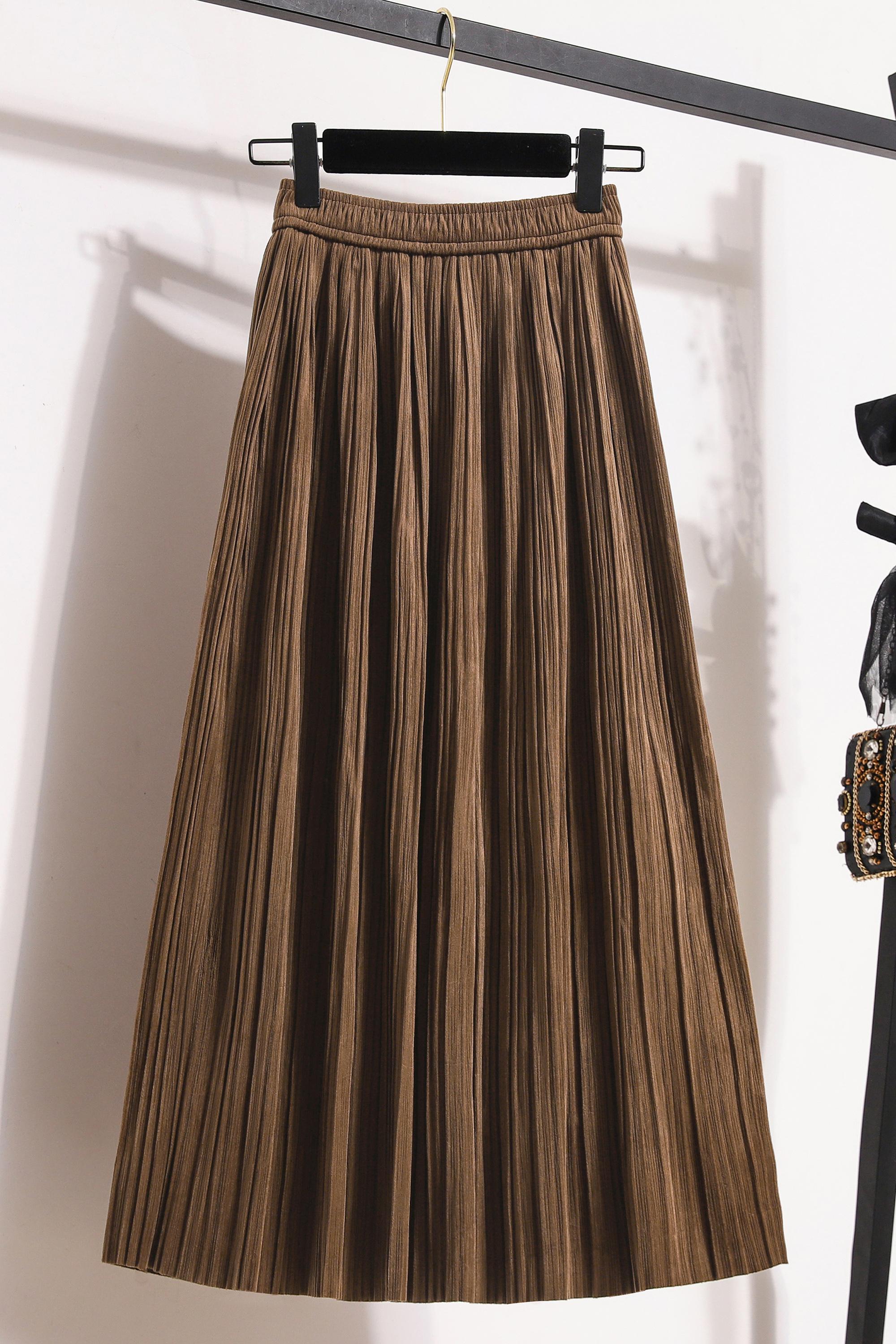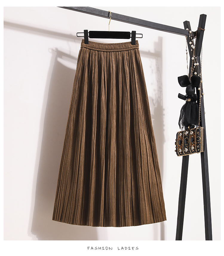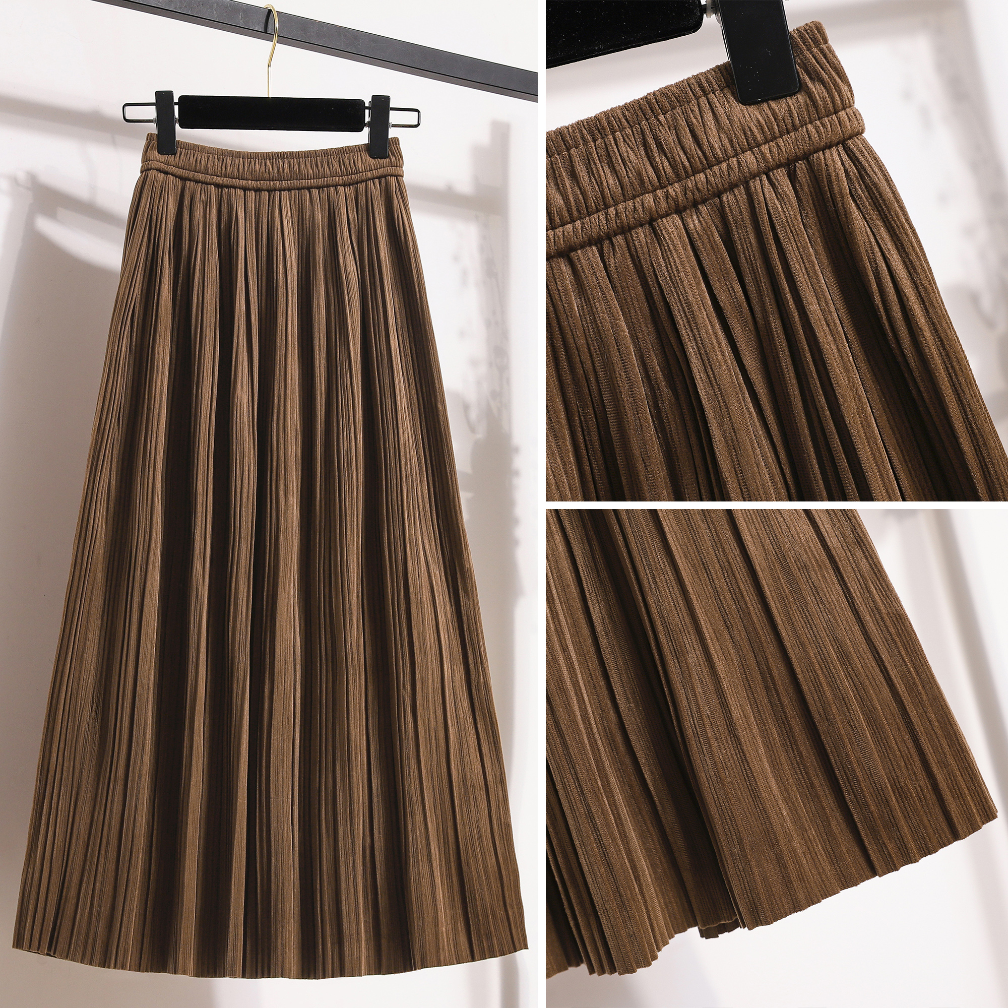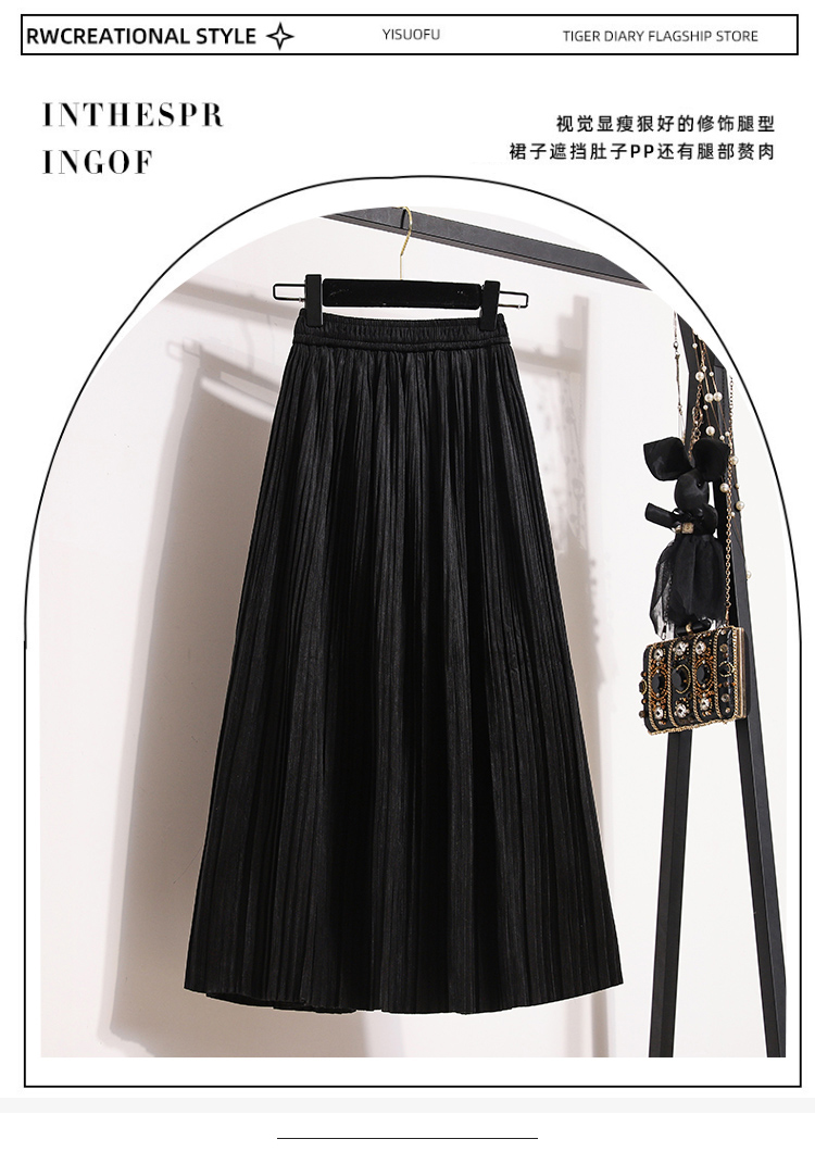 MY14836# 大码女装胖mm高级感丝绒半身裙百搭显瘦遮胯百褶裙女裝貨源服裝批發