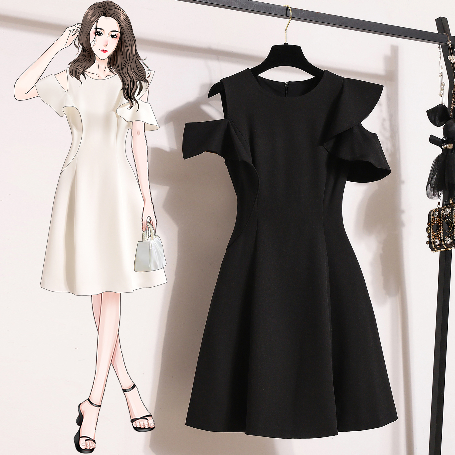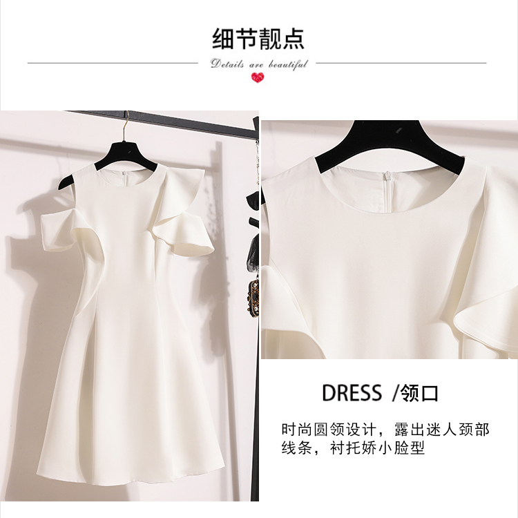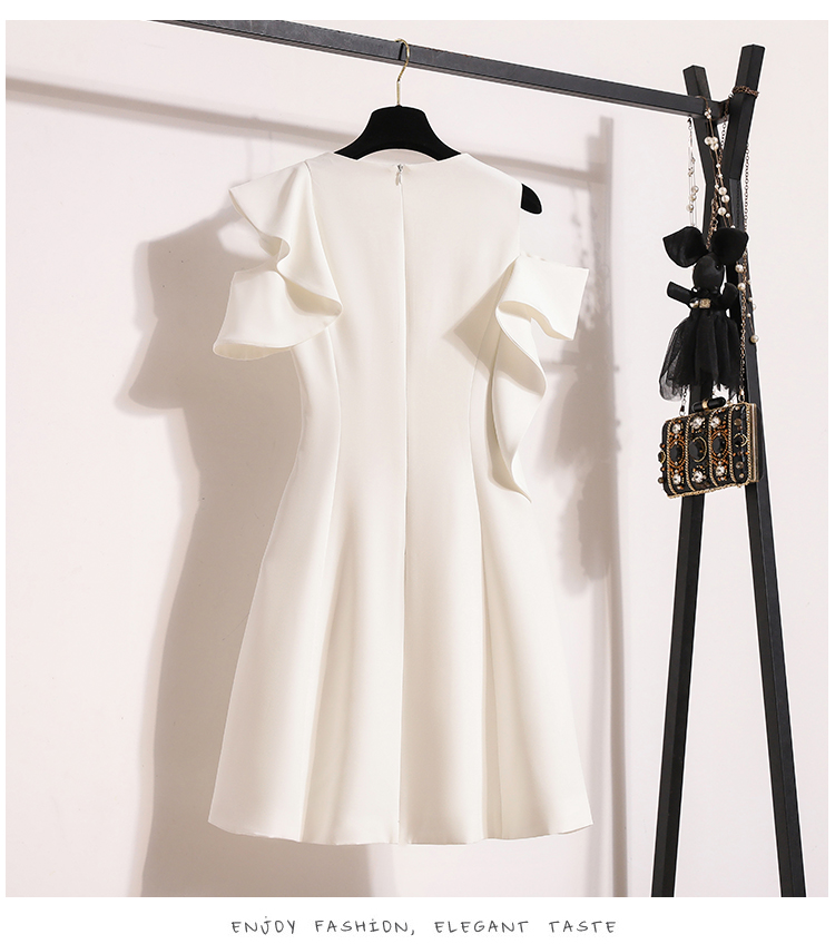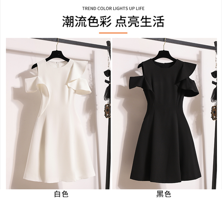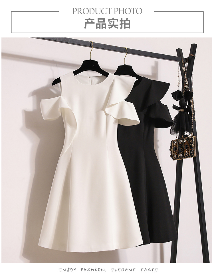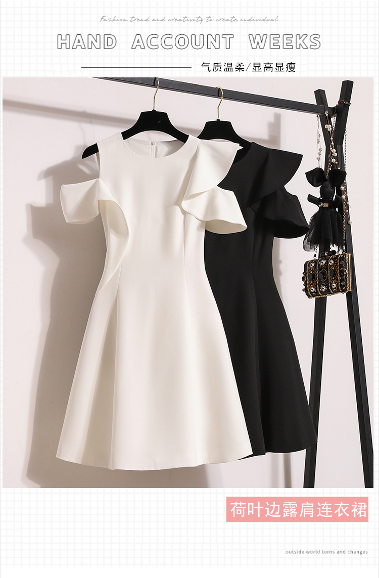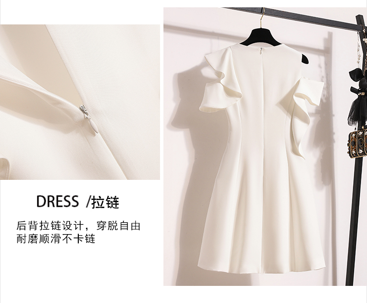 MY14838# 大码连衣裙女夏季新款收腰显瘦气质荷叶边礼服裙淑女女裝貨源服裝批發