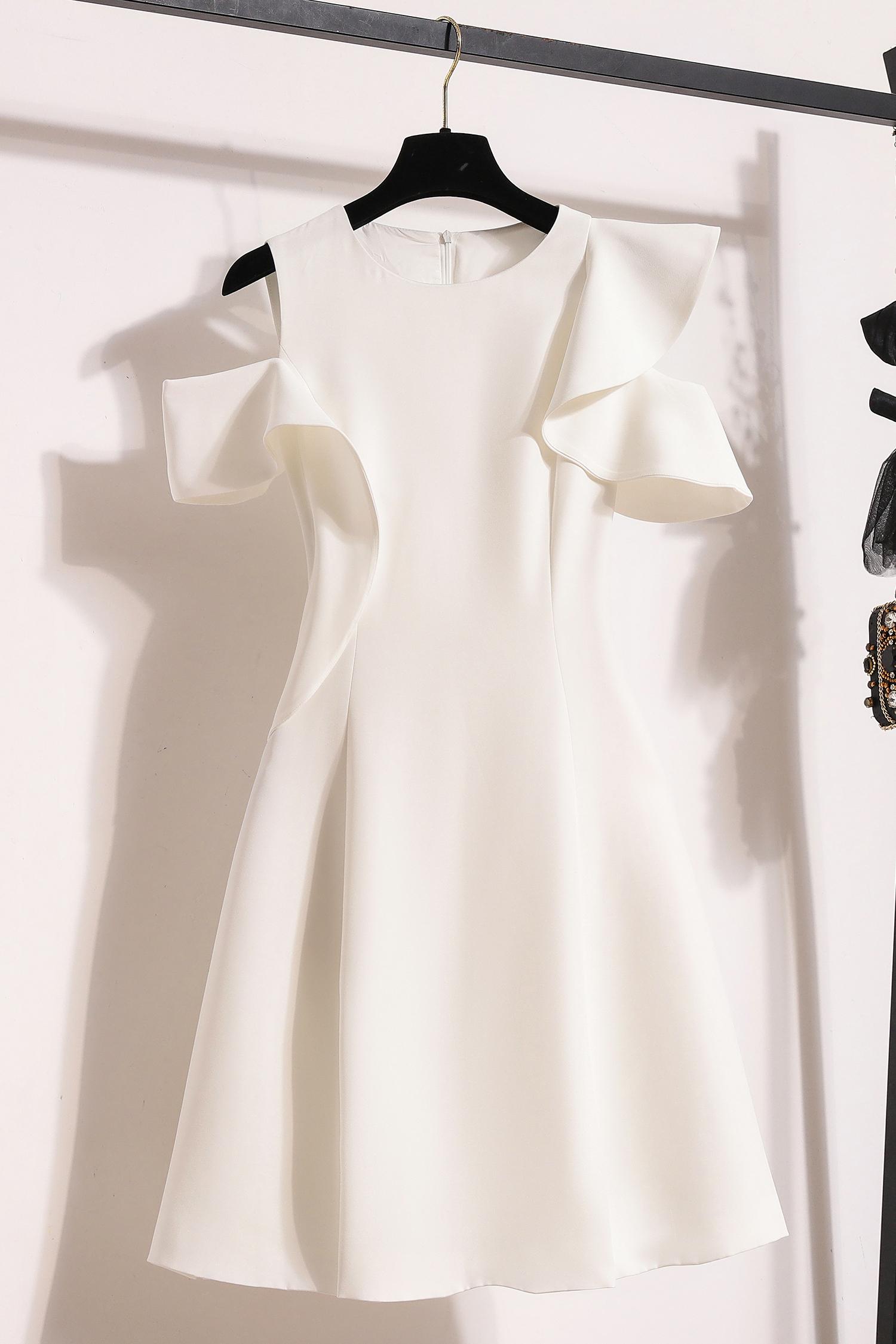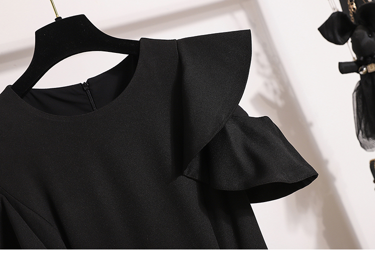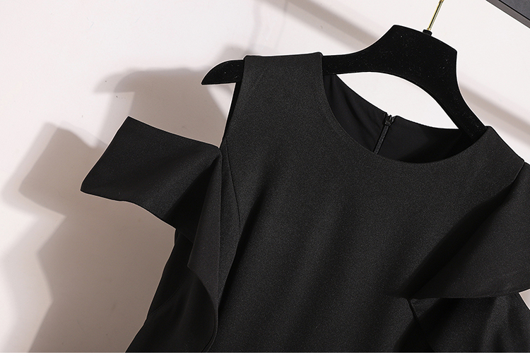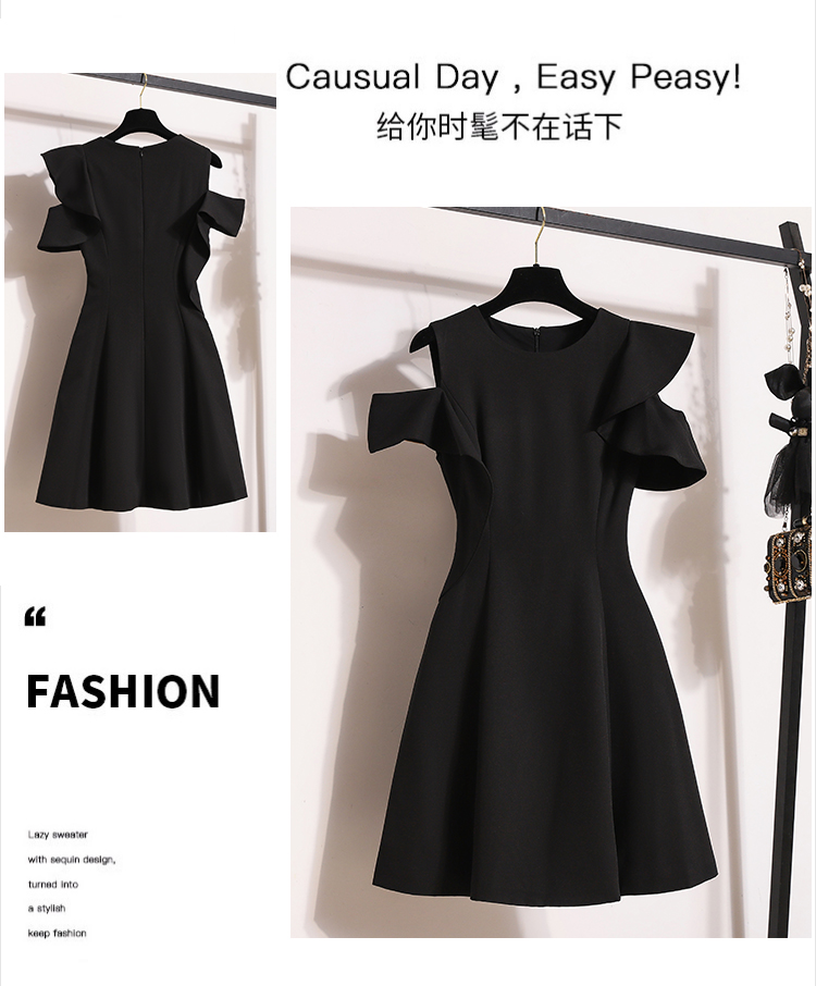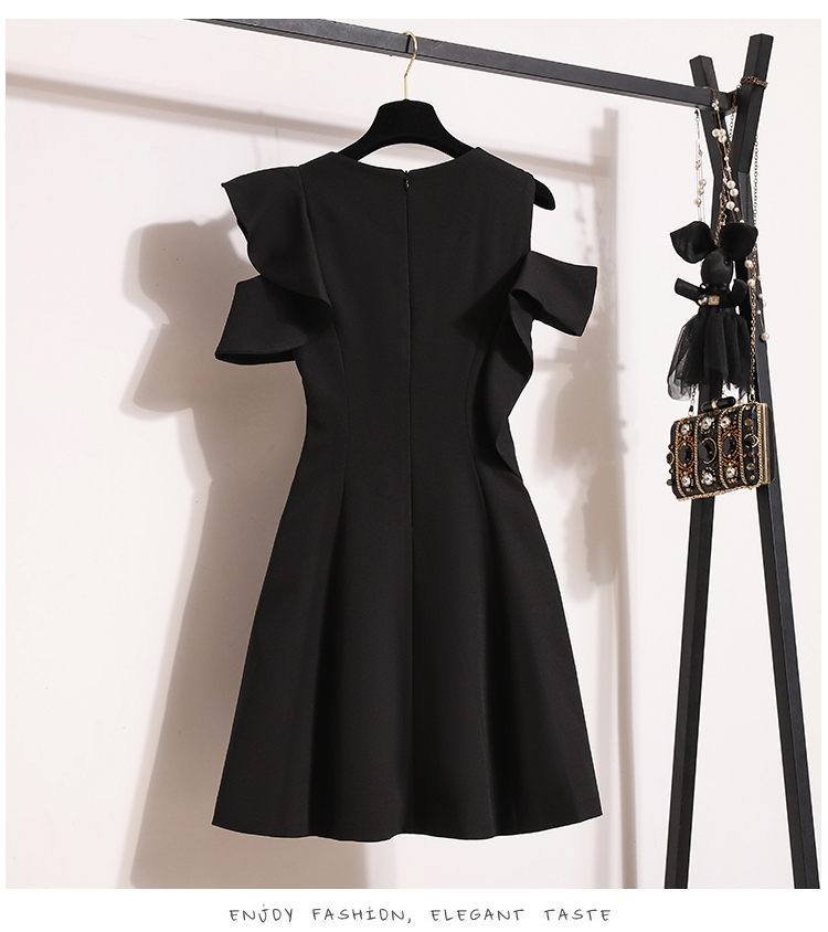 MY14838# 大码连衣裙女夏季新款收腰显瘦气质荷叶边礼服裙淑女女裝貨源服裝批發