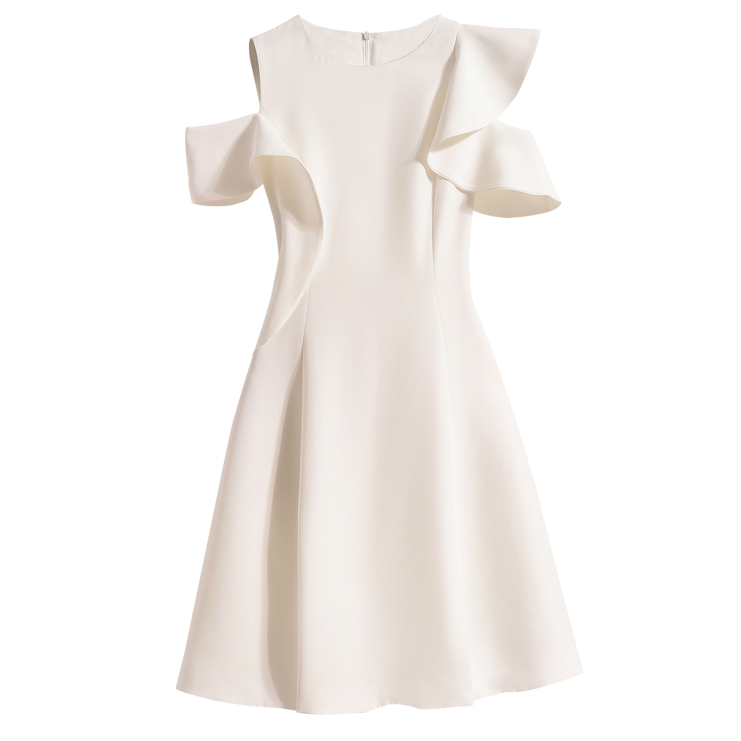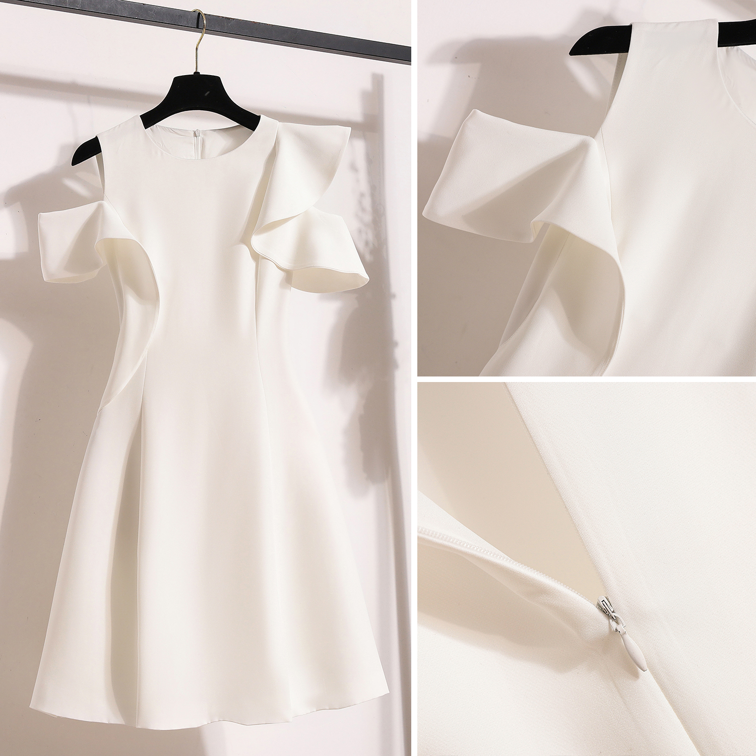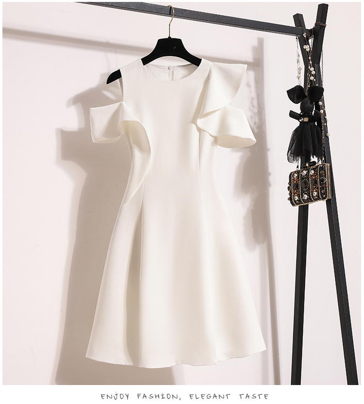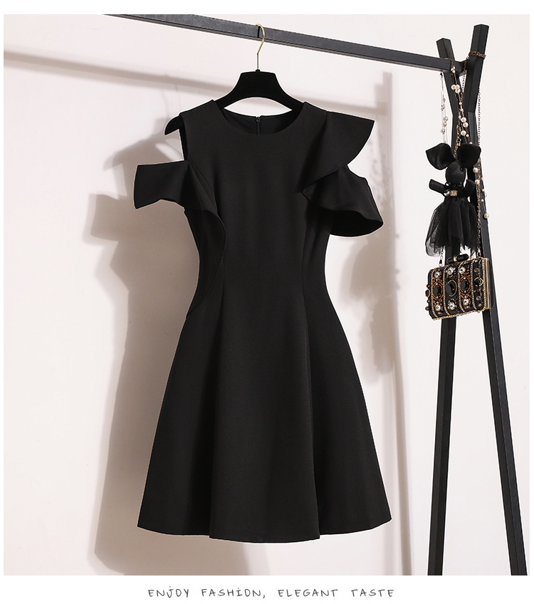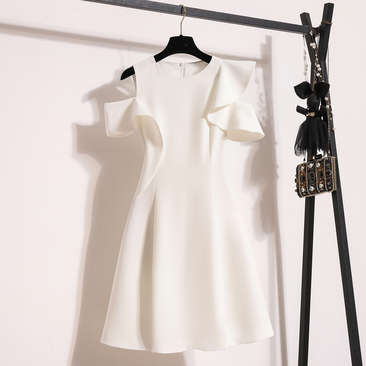 MY14838# 大码连衣裙女夏季新款收腰显瘦气质荷叶边礼服裙淑女女裝貨源服裝批發