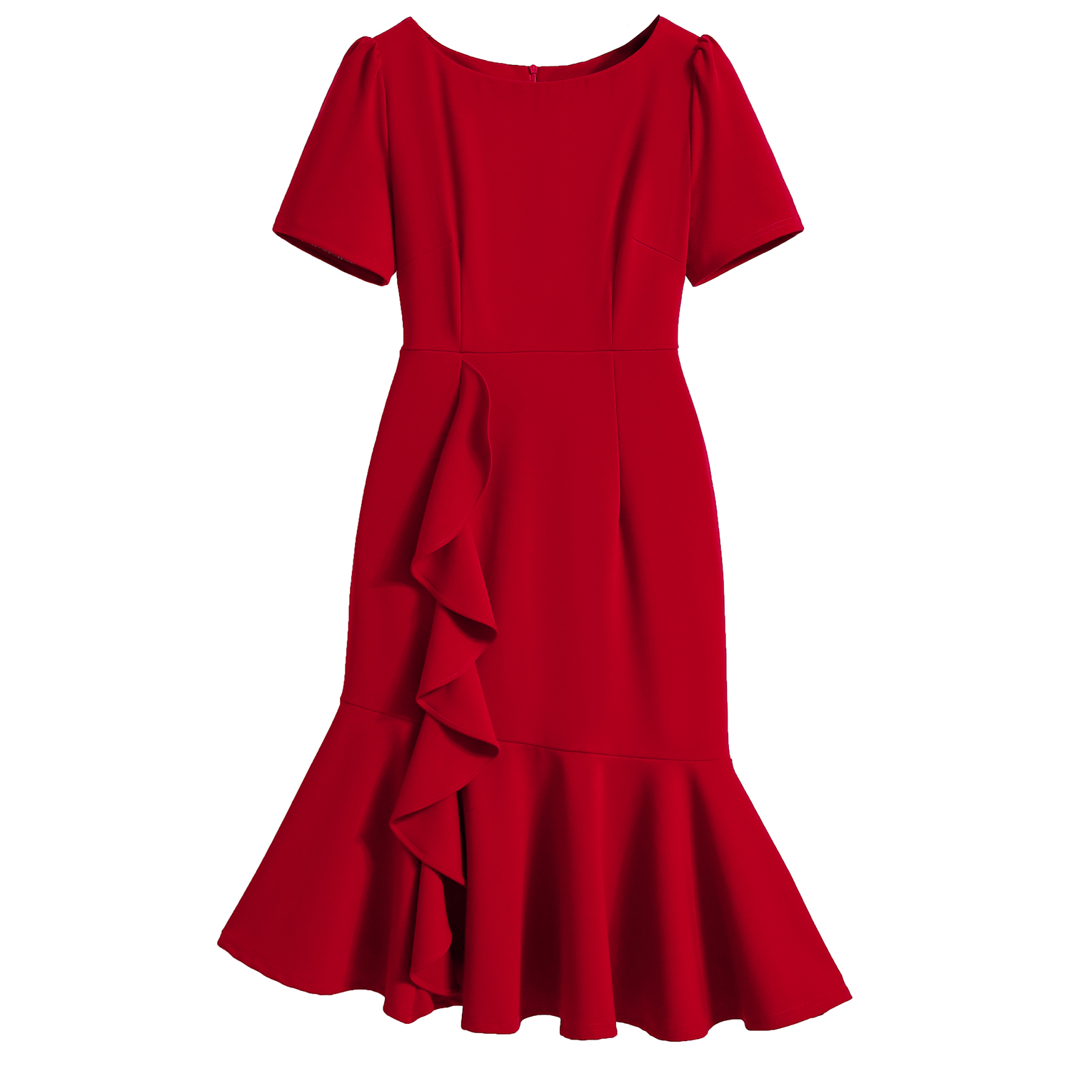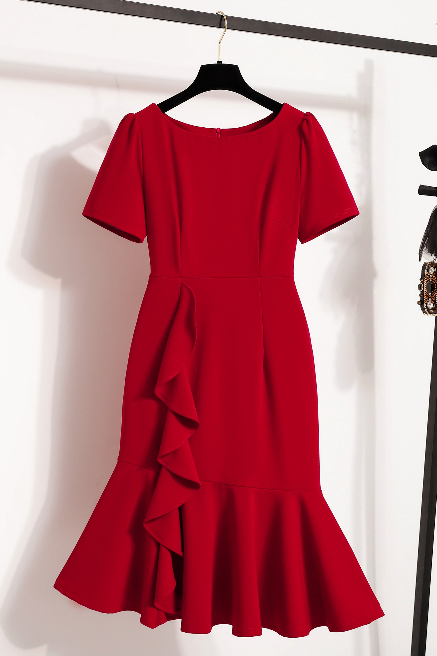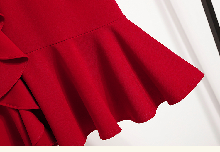 MY14838# 大码连衣裙女夏季新款收腰显瘦气质荷叶边礼服裙淑女女裝貨源...
