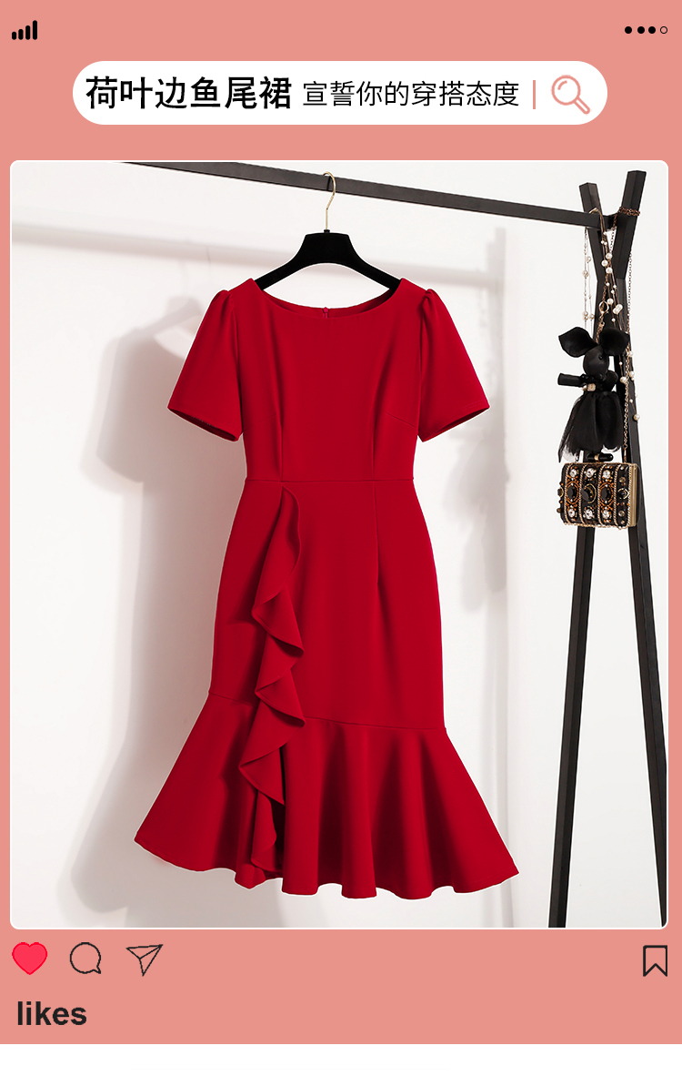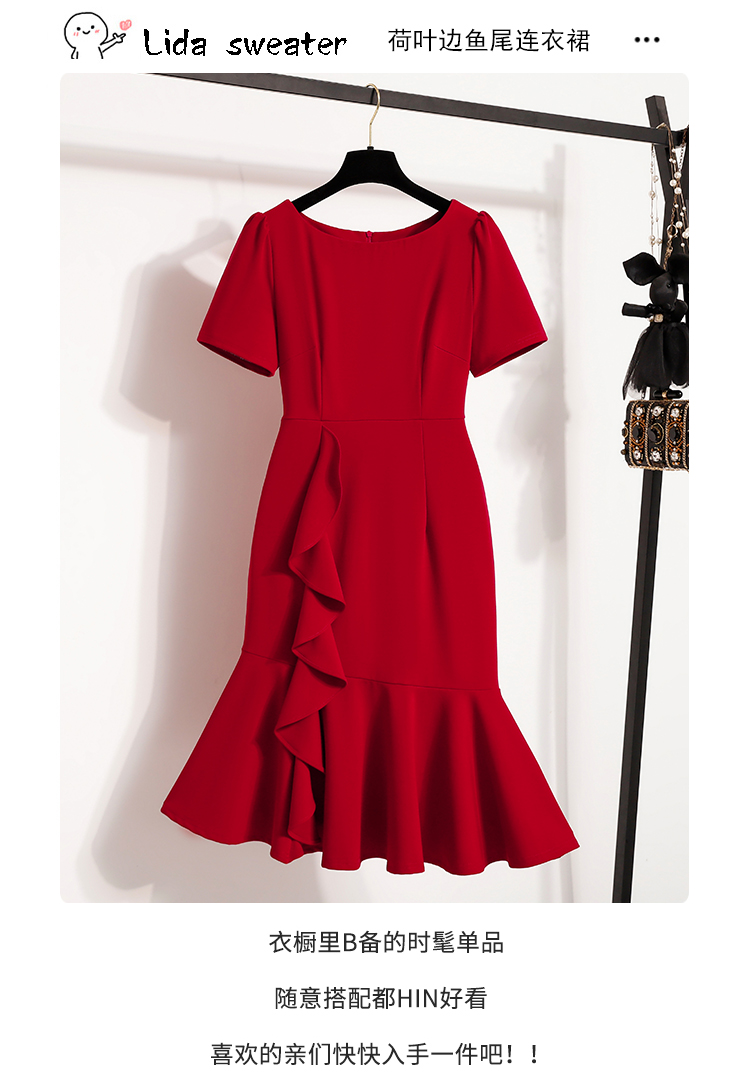 MY14840# 大码鱼尾连衣裙高级感新款女装名媛轻奢气质显瘦礼服裙子女裝貨源服裝批發