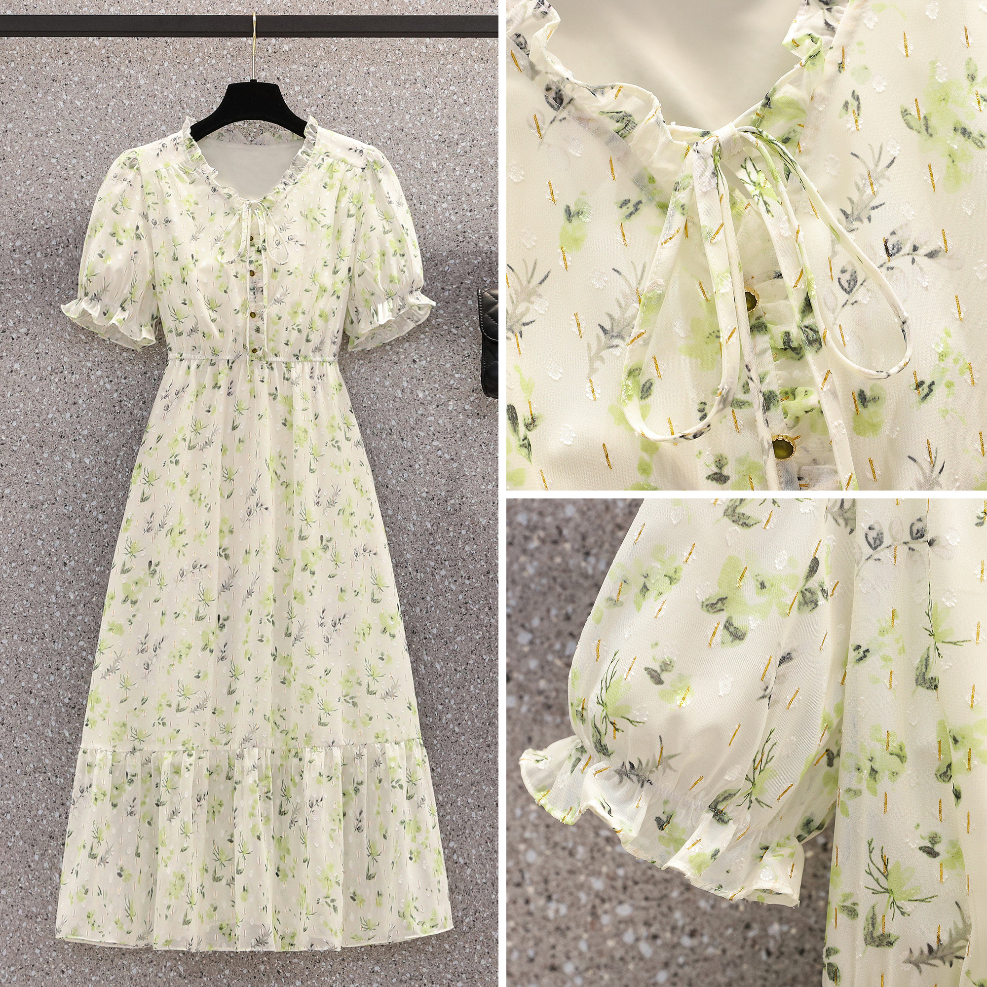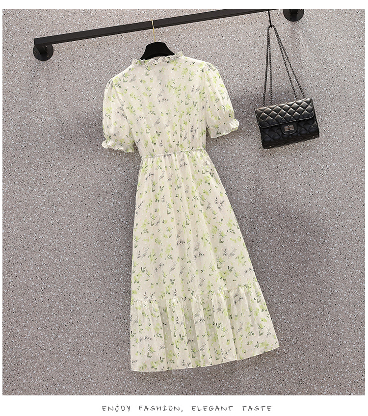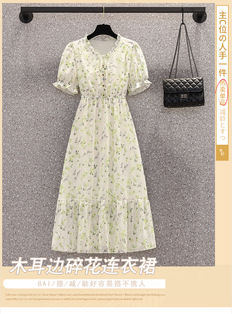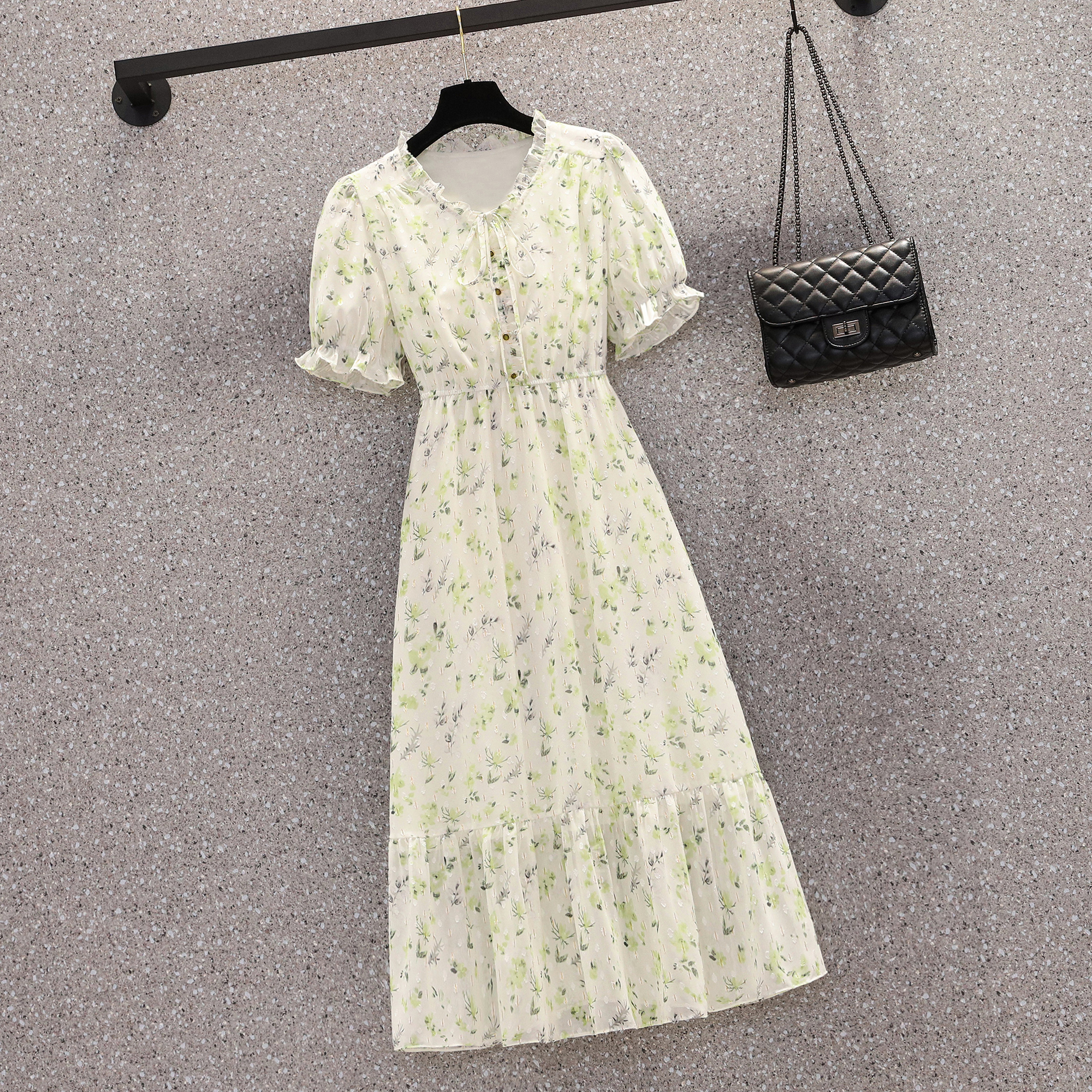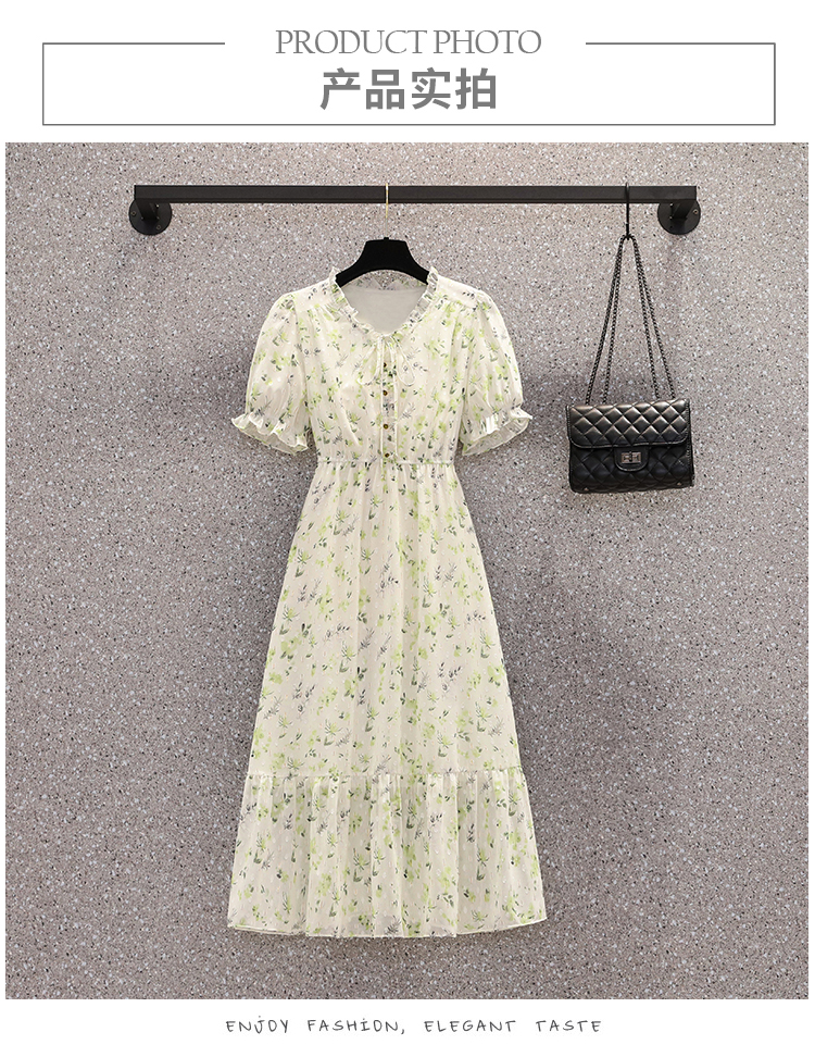 MY14844# 大码连衣裙女夏季新款法式气质淑女收腰显廋温柔风雪纺裙女裝貨源服裝批發