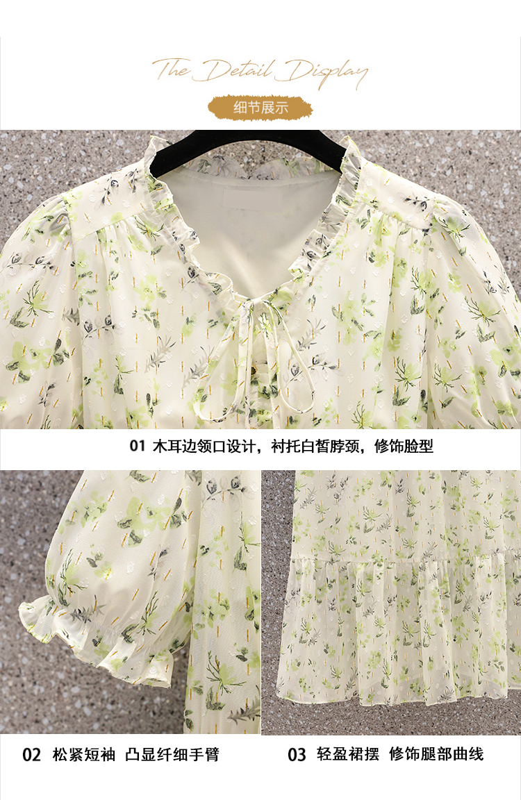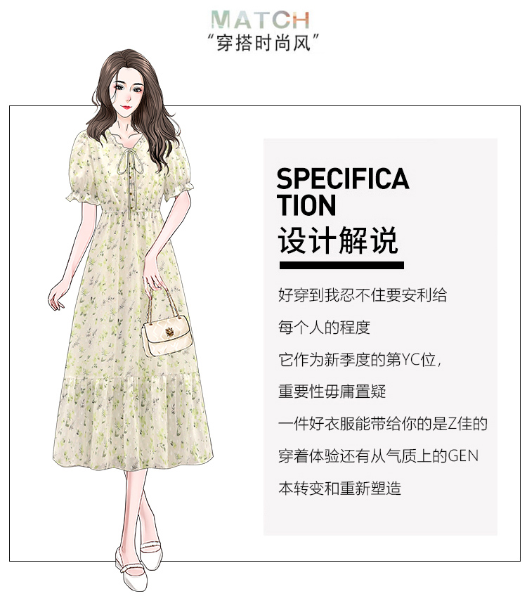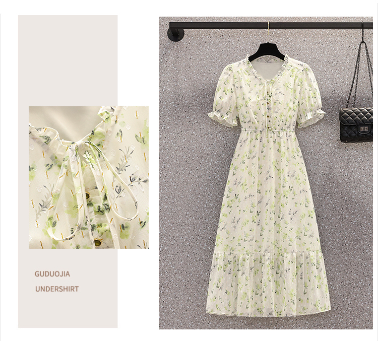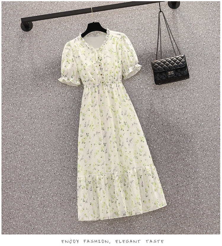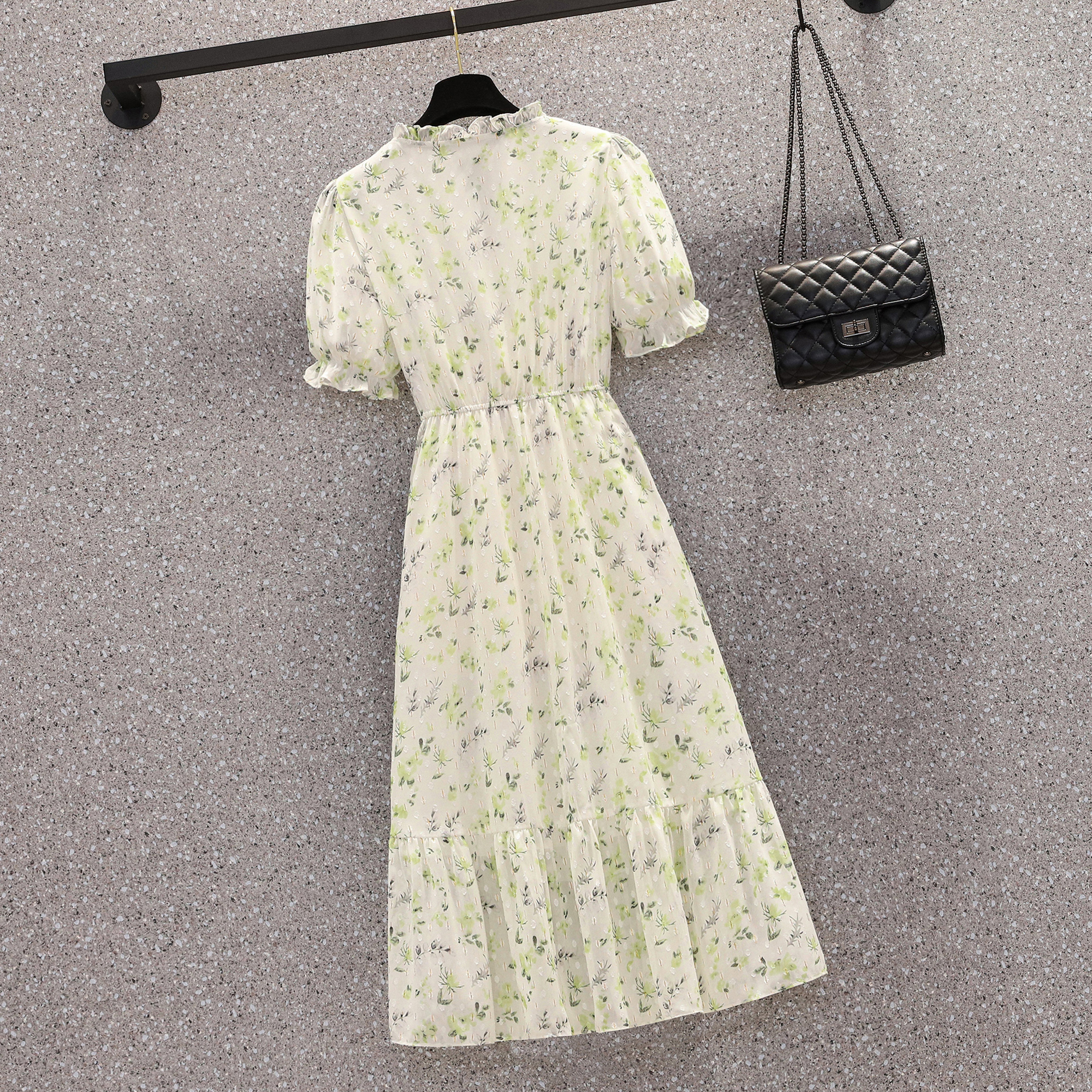MY14844# 大码连衣裙女夏季新款法式气质淑女收腰显廋温柔风雪纺裙女裝貨源服裝批發