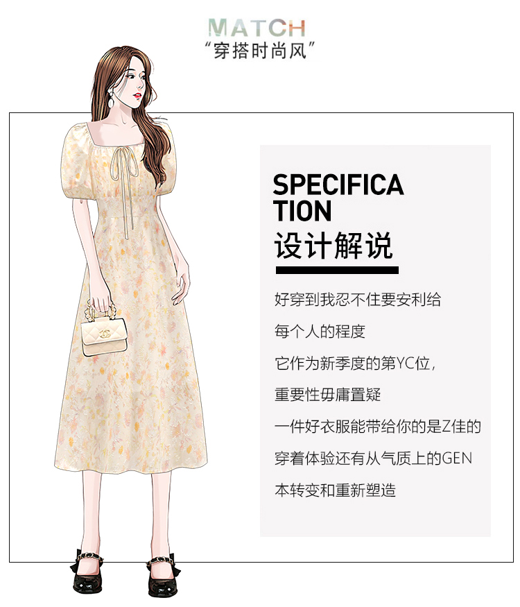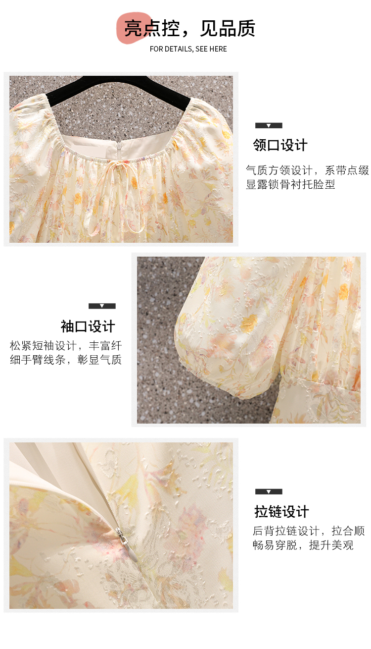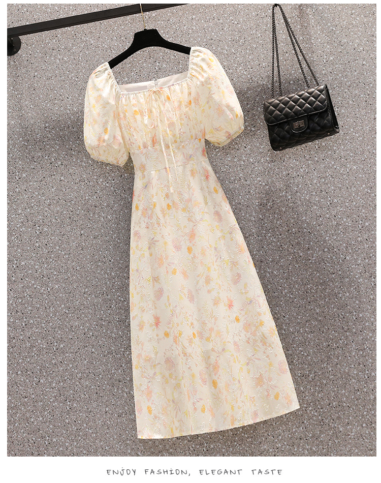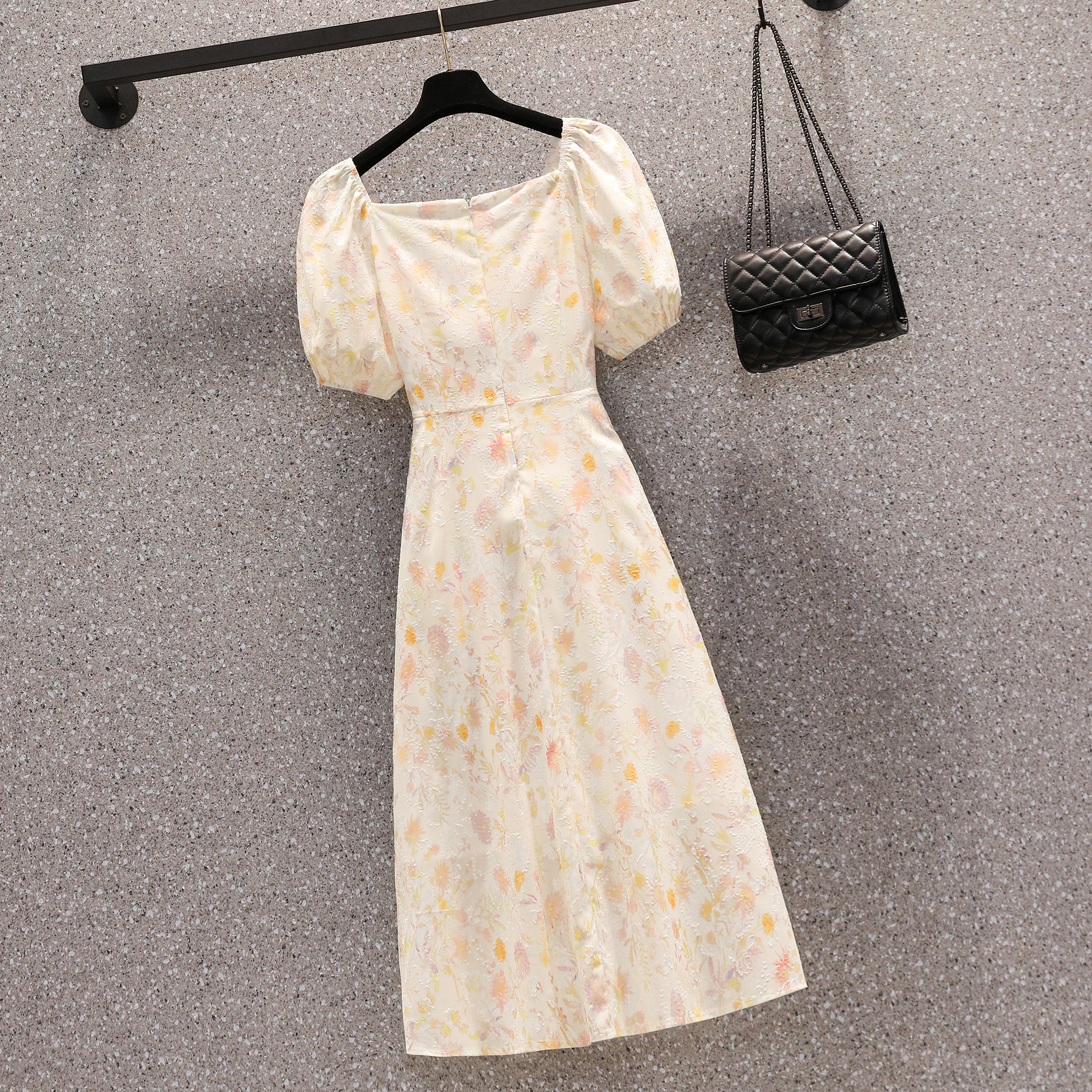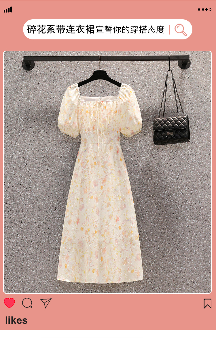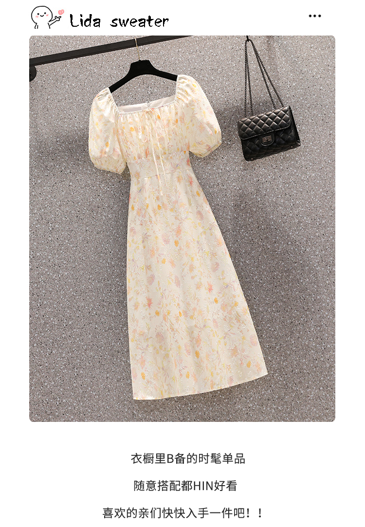 MY14845# 大码新款茶歇女夏季印花高级感气质显瘦法式连衣裙小清新女裝貨源服裝批發