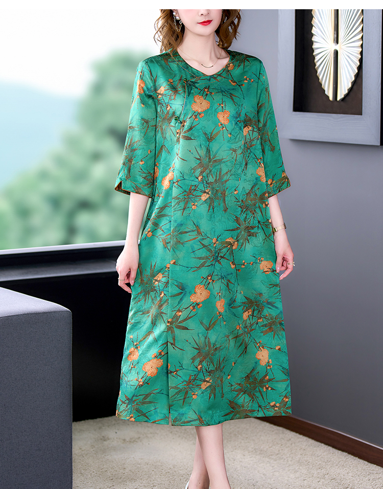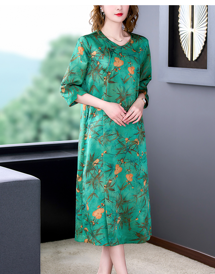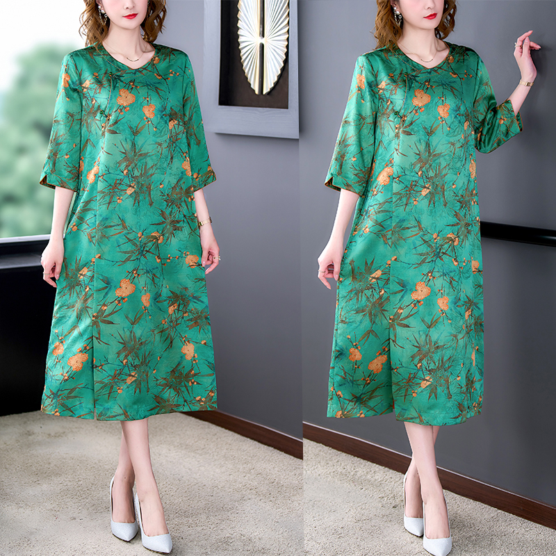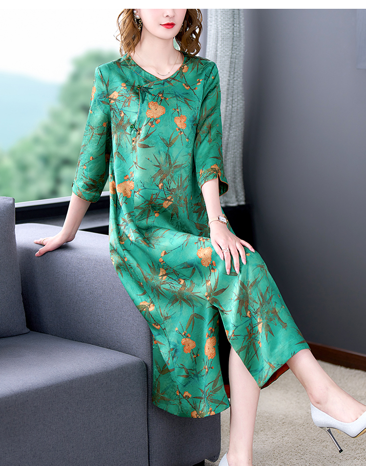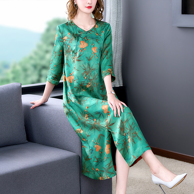 MY14850# 香云纱连衣裙女夏新款气质高端品牌真丝桑蚕丝改良旗袍妈妈款女裝貨源服裝批發