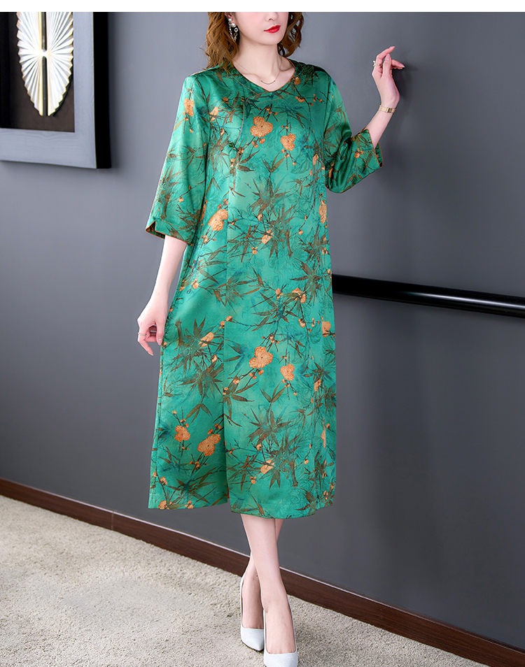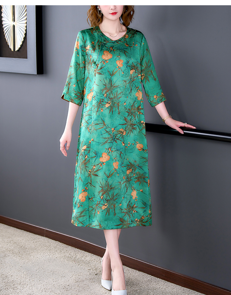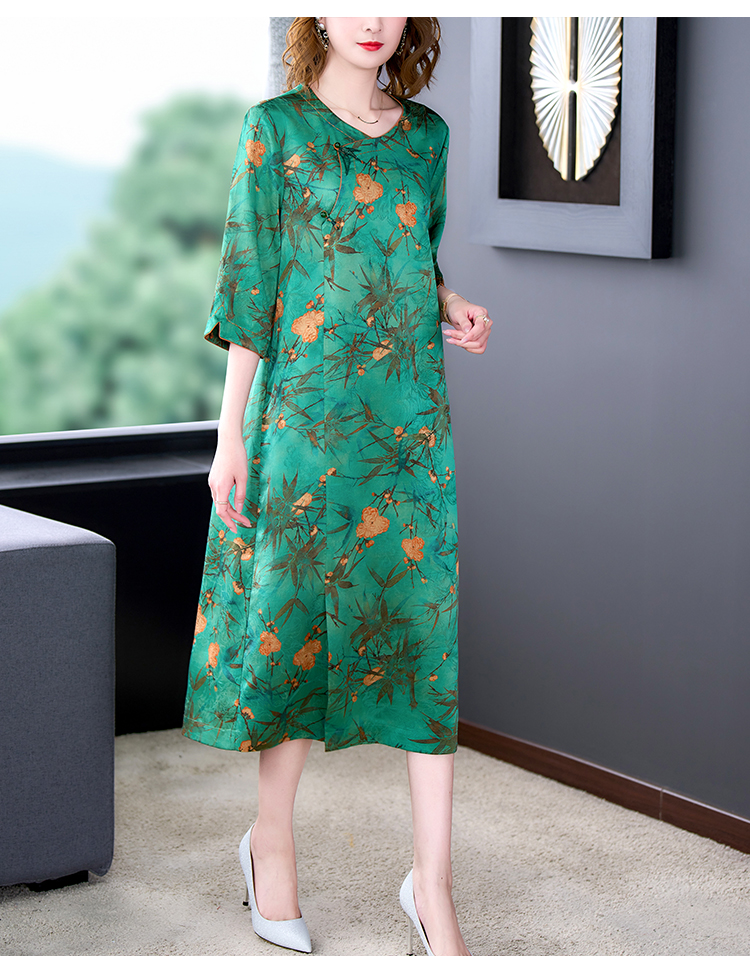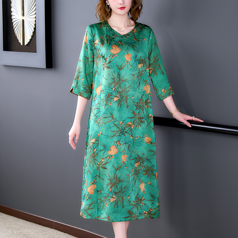 MY14850# 香云纱连衣裙女夏新款气质高端品牌真丝桑蚕丝改良旗袍妈妈款女裝貨源服裝批發