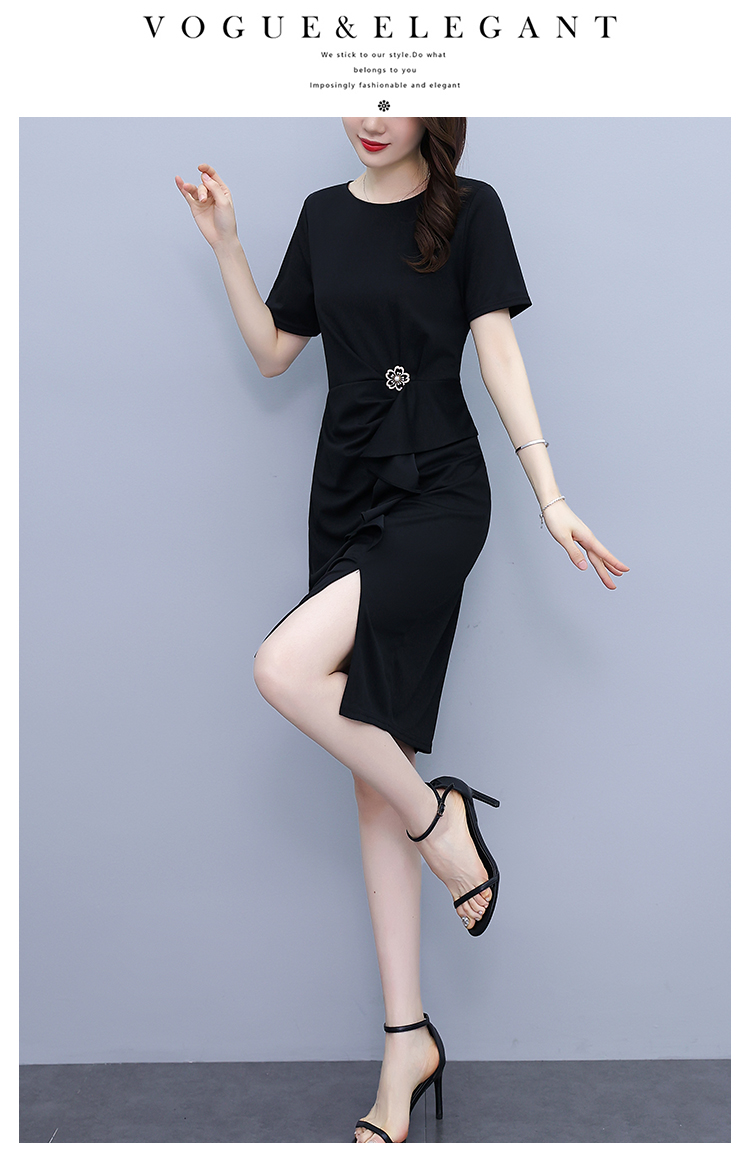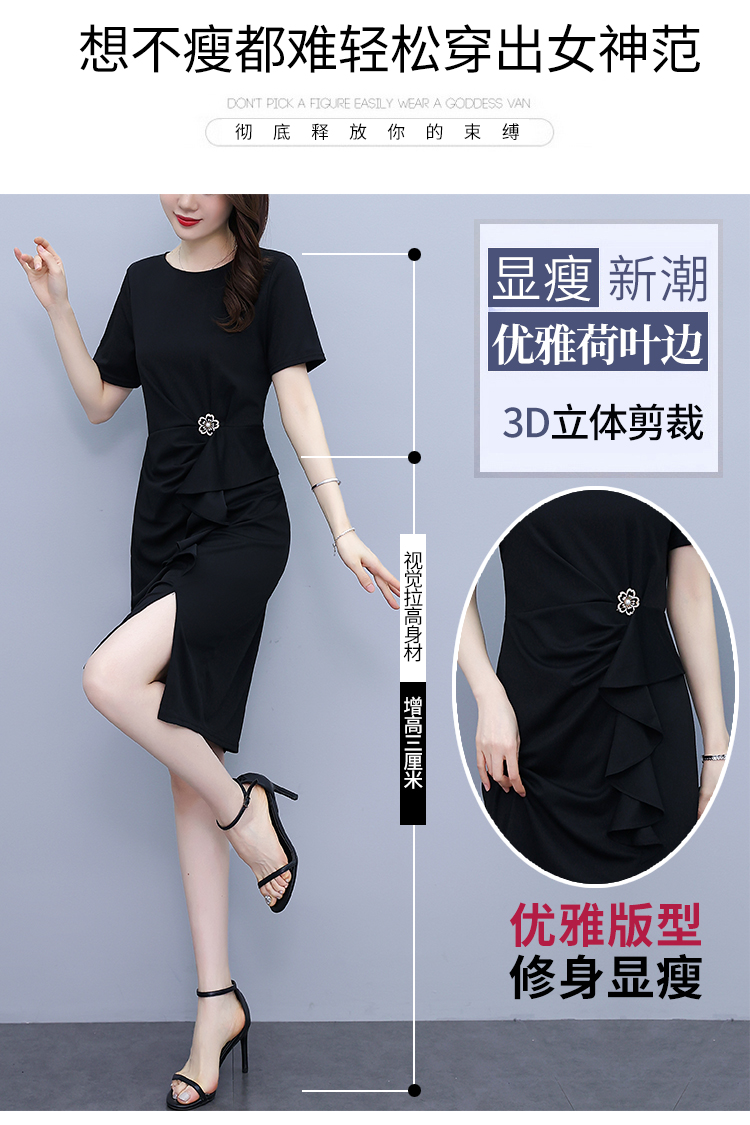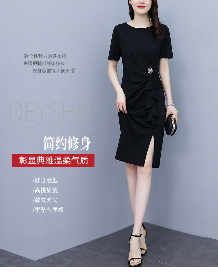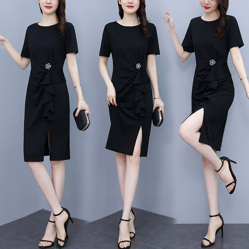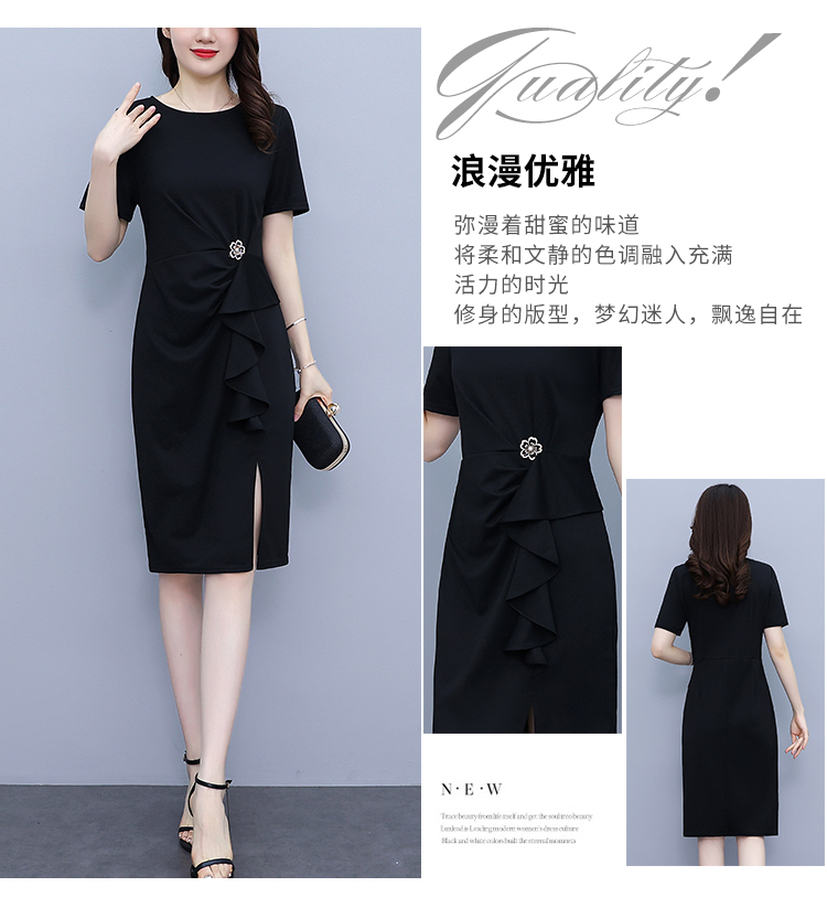 MY14855# 新款高端洋气黑色连衣裙夏名媛气质短袖包臀宴会礼服裙女裝貨源服裝批發