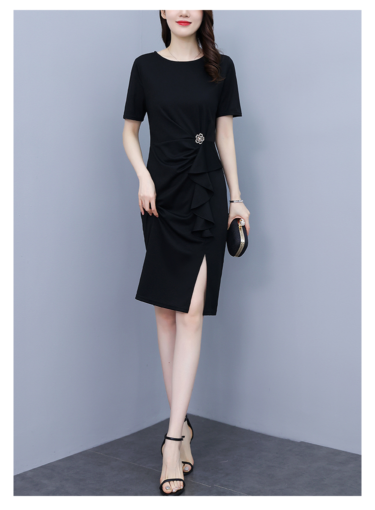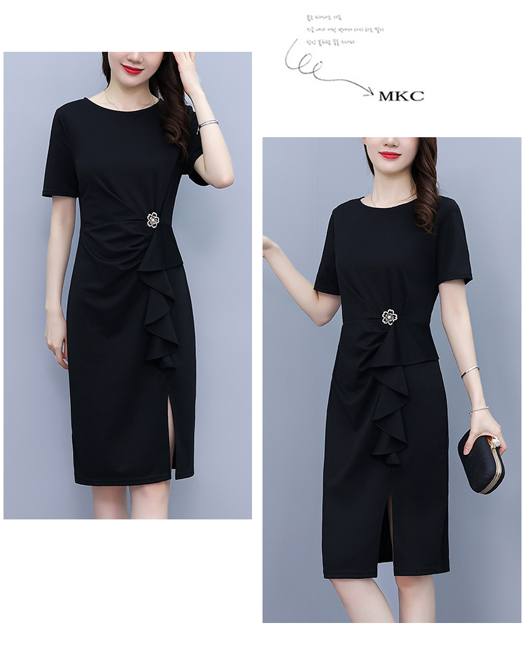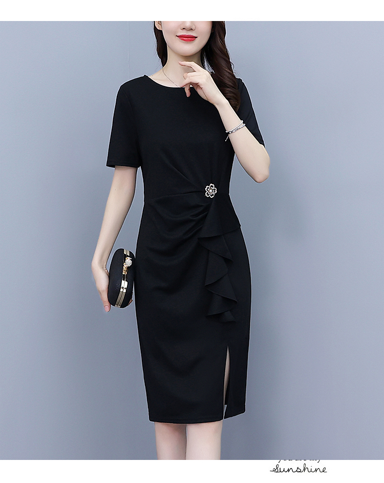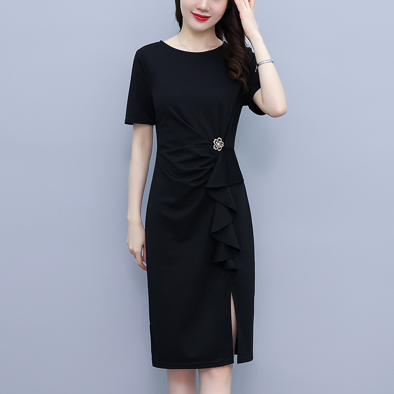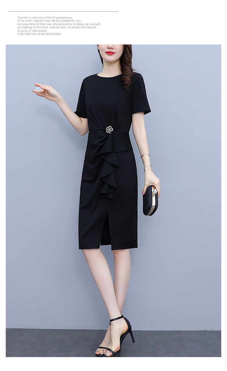 MY14855# 新款高端洋气黑色连衣裙夏名媛气质短袖包臀宴会礼服裙女裝貨源服裝批發
