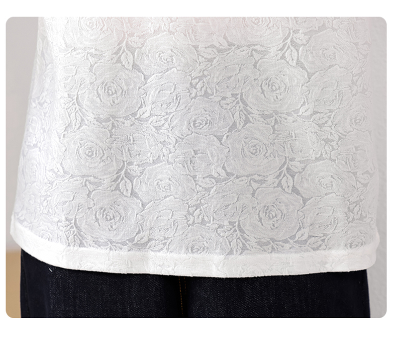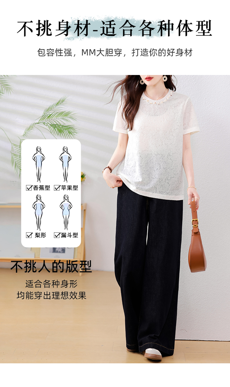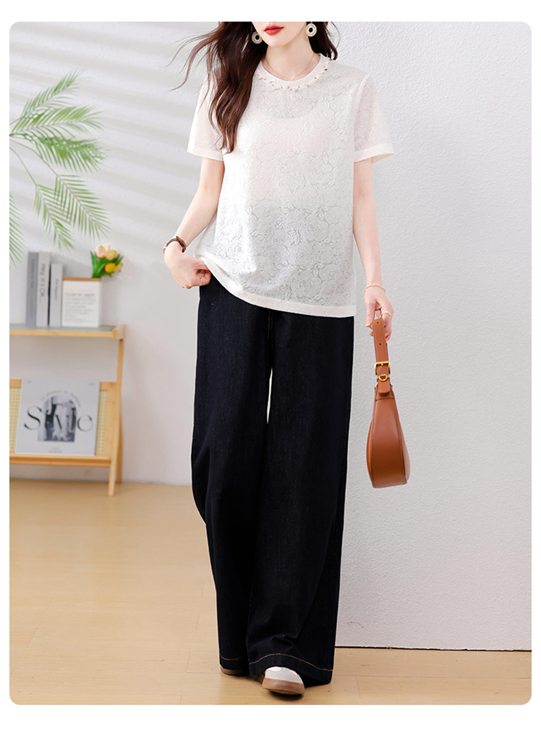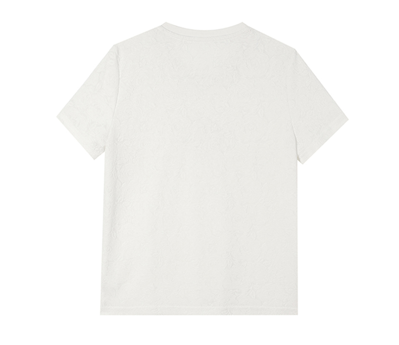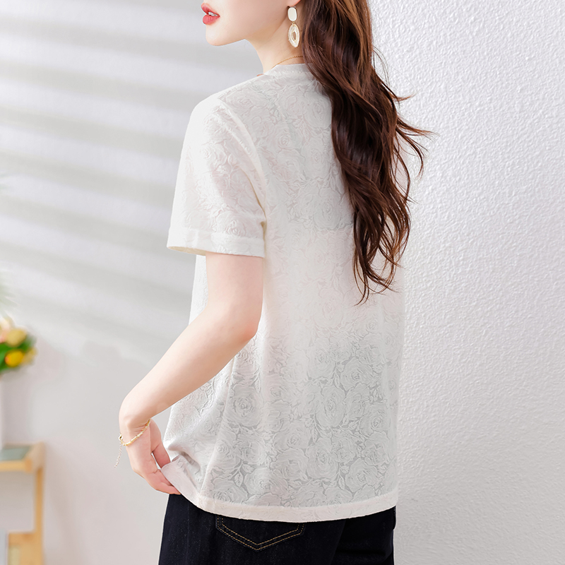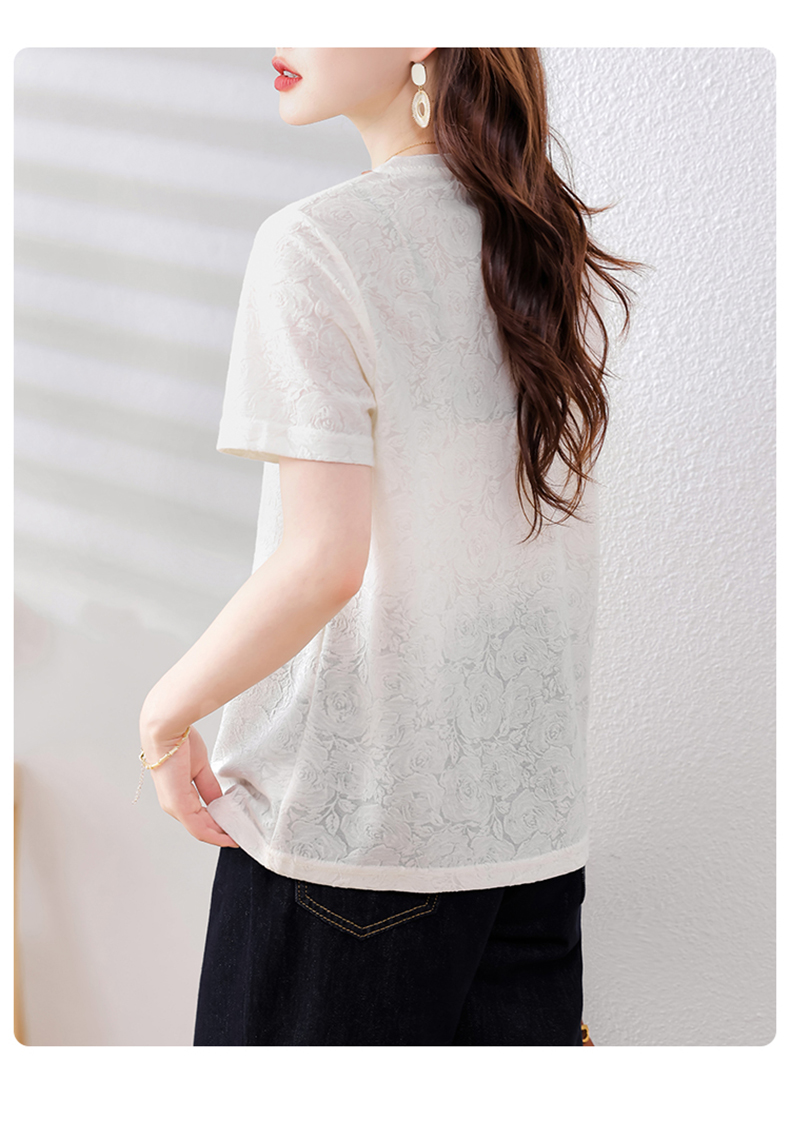 MY14857# 实拍 圆领钉钻提花白色短袖T恤2025夏季韩版简约百搭休闲棉上衣