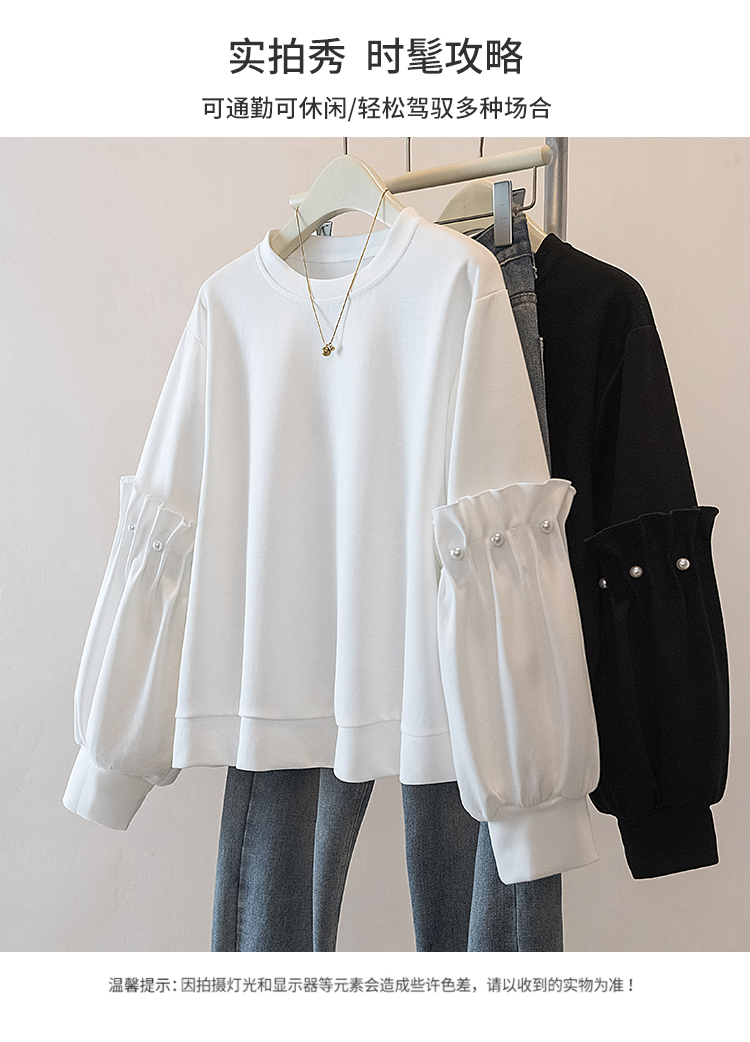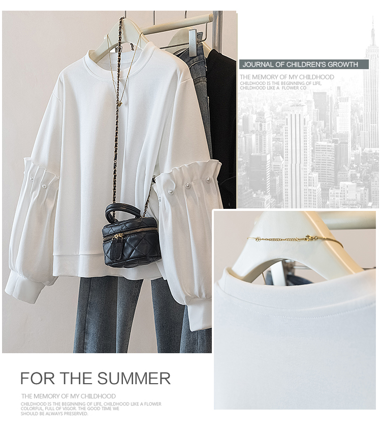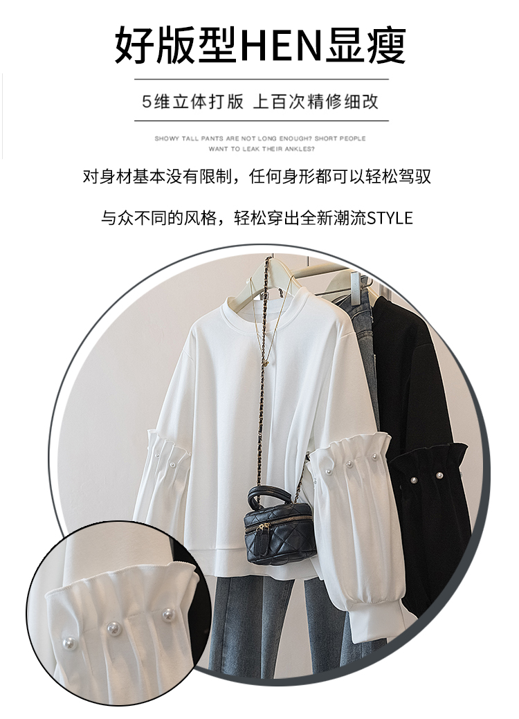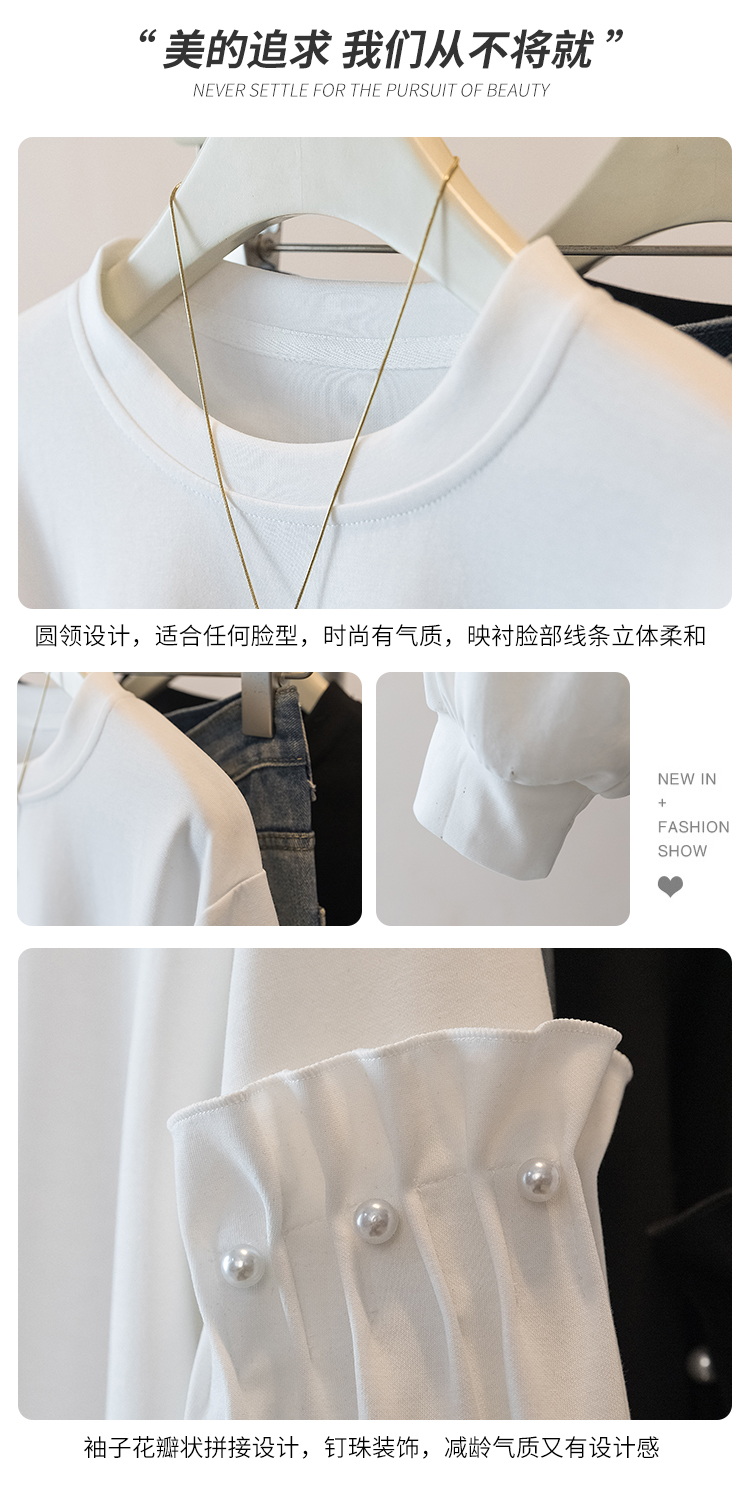 MY14867# 胖mm新款韩系设计感宽松休闲百搭显瘦减龄珍珠上衣女裝貨源服裝批發