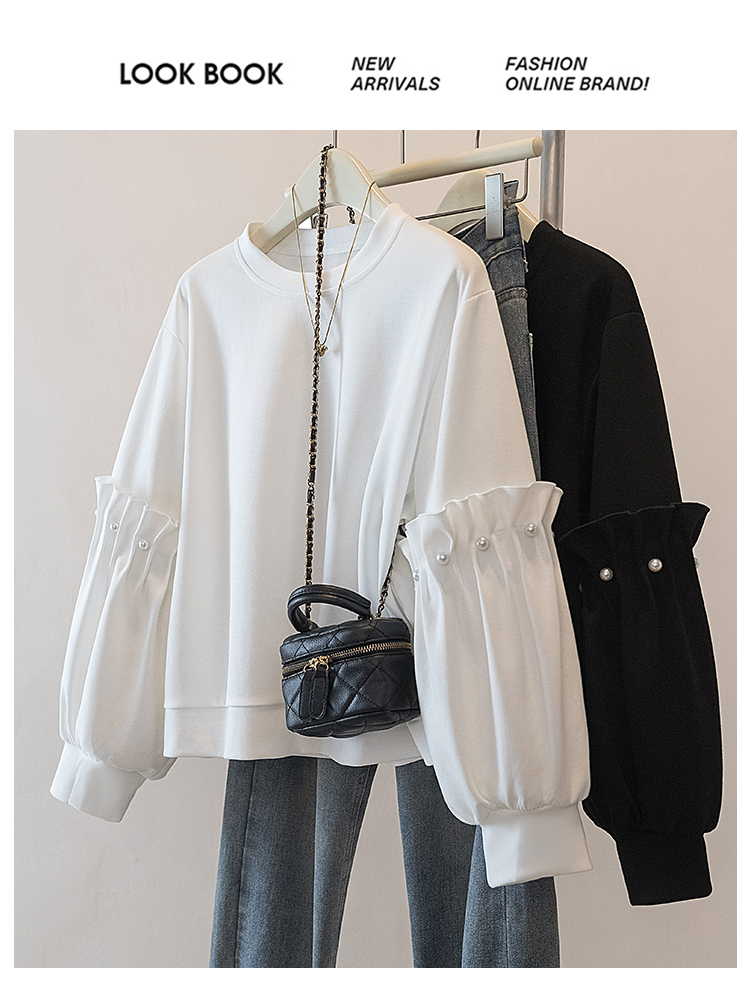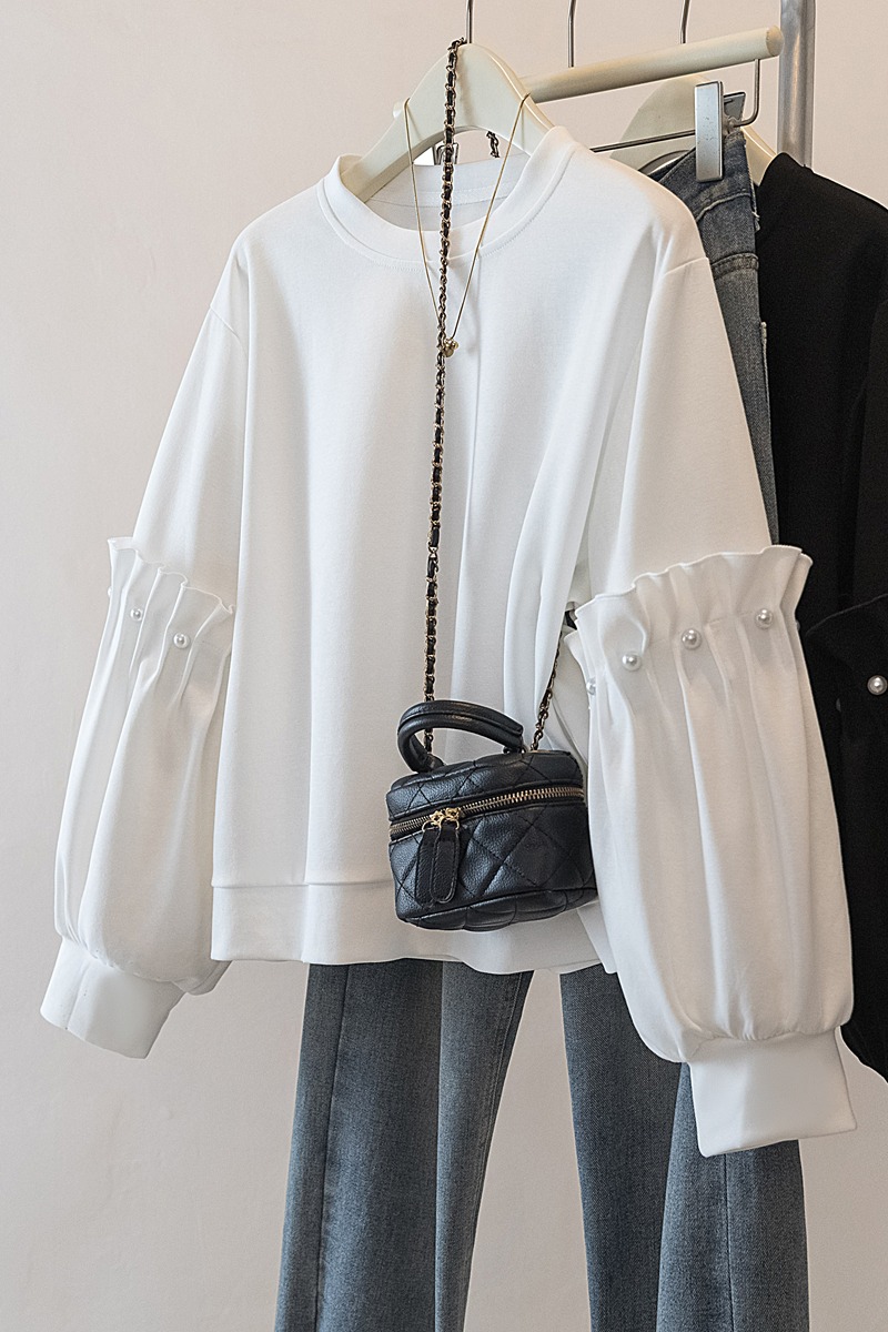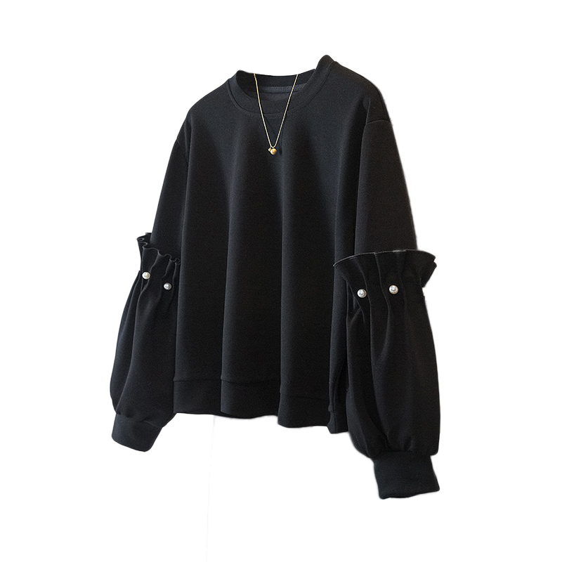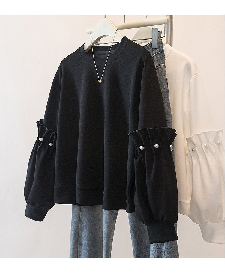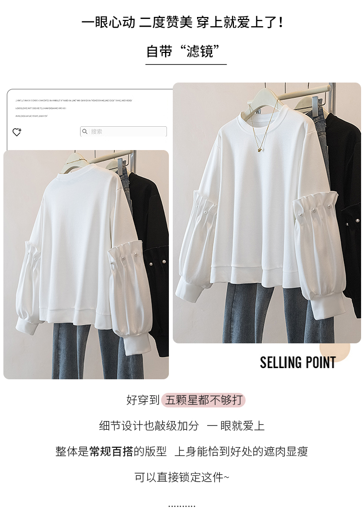 MY14867# 胖mm新款韩系设计感宽松休闲百搭显瘦减龄珍珠上衣女裝貨源服裝批發