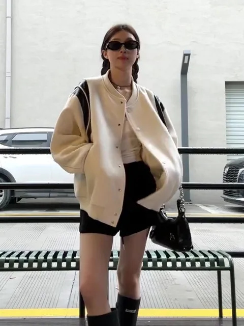 MY14910# 美式加绒加厚棒球服女夹克外套新款爆款高级感休闲上衣女裝貨源服裝批發