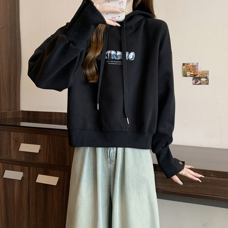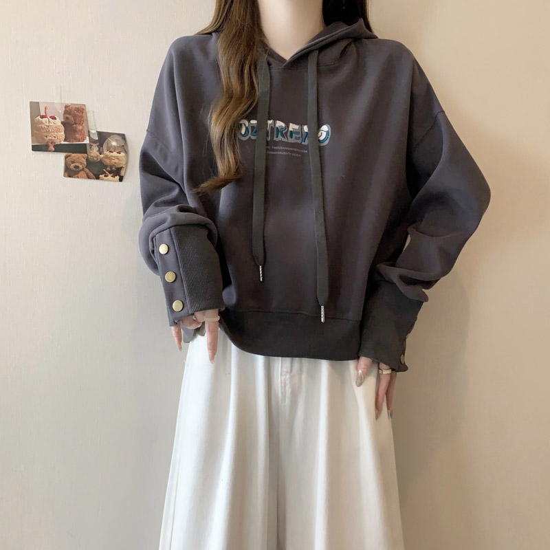 首页 > 女装批发-秋冬款 > 单衣、卫衣 > MY14922# 华棉设计感袖口纽扣连帽套头短款卫衣女新款短款帽衫上衣外套女裝貨源服裝批發