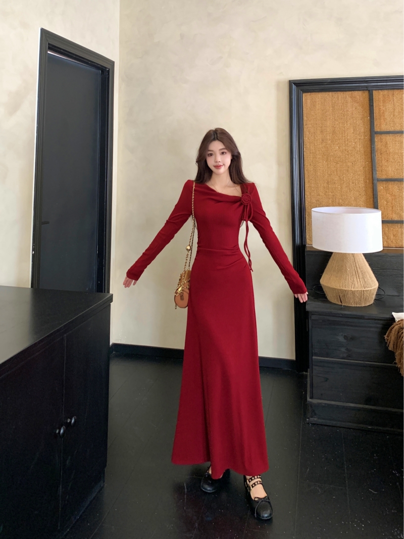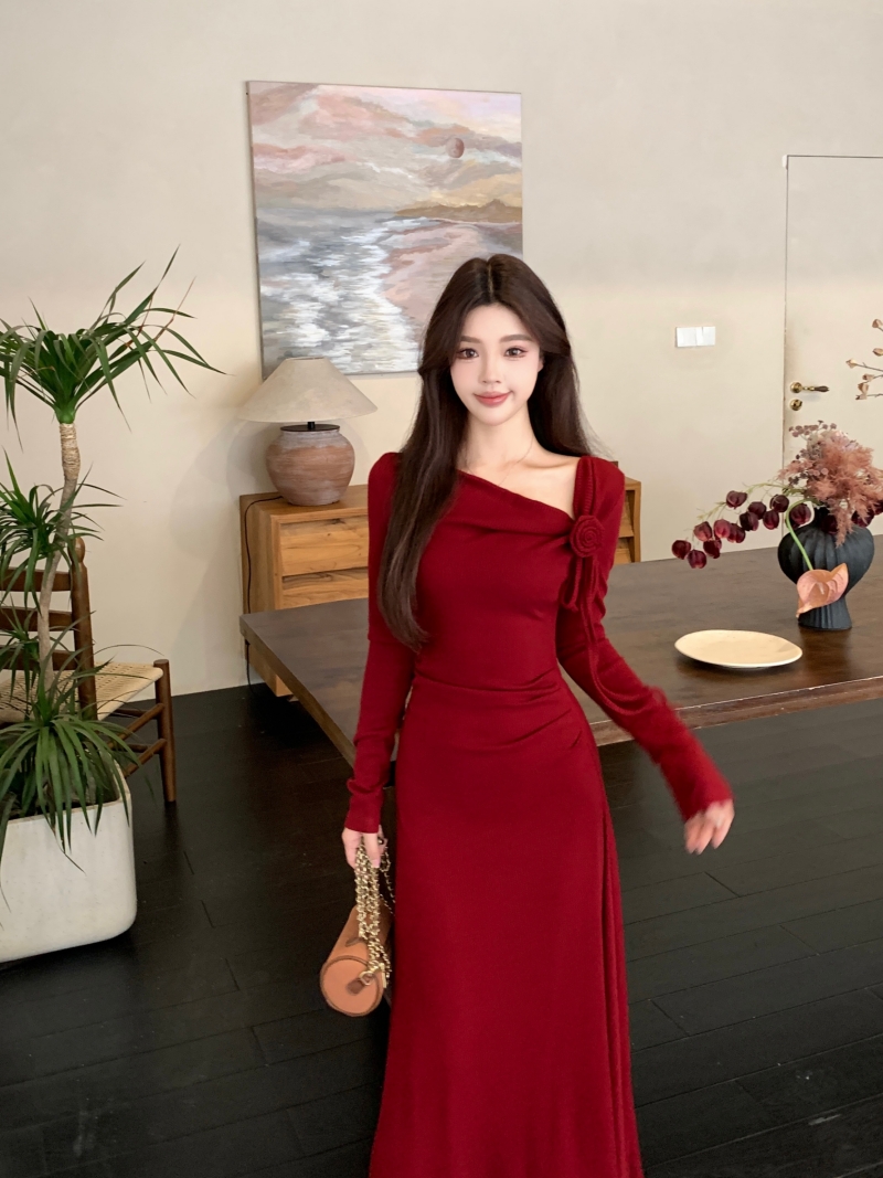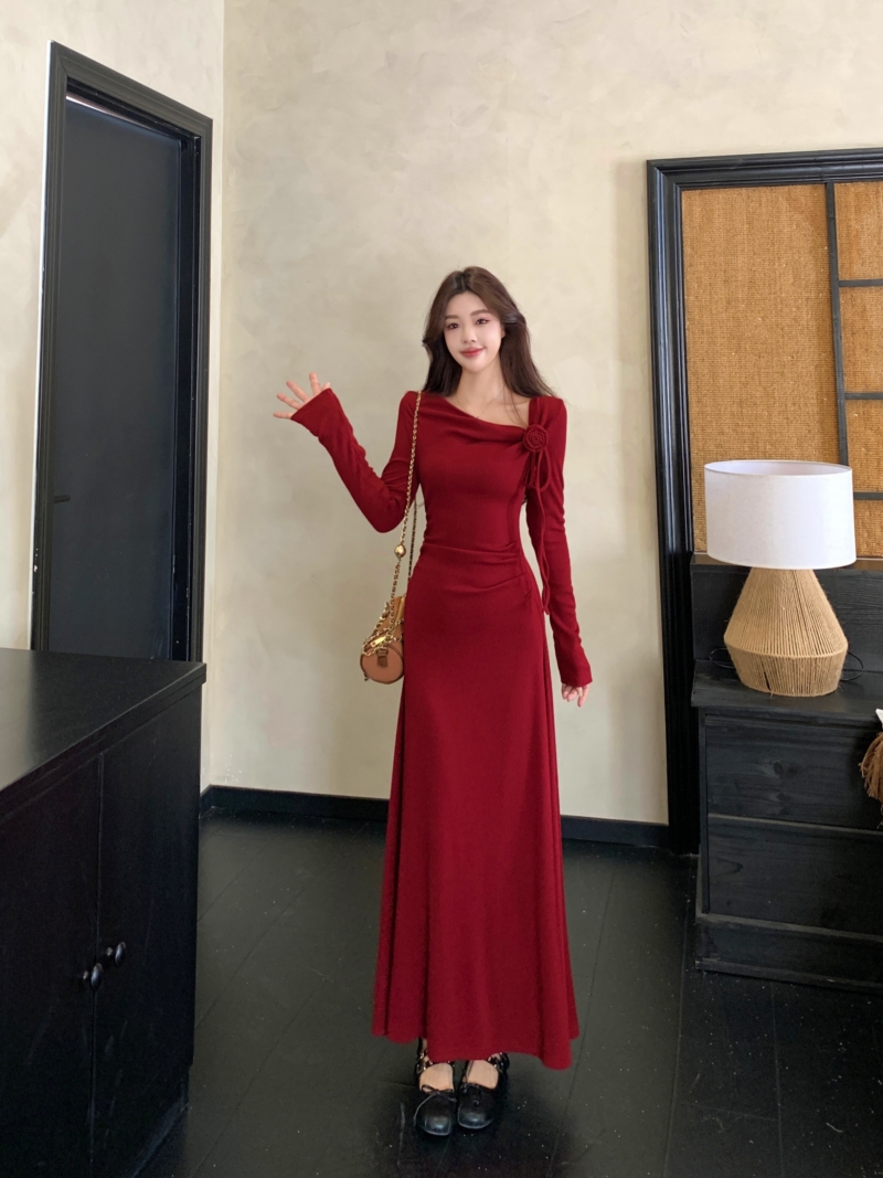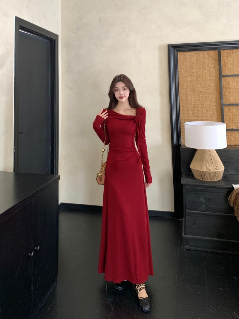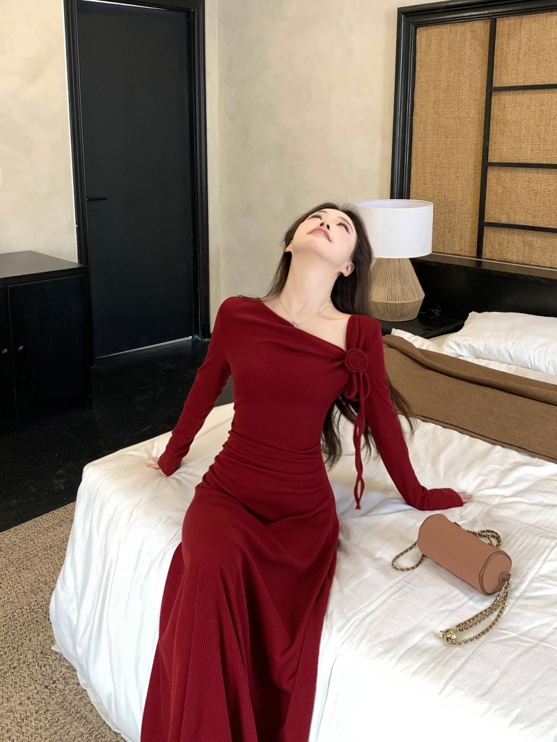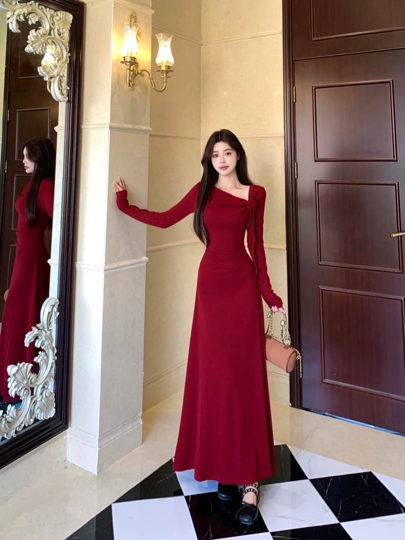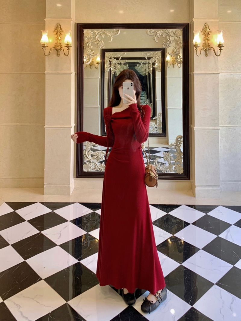 MY14980# 巨好看的清冷富家千金穿搭气质高知分子红色系连衣裙子女女裝貨源服裝批發