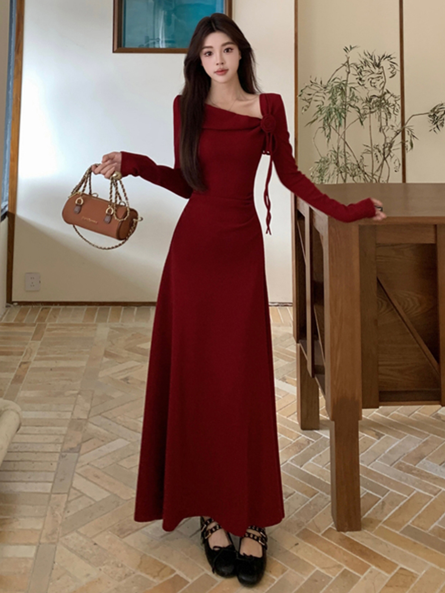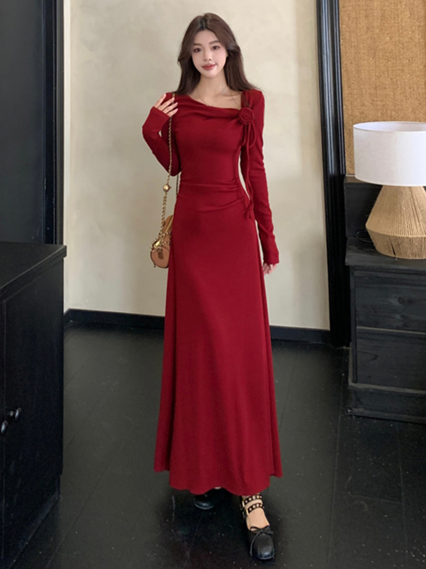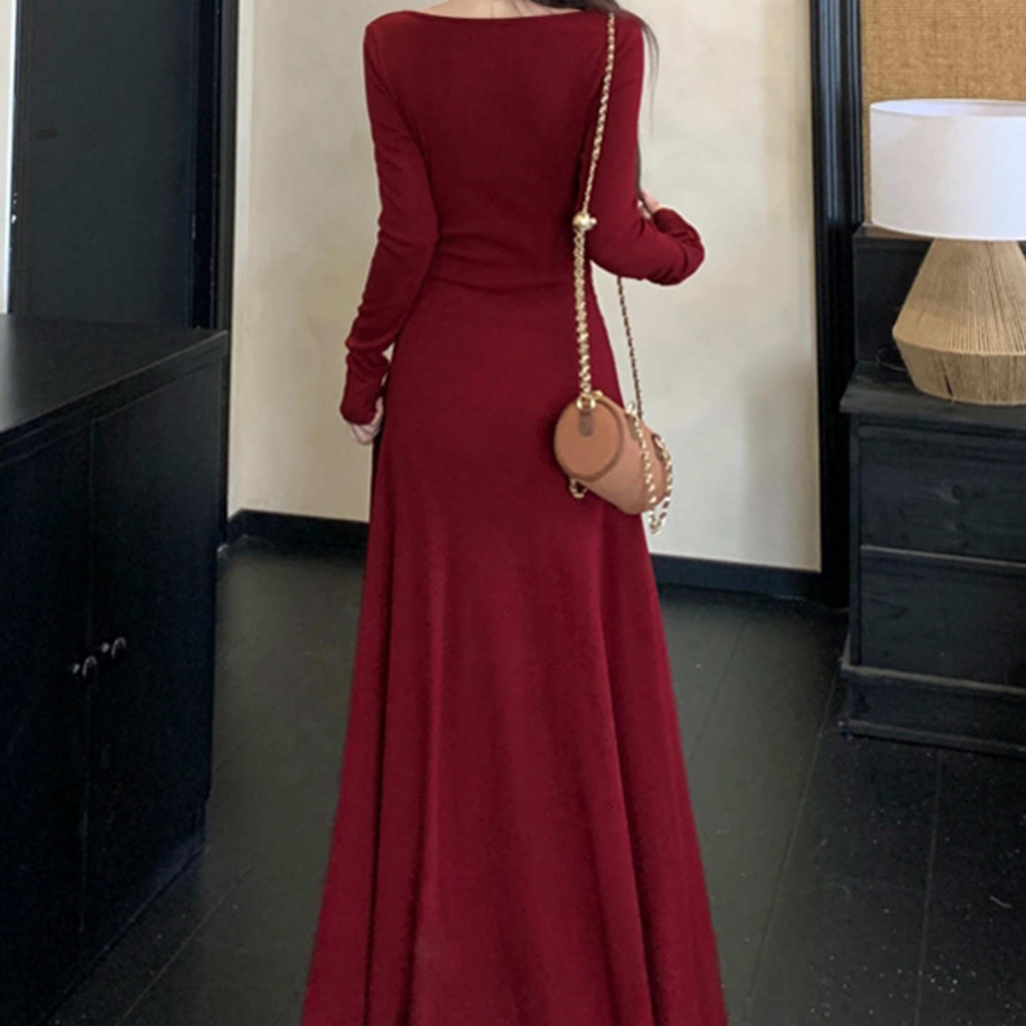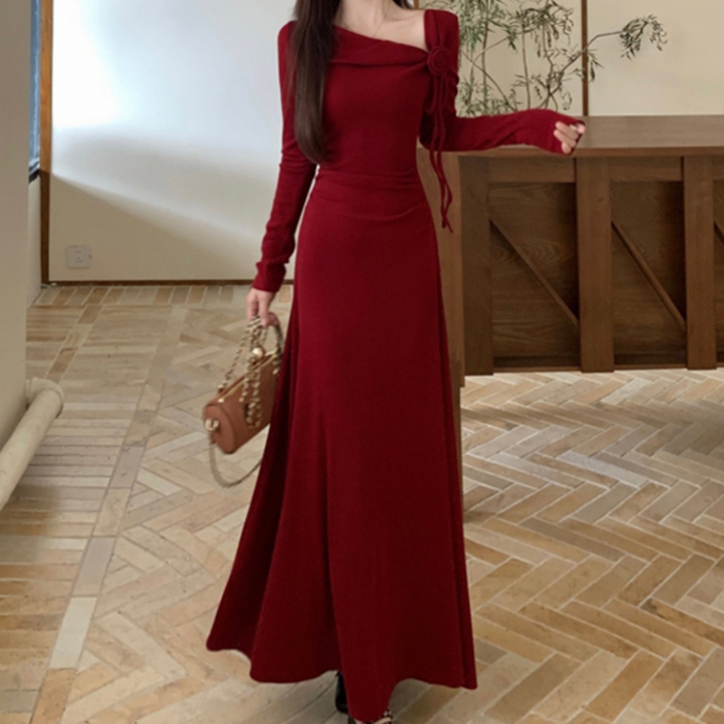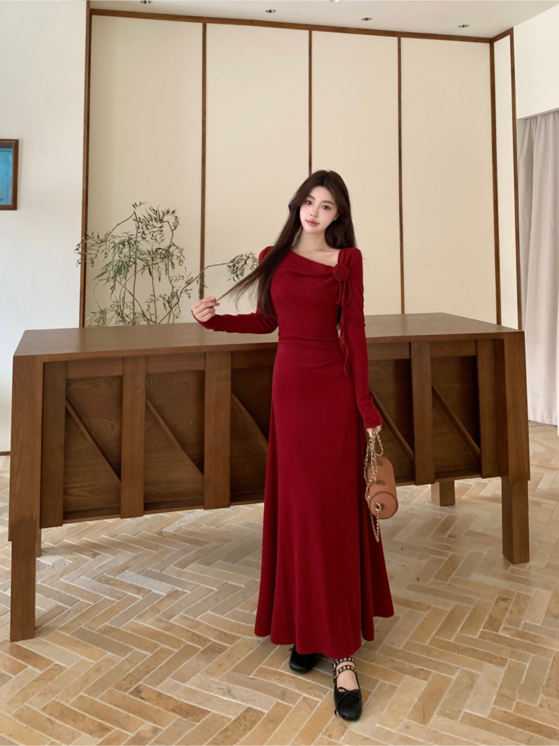 MY14980# 巨好看的清冷富家千金穿搭气质高知分子红色系连衣裙子女女裝貨源服裝批發