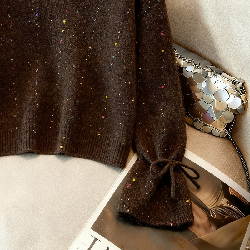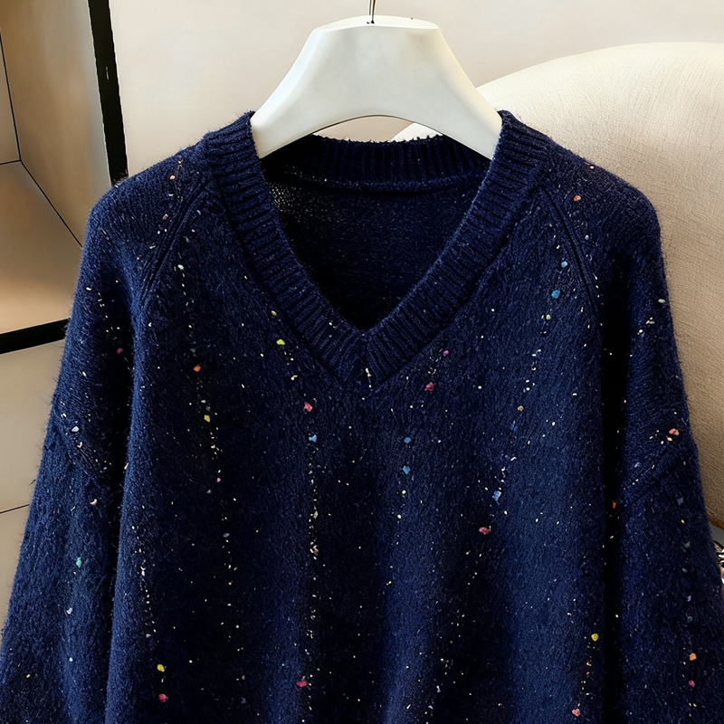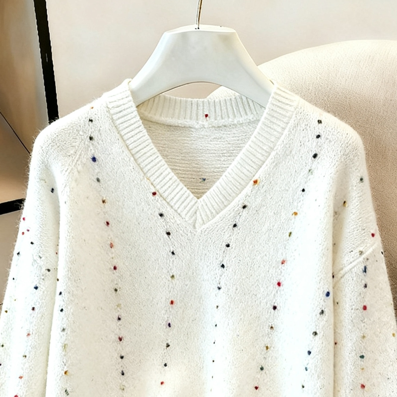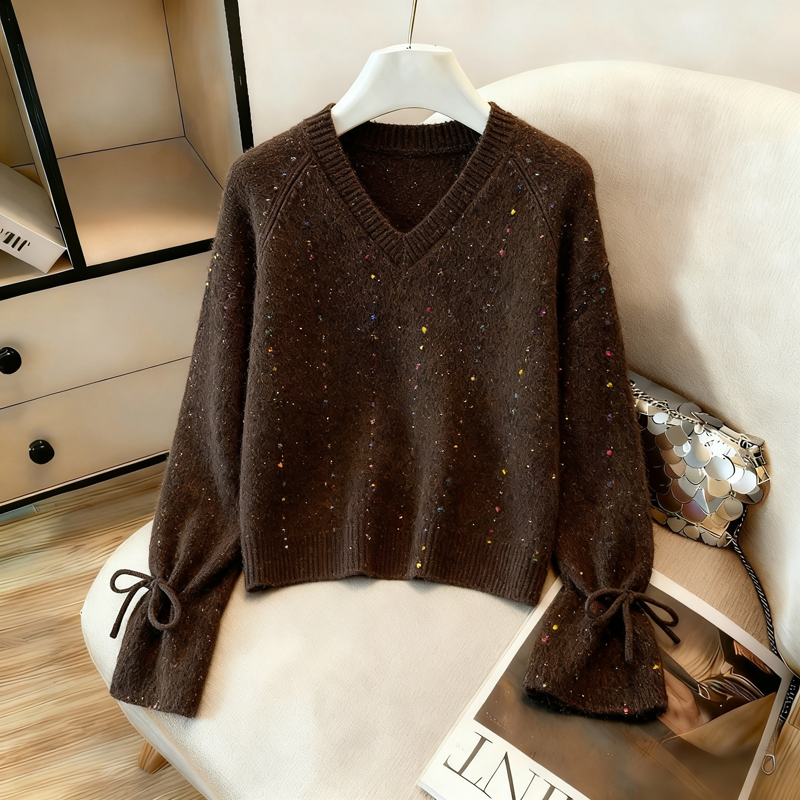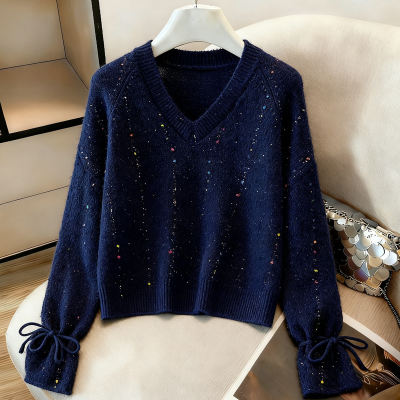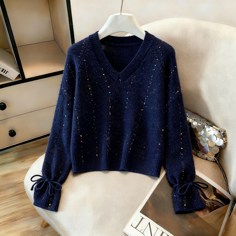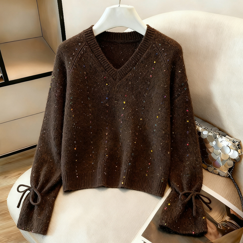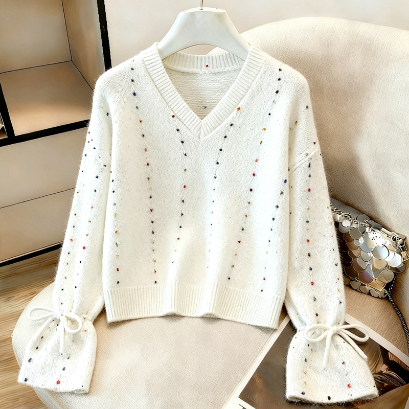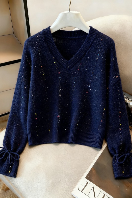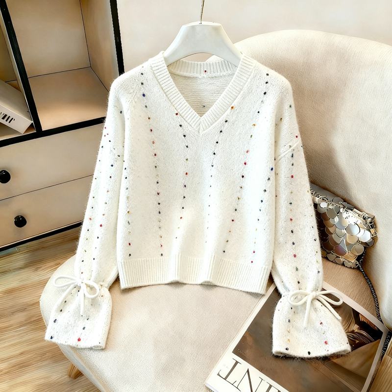 MY14983# 喇叭袖复古v领套头长袖宽松外穿毛衣女慵懒风高级感针织上衣女裝貨源服裝批發
