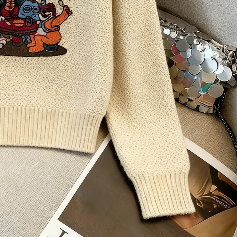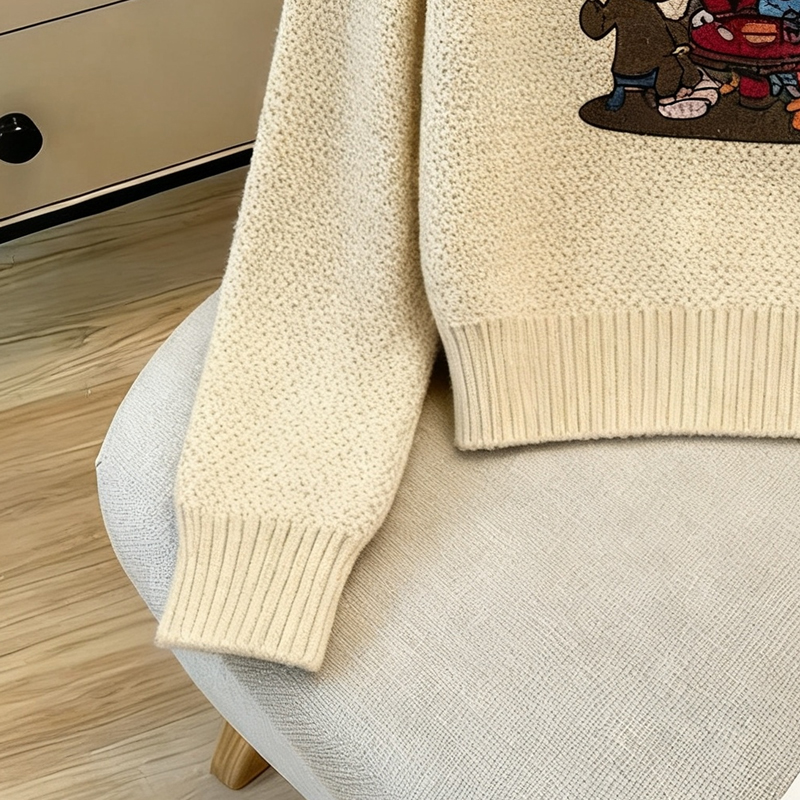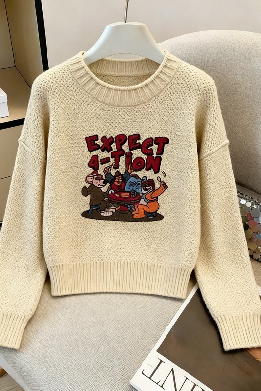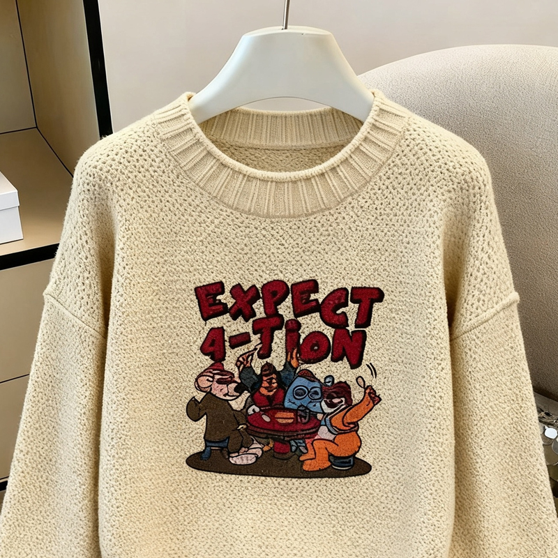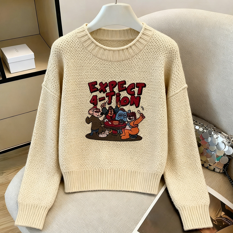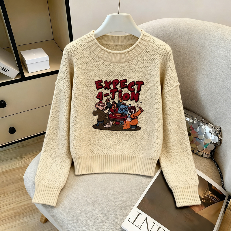 MY14986# 软糯提花圆领套头毛衣新款日系宽松慵懒风针织长袖上衣女裝貨源服裝批發